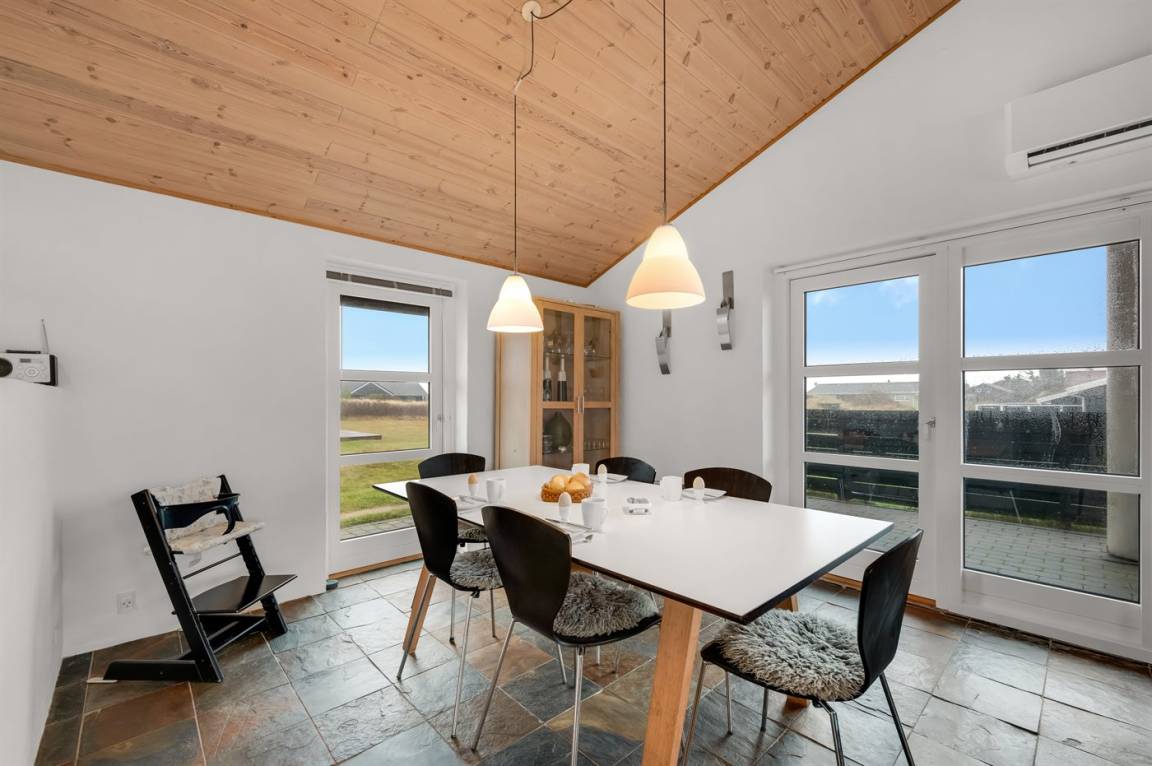 EinrichtungDas Ferienhaus eignet sich für 6 Personen. Die Ferienunterkunft hat eine Wohnfläche von 110 m² und wurde 1979 gebaut. 2009 wurde die Ferienunterkunft renoviert. Haustiere dürfen nicht mitgebracht werden. Die Ferienunterkunft ist mit energiefreundlicher Luft-Luft- Wärmepumpe ausgestattet. Fußbodenheizung im Wohnzimmer. Die Ferienunterkunft ist mit Waschmaschine ausgestattet. Wäschetrockner. Tiefkühlmöglichkeit mit 60 Liter Nutzinhalt. Es gibt außerdem einen Kaminofen. Für die jüngsten Feriengäste ist 1 Kinderhochstuhl vorhanden.