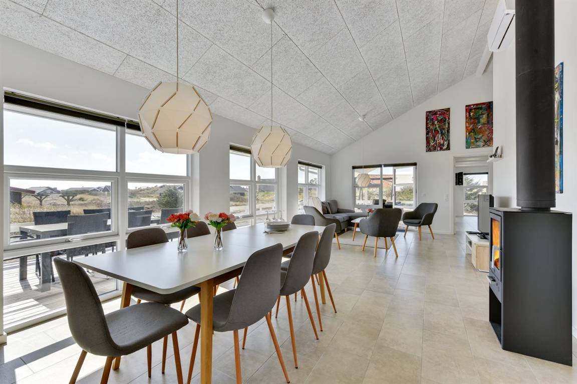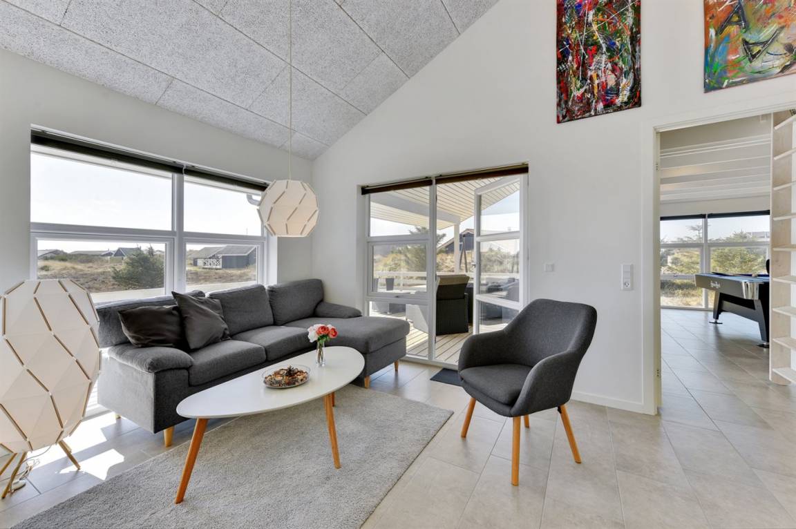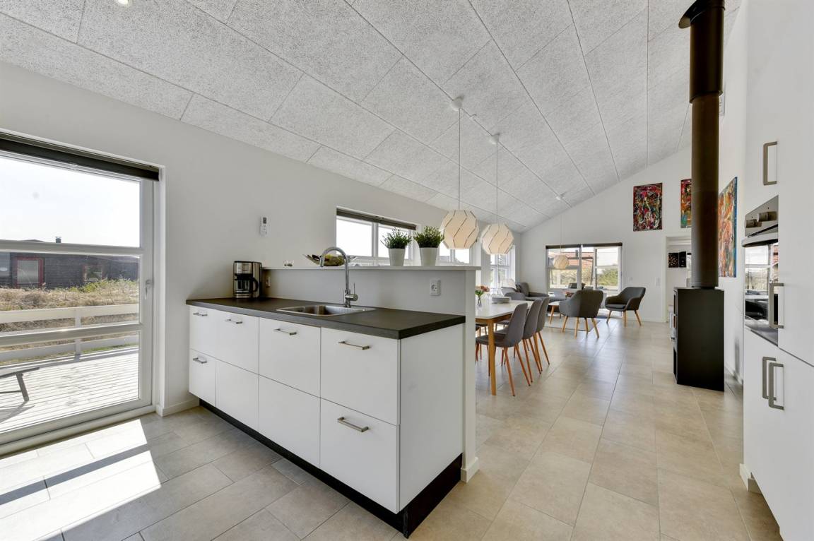 Dieses herrliche neu erbaute Ferienhaus lädt zum gemütlichen Beisammensein ein. Das Haus liegt in ruhiger Umgebung nicht weit von der Nordsee entfernt – und hat diese ganze besondere Atmosphäre – die man nur in einem Ferienhaus, das dicht an der Küste liegt spürt. Für diejenigen, die den aktiven Urlaub bevorzugen gibt es gute Rad- und Wanderwege z. B. kann man von Bjerregard aus entweder zu Fuß oder mit dem Rad entlang der Landzunge Holmsland Klit, auf sich durch Dünen und Ferienhausgebiete schlängelnde Wege, bis nach Söndervig gelangen. Übrigens: Zusätzlich zu den 3 Schlafzimmern gibt es ein Doppelbett im offenen Obergeschoss.