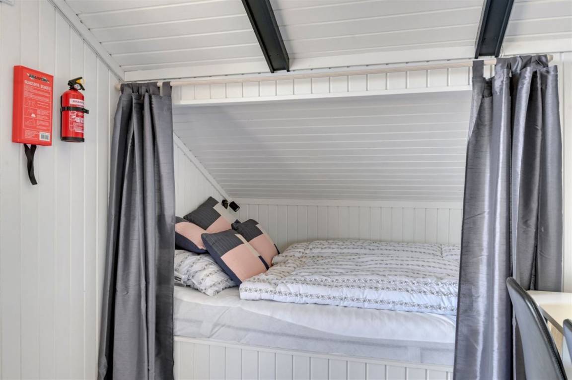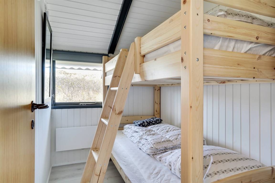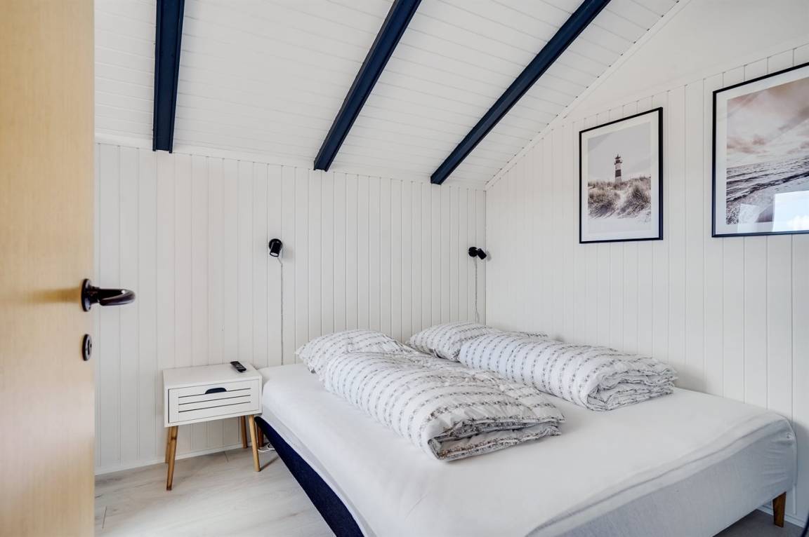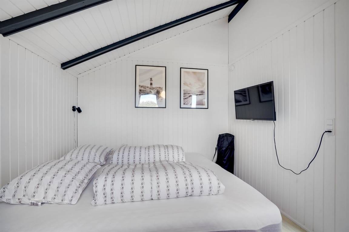 Das Haus eignet sich für 6 Personen und die Schlafplätze verteilen sich auf 1 Schlafzimmer mit Doppelbett (180 x 200 cm), 1 Zimmer mit Etagenbett (90 x 200 cm) und Wohnzimmer mit einem Alkoven (140 x 200 cm). Darüber hinaus gibt es ein offenes Obergeschoss mit 2 Faltmatratzen. Für die jüngsten Feriengäste stehen ein Kinderbett und ein Hochstuhl zur Verfügung.