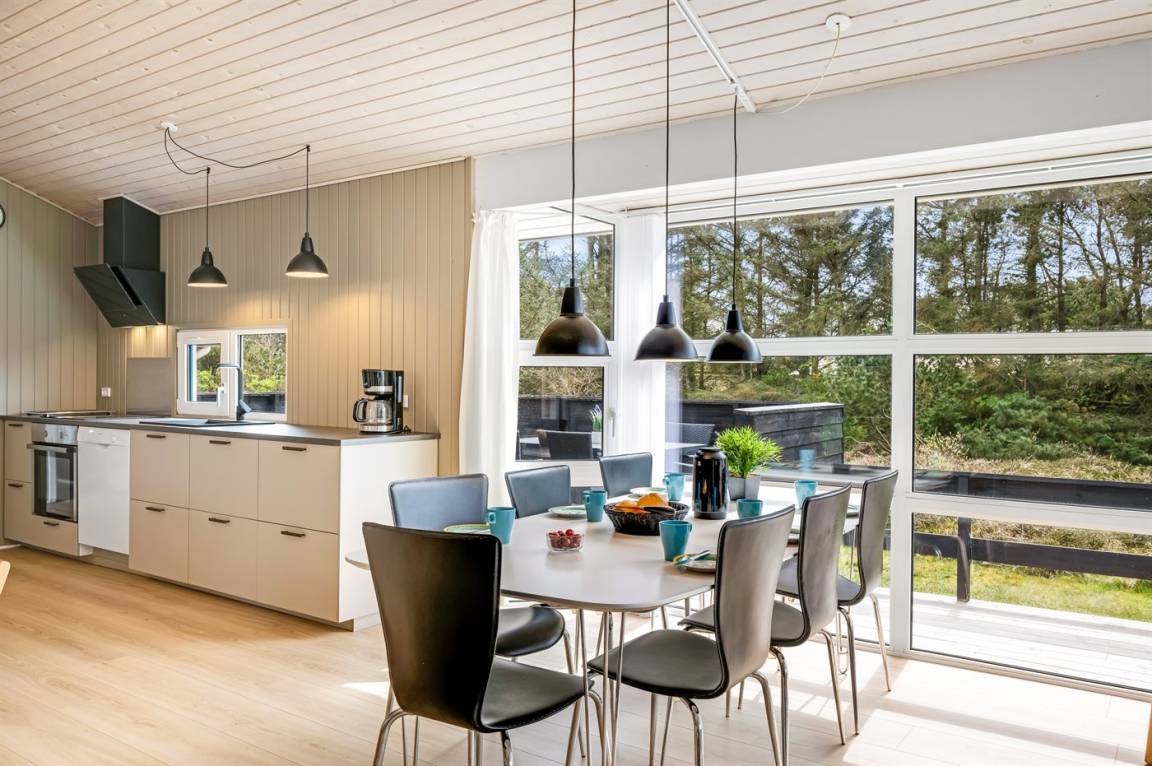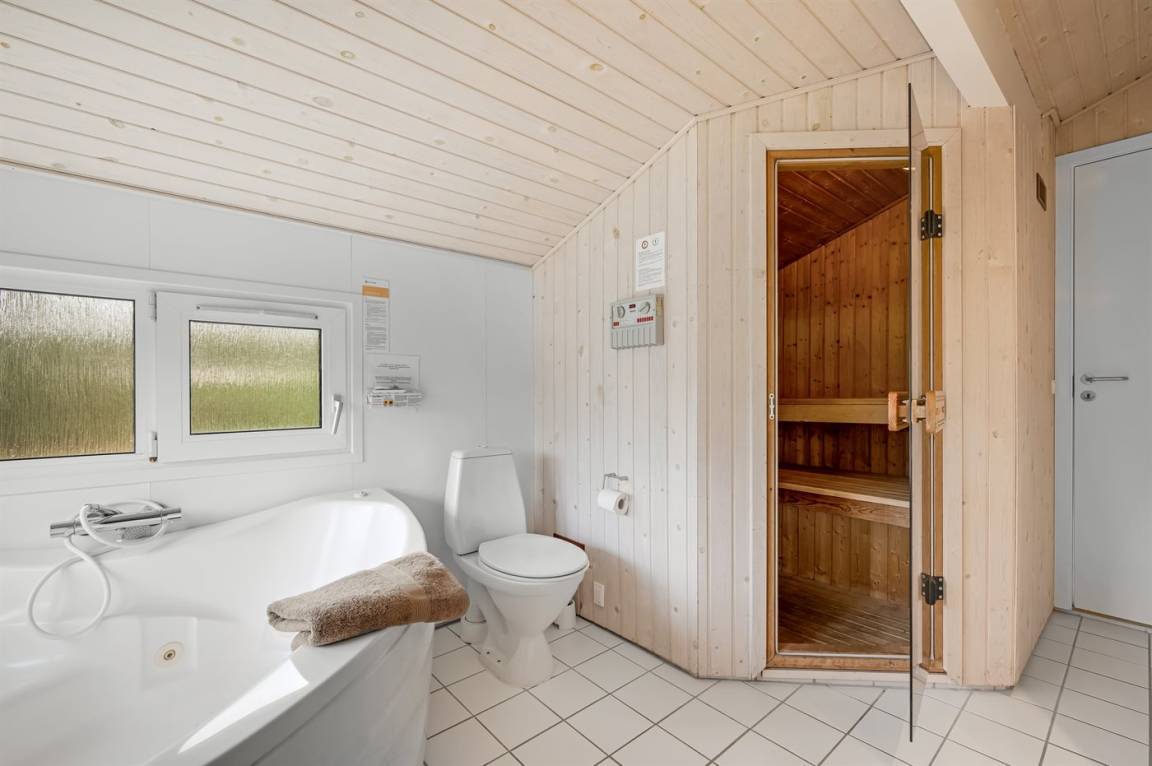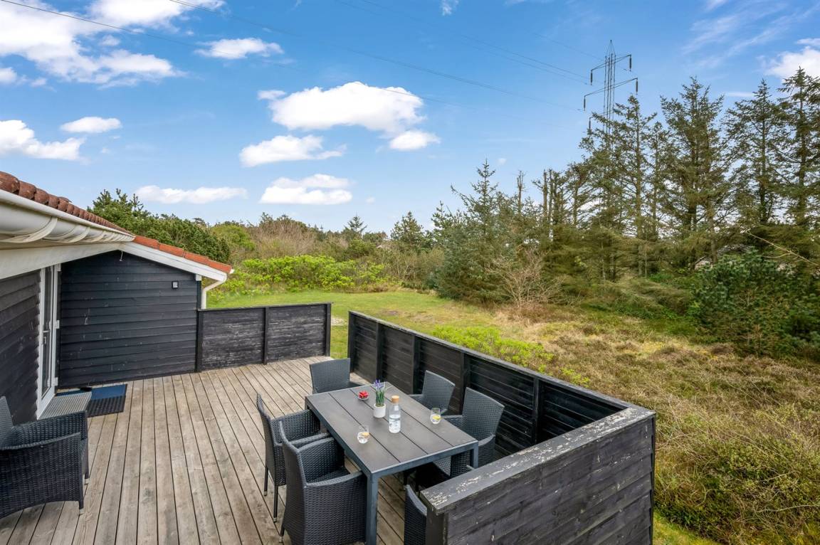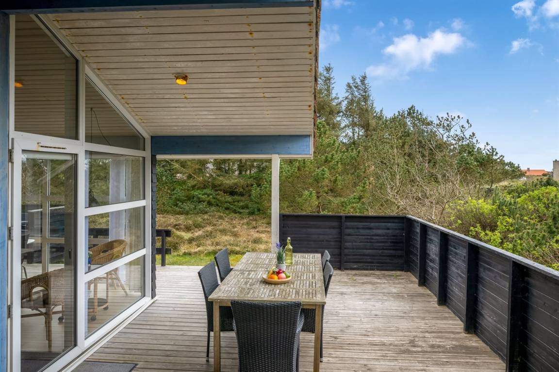 Schönes, gepflegtes Ferienhaus auf einem großen, hügeligen Natur-/Dünengrundstück in naturschöner Umgebung gelegen. Zum Haus gehört ein teilweise überdachtes und abgeschirmtes Terrassenareal mit Gartenmöbeln. Innen ist das Haus gemütlich und gut eingerichtet und die vielen Fenster erlauben einen guten Lichteinfall. Teppichböden, jedoch PVC in der Küche und im Bad sowie Klinkerböden in den Badezimmern. 3 Schlafzimmer mit Doppelbett und 1 Zimmer mit Etagenbett. 2 Badezimmer mit Duschnische und Fußbodenheizung. Das eine Badezimmer hat außerdem 2-Pers.-Whirlpool und Zugang zur Sauna. An weiterer Ausstattung können Stereoanlage mit CD sowie kostenlose, kabellose Internetverbindung (PC ist mitzubringen) erwähnt werden. Sandkiste und Schaukel auf dem Grundstück für die Kinder.