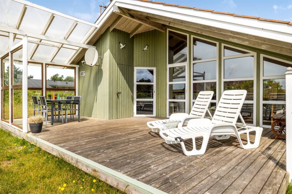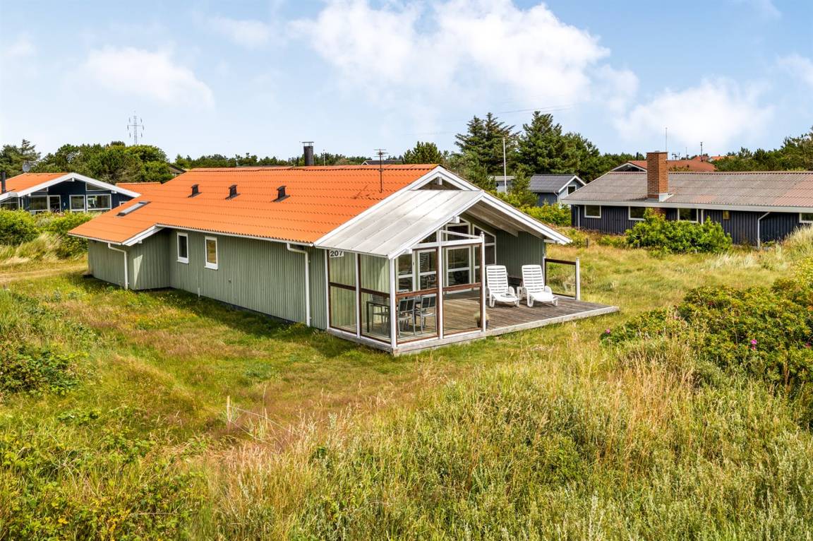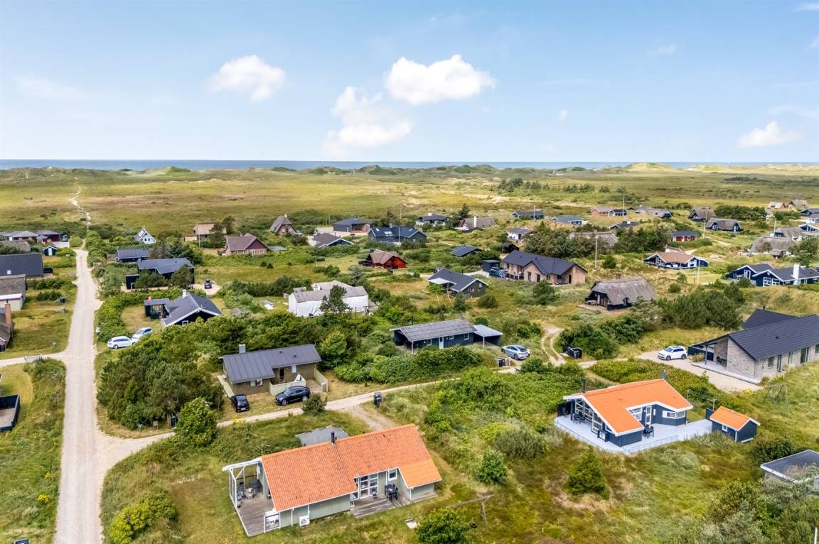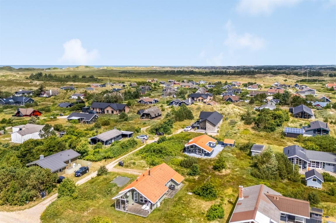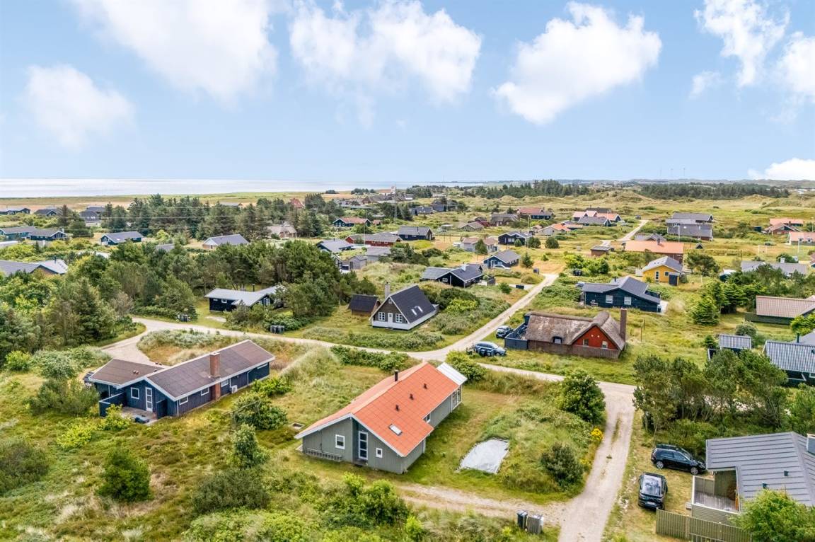 DraußenDie Ferienunterkunft liegt auf einem 1250 m² großen Dünengrundstück.Naturgrundstück. Die Entfernung zum Meer beträgt 700 m. Die nächste Einkaufsmöglichkeit liegt 3000 m entfernt. Es steht ein 30 m² Terrassenareal zur Verfügung. Außerdem gibt es 23 m² überdachte Terrasse. Geräteraum. Schaukel. Sandkasten. Parkplatz auf dem Grundstück.