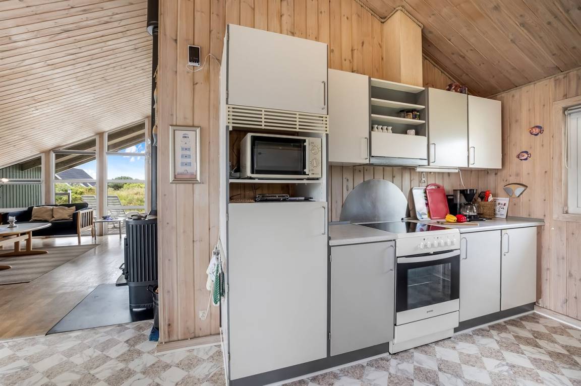 Gepflegtes Ferienhaus in einem Gebiet gelegen, das zum Wandern einlädt. Von der einen Terrasse können Sie Nr. Lyngvig Leuchtturm sehen.