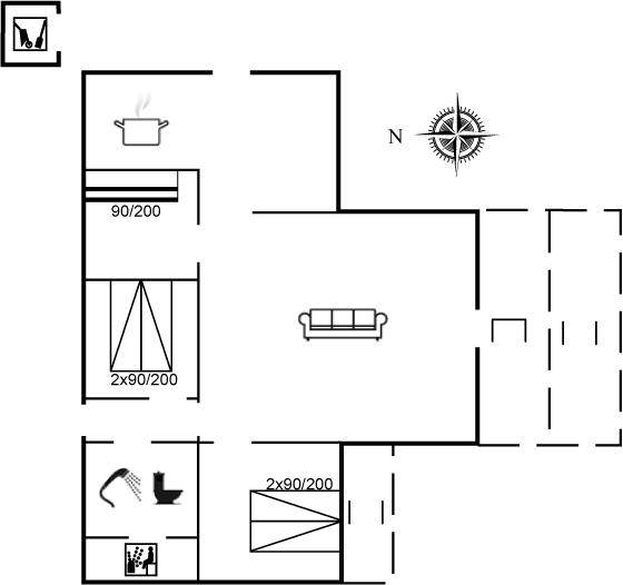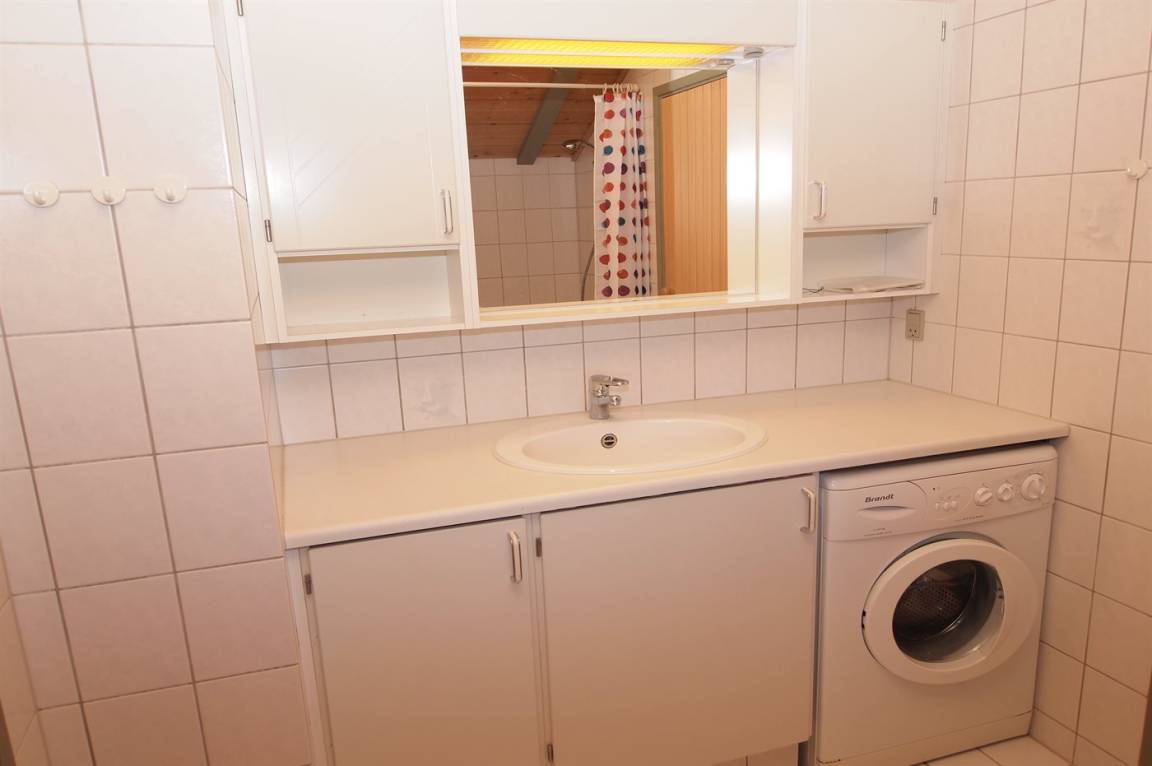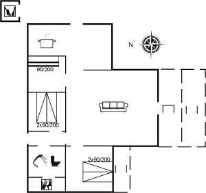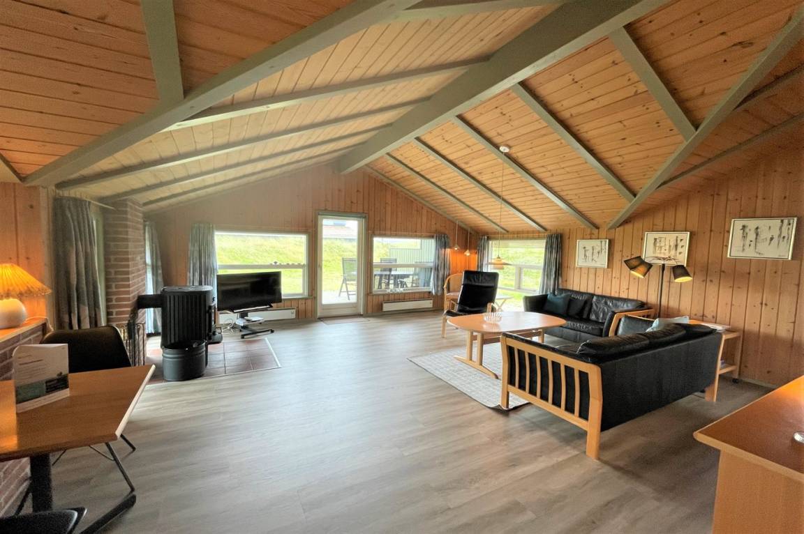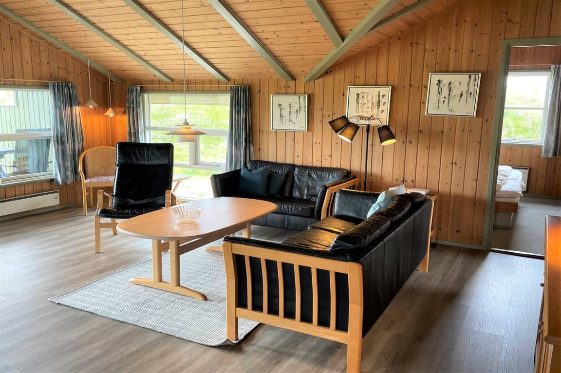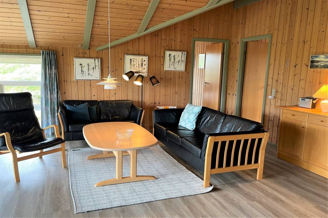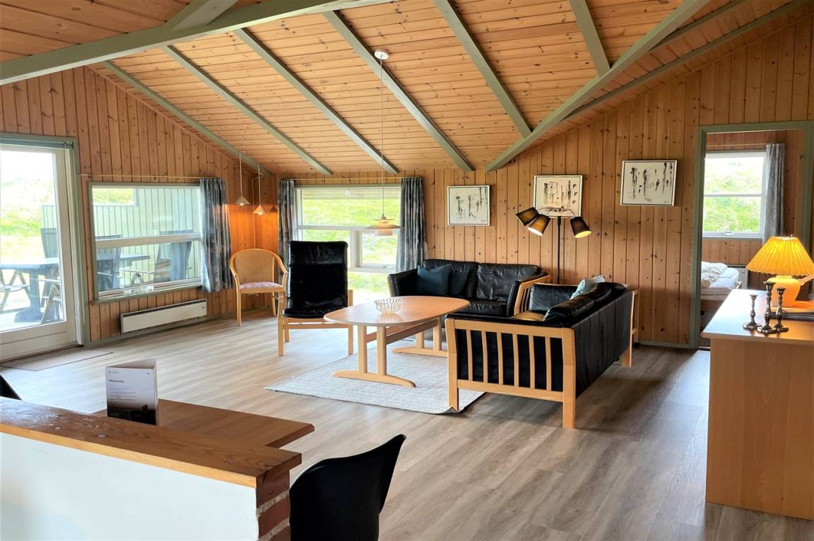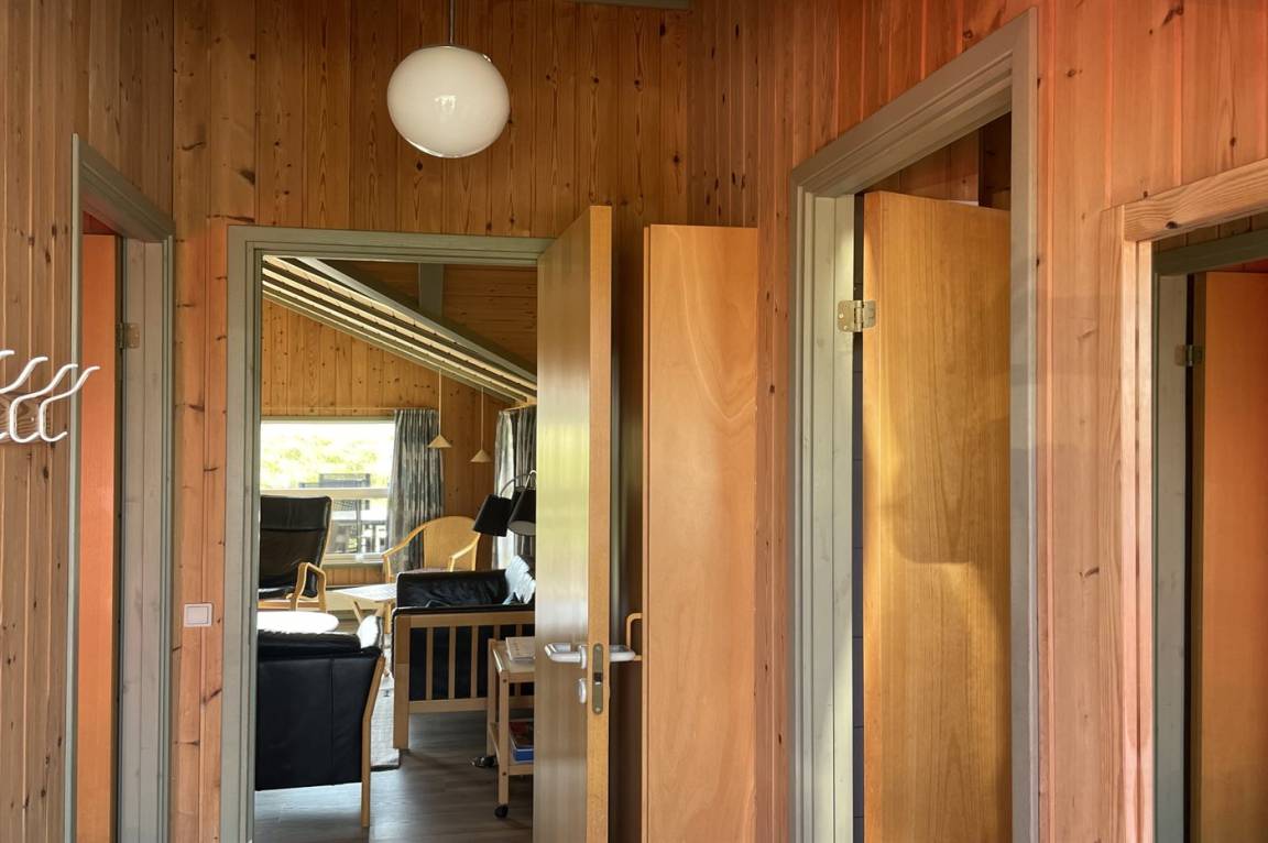 Das Ferienhaus ist mit Holz an Wänden und Decken ausgestattet. Laminat-/Vinylböden, jedoch Klinkerboden in der Küche und im Flur. Badezimmer mit Duschnische, Fußbodenheizung und Waschmaschine sowie Zutritt zur Sauna des Hauses. Funktionelle Küche mit Tiefkühlgerät und Mikrowelle. Das Ferienhaus bietet ein geräumiges, gemütliches Wohnzimmer mit Kaminofen und TV mit digitalem Satellitenanschluss. Außerdem kostenlose, kabellose Internetverbindung vorhanden (Computer ist mitzubringen). Die 6 Schlafplätze sind auf 3 Zimmer verteilt; 2 Zimmer mit Doppelbett und 1 Zimmer mit Etagenbett. Es ist erlaubt 2 Haustiere mitzubringen.