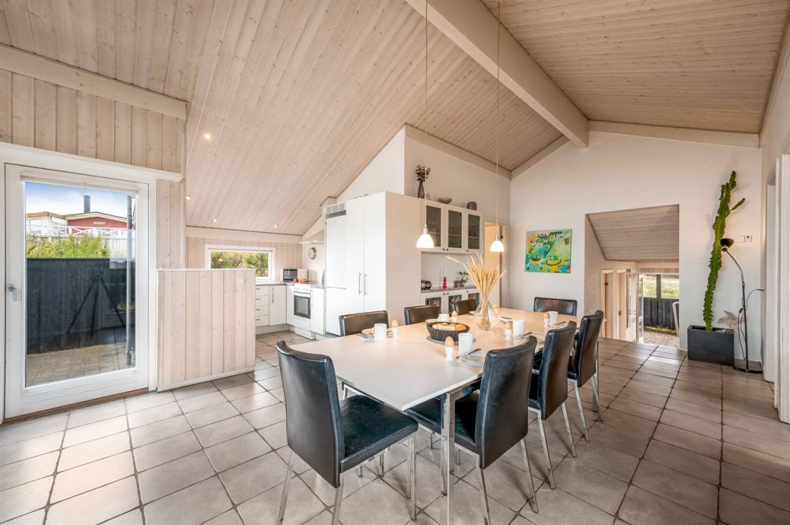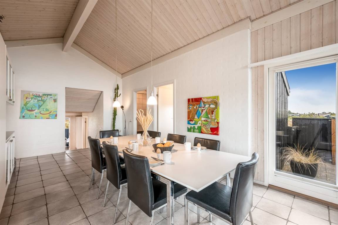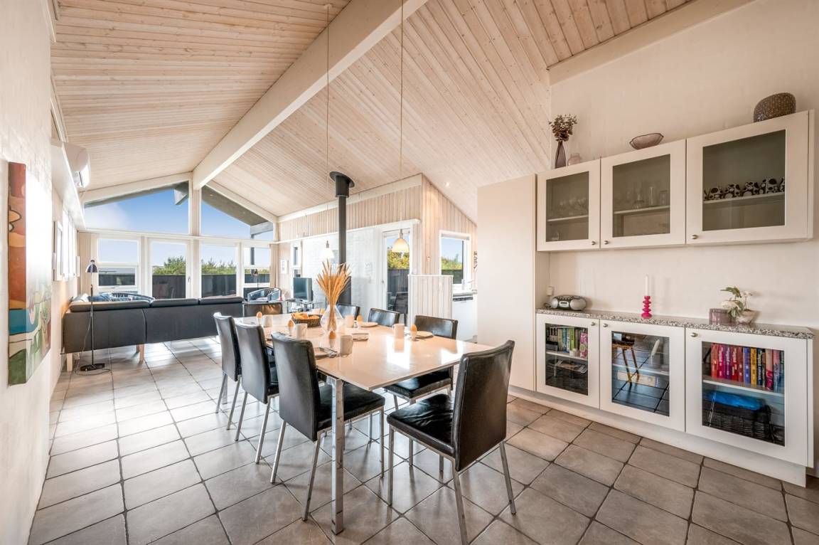 Dieses schöne und geschmackvoll eingerichtete Ferienhaus liegt auf einem leicht hügeligen Grundstück mitten zwischen dem Meer und dem Ringkøbing Fjord – in einem naturschönen Gebiet das zu Radtouren und langen Spaziergängen einlädt. Auf der großen, eingezäunten Terrasse, wo sich kleine Kinder und Vierbeiner sicher aufhalten können, besteht die Möglichkeit den ganzen Tag hindurch die zu Sonne genießen.