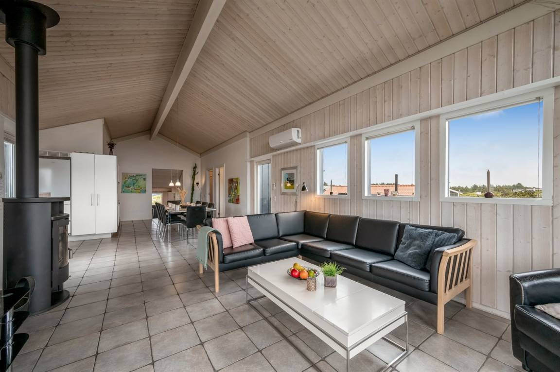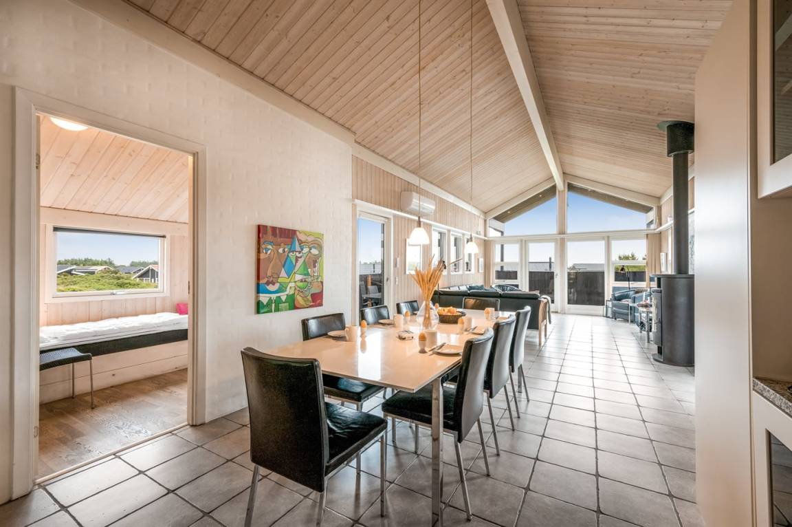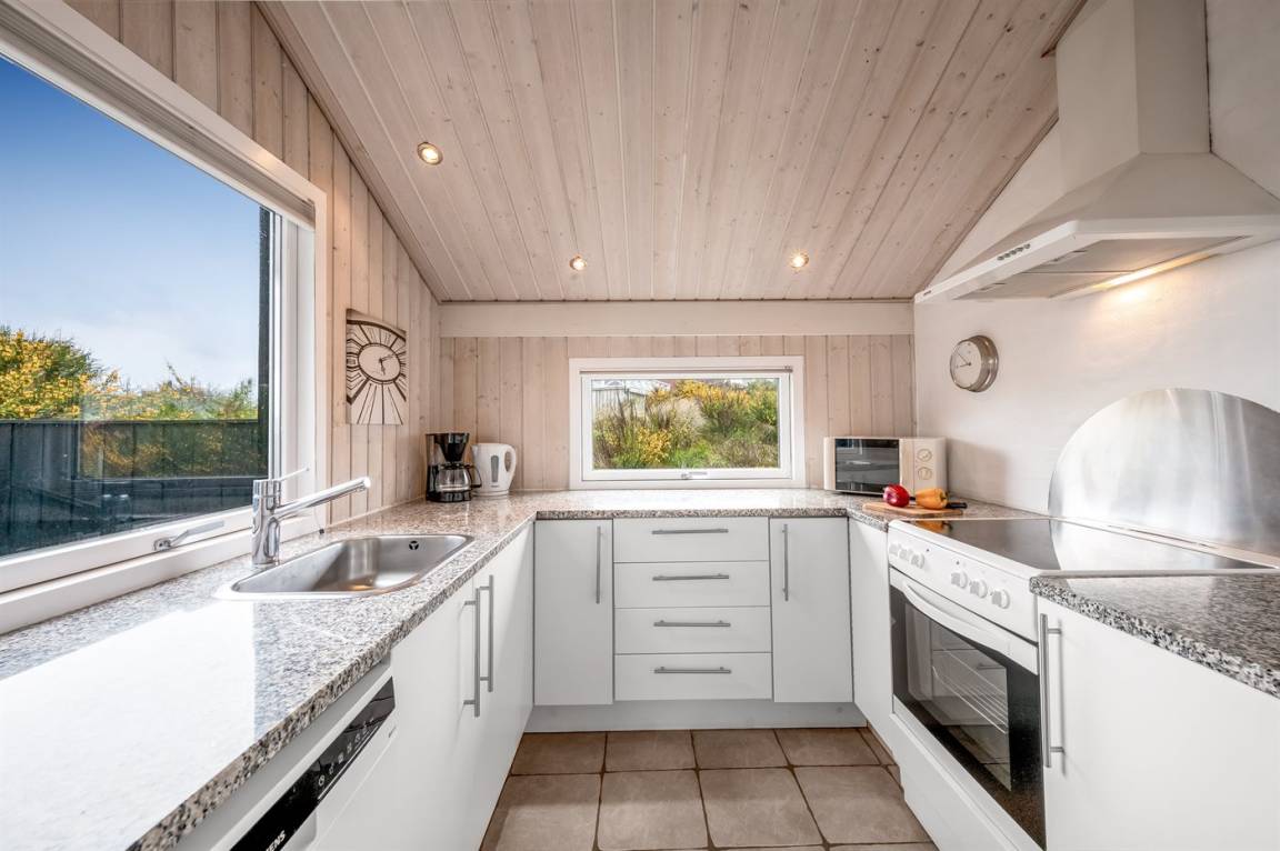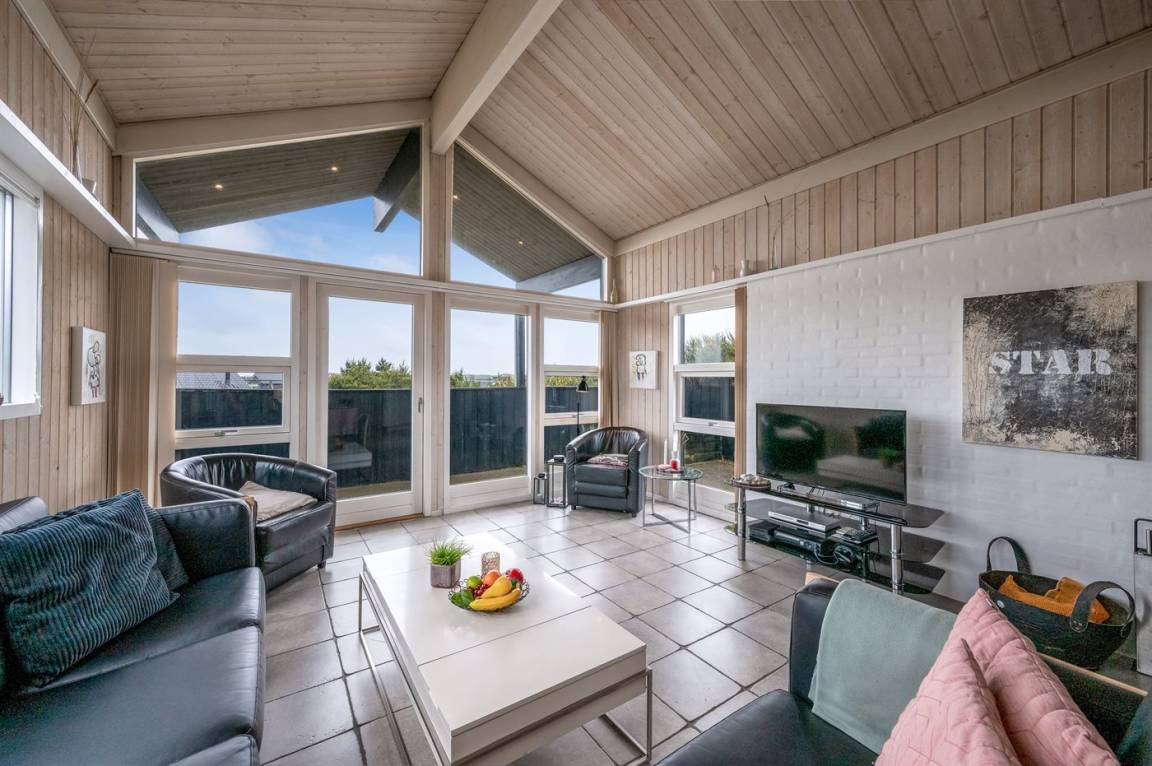 Dieses schöne und geschmackvoll eingerichtete Ferienhaus liegt auf einem leicht hügeligen Grundstück mitten zwischen dem Meer und dem Ringkøbing Fjord – in einem naturschönen Gebiet das zu Radtouren und langen Spaziergängen einlädt. Auf der großen, eingezäunten Terrasse, wo sich kleine Kinder und Vierbeiner sicher aufhalten können, besteht die Möglichkeit den ganzen Tag hindurch die zu Sonne genießen.