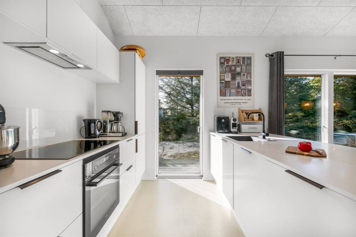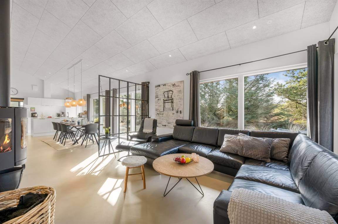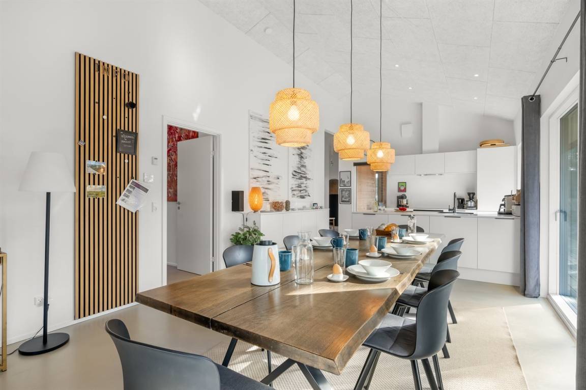 In dem Moment, in dem du die Türschwelle zu diesem hellen und modern eingerichteten Ferienhauses überschreitest, empfängt dich eine Ruhe, die sofort spürbar ist. Die großen Fensterfronten sorgen für viel Tageslicht in dem großzügigen Wohn- und Essbereich, der mit viel Liebe zum Detail und skandinavischem Design eingerichtet ist und zugleich Qualität und Gemütlichkeit ausstrahlt. Hier ist alles bis zum kleinsten Detail durchdacht – von den weichen Textilien bis zu den klaren Linien, die gemeinsam eine entspannte und zugleich exklusive Atmosphäre schaffen.