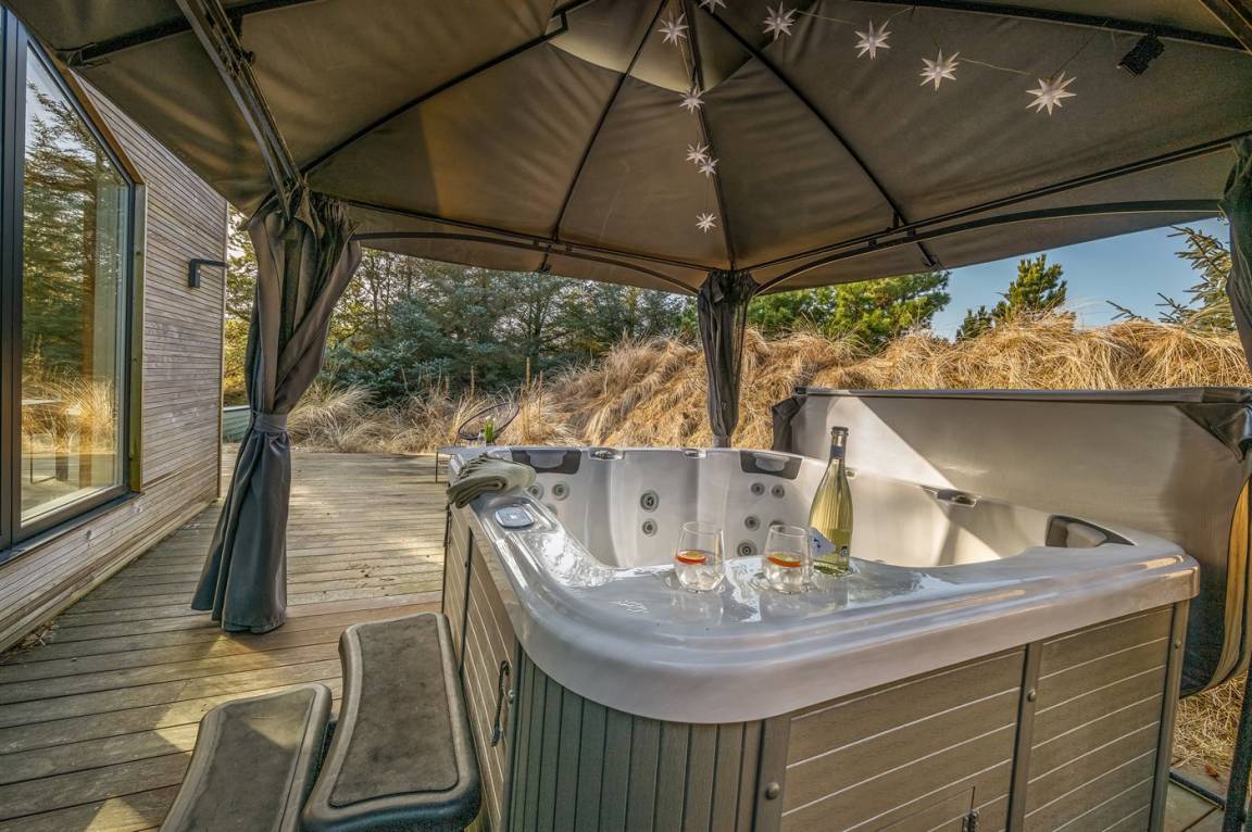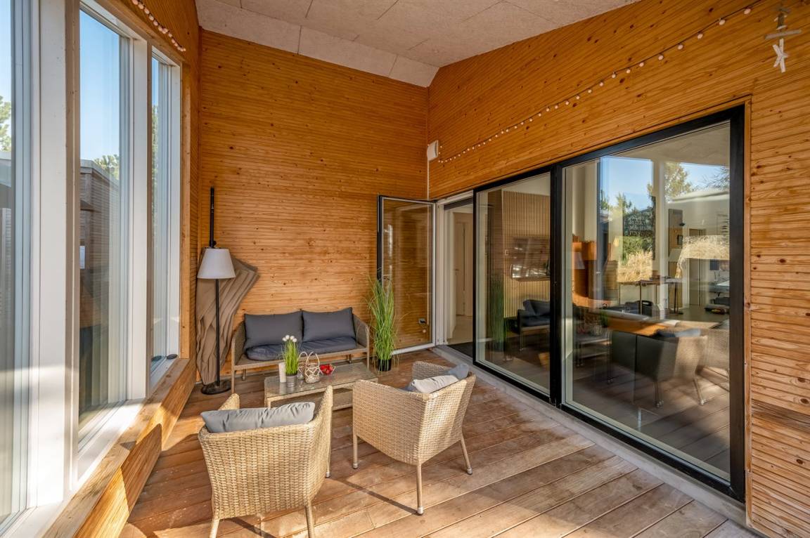 DraußenDie Ferienunterkunft liegt auf einem 1308 m² großen Naturgrundstück. Die Entfernung zum Meer beträgt 800 m. Die nächste Einkaufsmöglichkeit liegt 1200 m entfernt. Es steht ein offenes Terrassenareal zur Verfügung. Außerdem gibt es überdachte Terrasse. Geräteraum. Schaukel. Rutsche. Außensauna. Es ist ein CEE-Ladestecker für Elektroautos installiert (Ladekabel ist mitzubringen). Mit einer Ladeleistung von 11 kW. Parkplatz auf dem Grundstück.