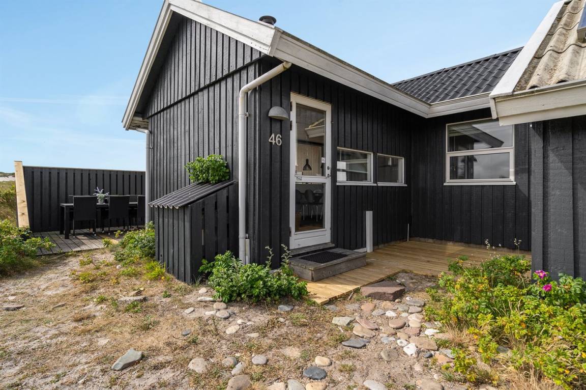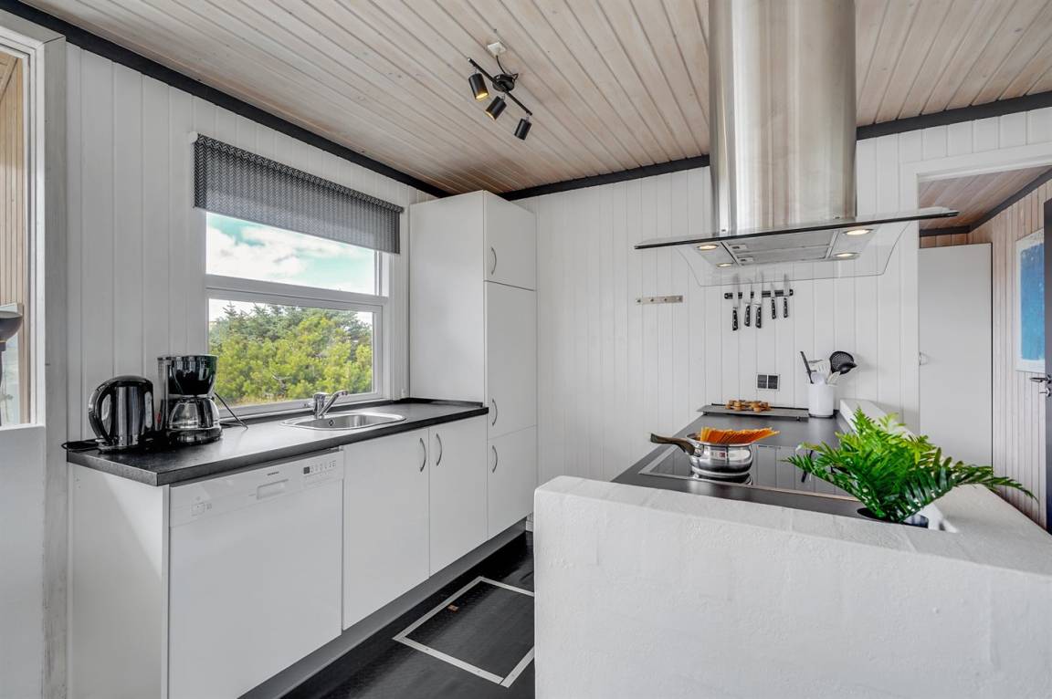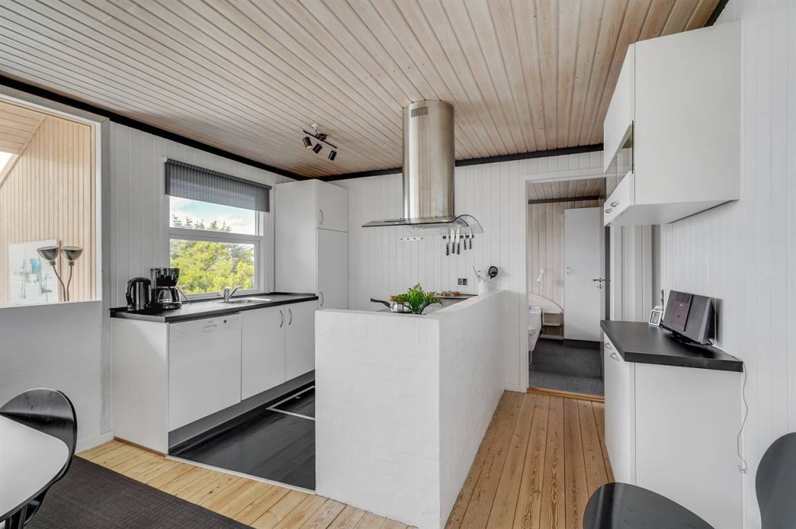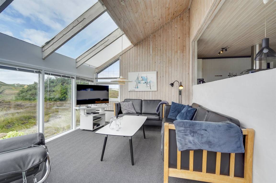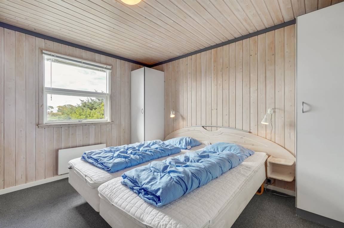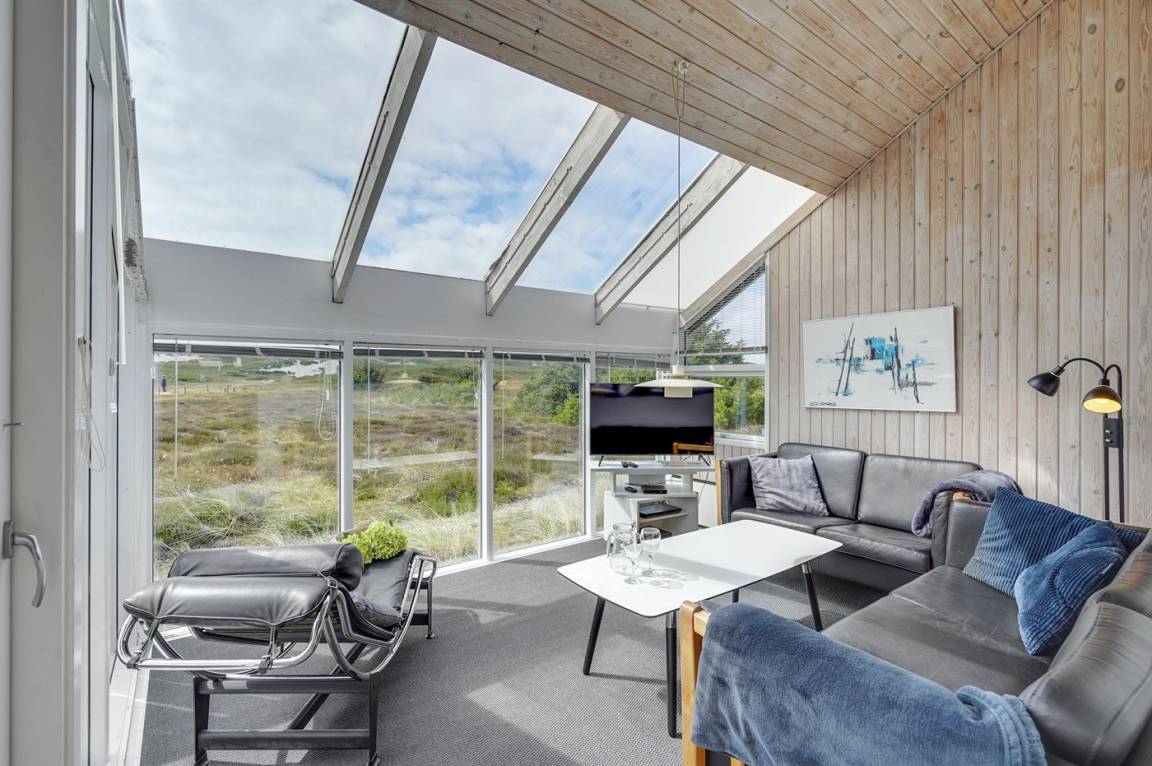 Dieses schöne Ferienhaus aus Holz liegt in erster Dünereihe mit einer herrlichen Aussicht auf die schöne Dünenlandschaft. Das Ferienhaus wird laufend in Stand gehalten und wurde 2012 u. a. mit einer neuen Küche ausgestattet. Eine energiegerechte Wärmepumpe, die auch als Aircondition funktioniert, sorgt für die Beheizung. Badezimmer mit Fußbodenheizung, Waschmaschine und Wäschetrockner. Sauna. Whirlpool-Abteilung mit Duschnische, Fußbodenheizung und 2-Pers. Whirlpool. Küche mit u. a. Tiefkühlgerät, Mikrowelle und Geschirrspüler. Das gemütlich eingerichtete Wohnzimmer enthält Kaminofen, Stereoanlage mit CD-Spieler, TV mit digitalem Satellitenanschluss (dänsiche und internationale Fernsehsender) und integriertem DVD-Spieler. Die Schlafplätze verteilen sich auf 1 Zimmer mit Doppelbett, 1 Zimmer mit 2 Einzelbetten und 1 Zimmer mit Etagenbett. Im Wohnzimmer finden Sie ferner Alkoven mit 2 Schlafplätzen. Außerdem kostenlose, kabellose Internetverbindung (Computer ist mitzubringen) vorhanden. Für die jüngsten Feriengäste stehen Kinderbett, Kinderhochstuhl, Sandkasten und Schaukel zur Verfügung. Carport auf dem Grundstück.