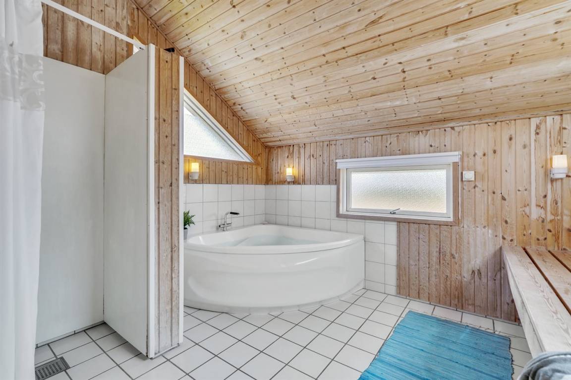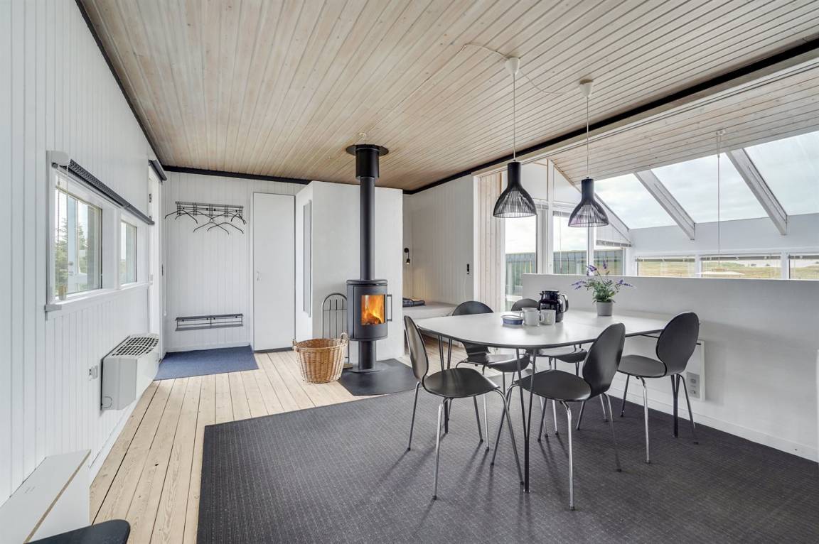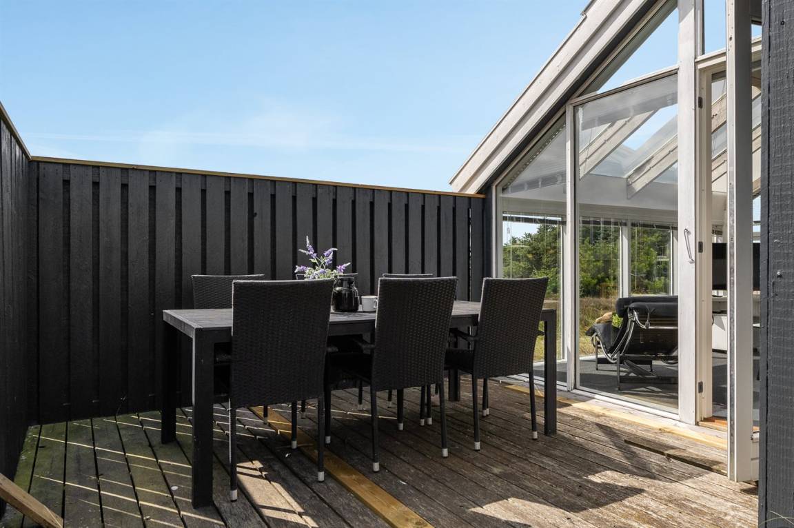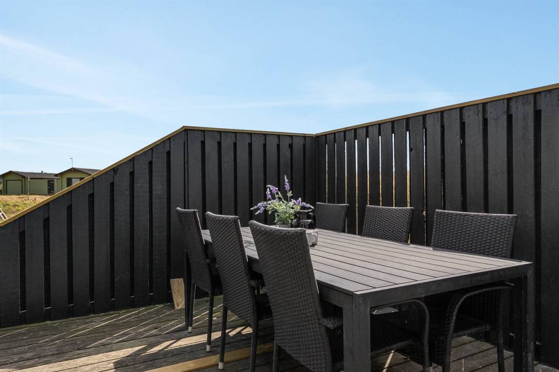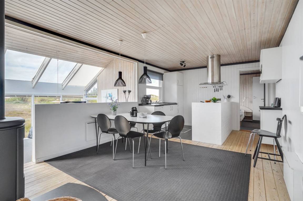 Dieses schöne Ferienhaus aus Holz liegt in erster Dünereihe mit einer herrlichen Aussicht auf die schöne Dünenlandschaft. Das Ferienhaus wird laufend in Stand gehalten und wurde 2012 u. a. mit einer neuen Küche ausgestattet. Eine energiegerechte Wärmepumpe, die auch als Aircondition funktioniert, sorgt für die Beheizung. Badezimmer mit Fußbodenheizung, Waschmaschine und Wäschetrockner. Sauna. Whirlpool-Abteilung mit Duschnische, Fußbodenheizung und 2-Pers. Whirlpool. Küche mit u. a. Tiefkühlgerät, Mikrowelle und Geschirrspüler. Das gemütlich eingerichtete Wohnzimmer enthält Kaminofen, Stereoanlage mit CD-Spieler, TV mit digitalem Satellitenanschluss (dänsiche und internationale Fernsehsender) und integriertem DVD-Spieler. Die Schlafplätze verteilen sich auf 1 Zimmer mit Doppelbett, 1 Zimmer mit 2 Einzelbetten und 1 Zimmer mit Etagenbett. Im Wohnzimmer finden Sie ferner Alkoven mit 2 Schlafplätzen. Außerdem kostenlose, kabellose Internetverbindung (Computer ist mitzubringen) vorhanden. Für die jüngsten Feriengäste stehen Kinderbett, Kinderhochstuhl, Sandkasten und Schaukel zur Verfügung. Carport auf dem Grundstück.