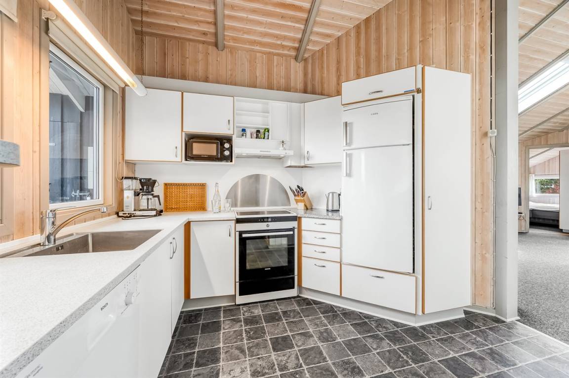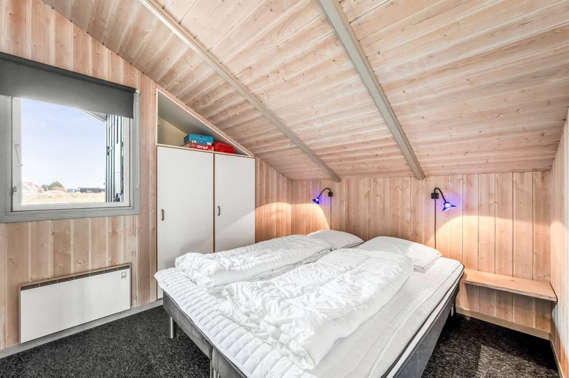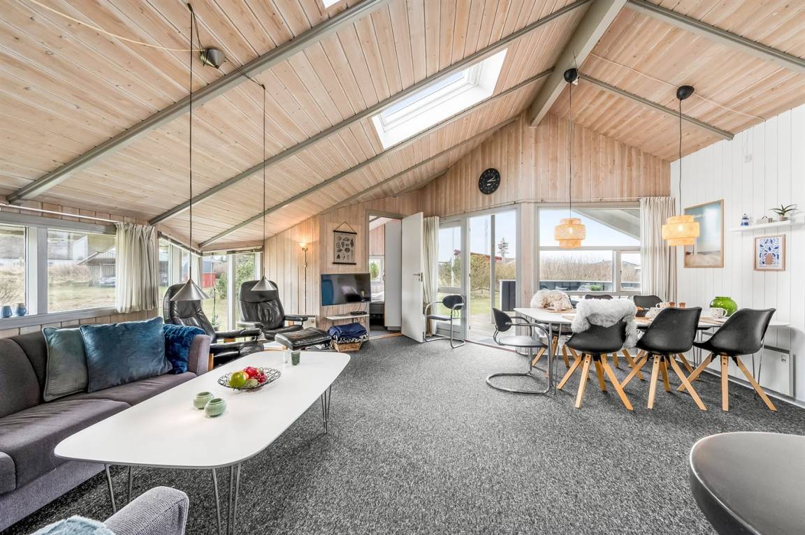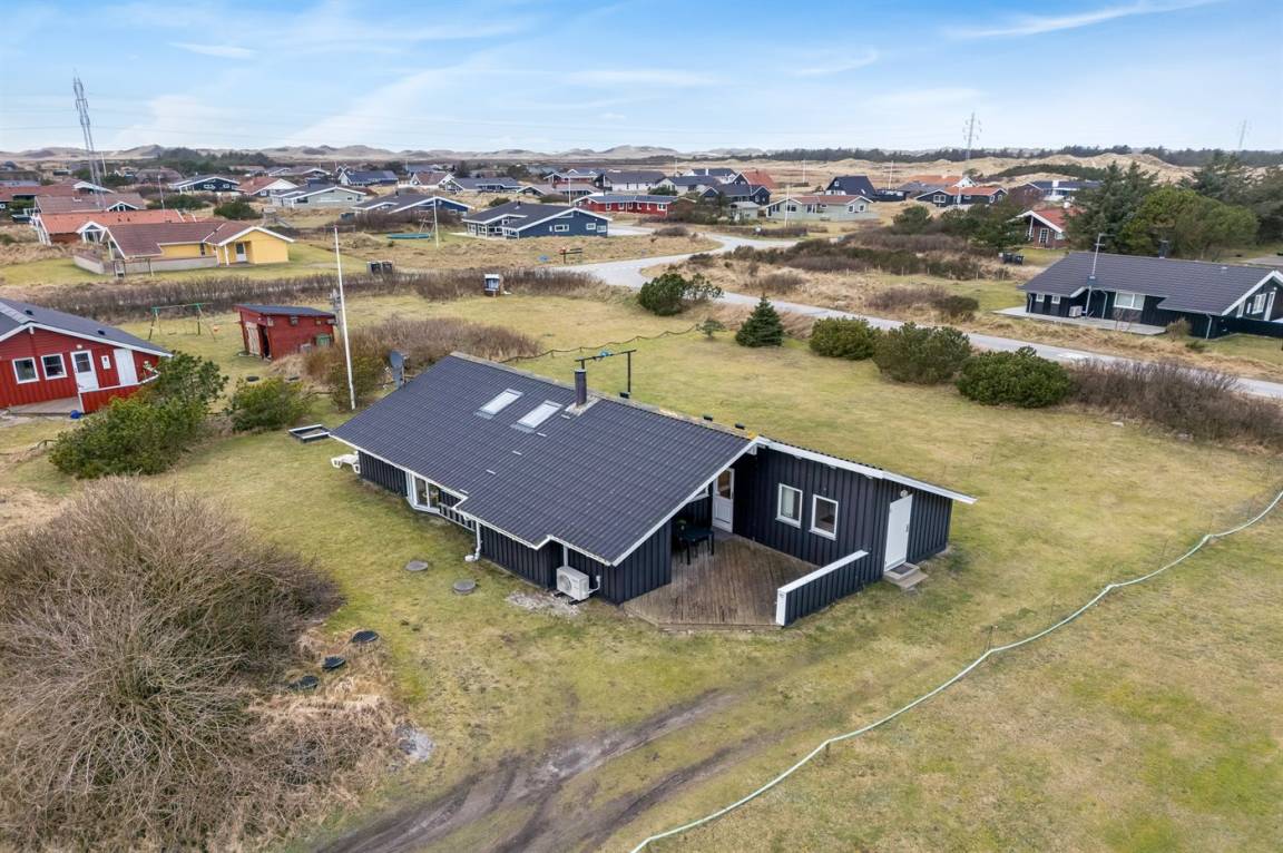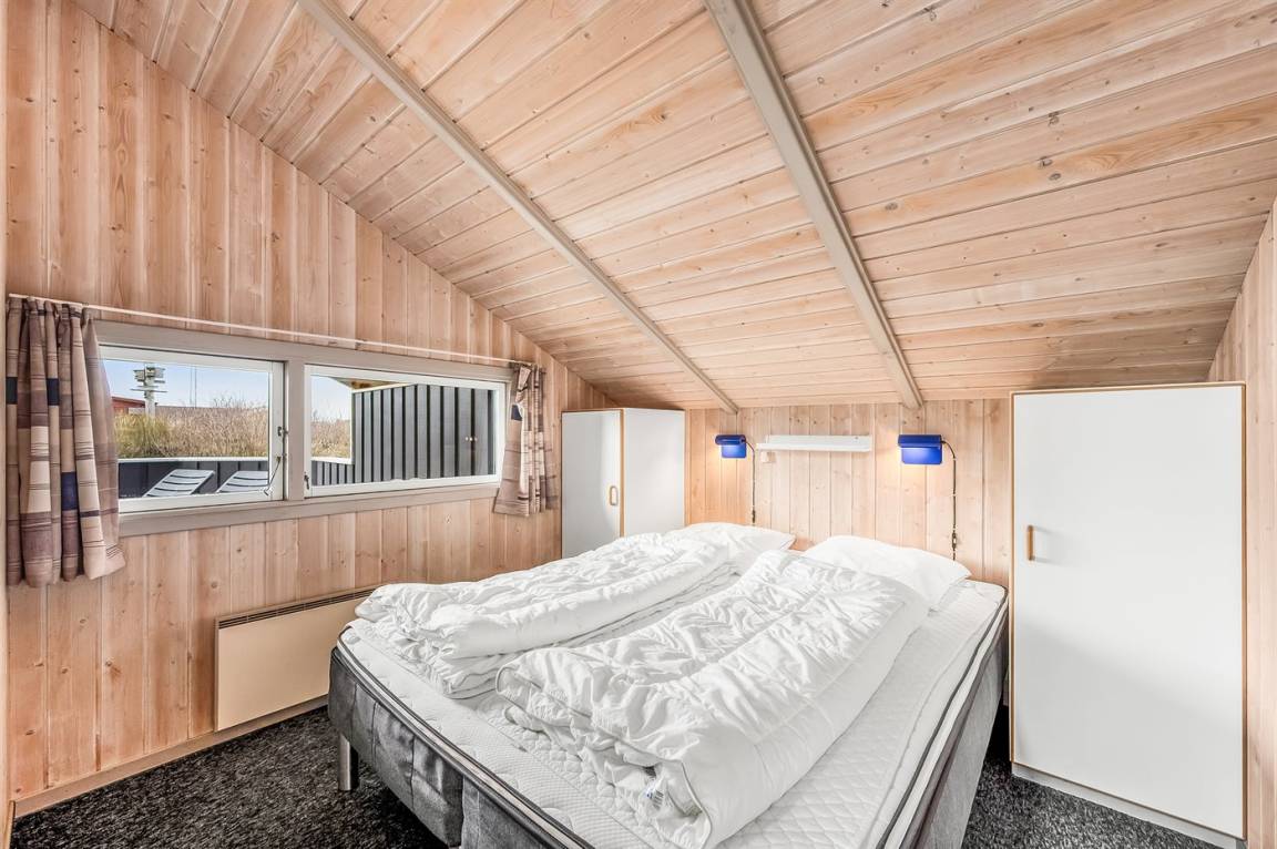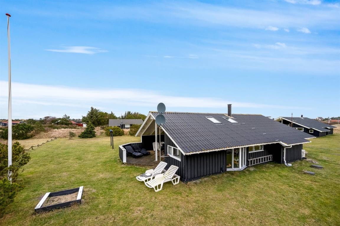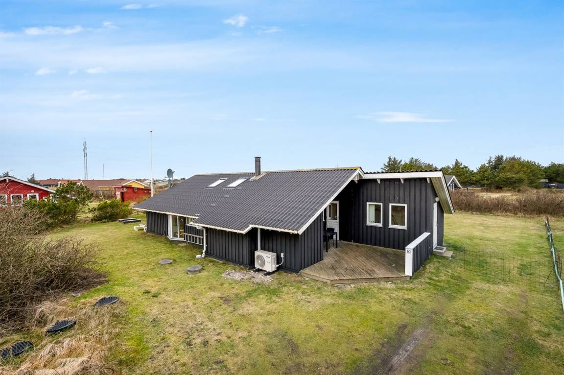 Ferienhaus aus Holz, 1994 gebaut. Das Haus liegt auf einem eingezäunten Naturgrundstück, zwischen Meer und Fjord, und dicht an den Städten Hvide Sande und Søndervig. Zum Haus gehören 2 teilweise überdachte Terrassen mit Gartenmöbeln. Die Böden sind mit Teppich ausgelegt, jedoch gibt es PVC-Boden in der Küche. Wände und Decken sind mit hell gebeiztem, rustikalem Kiefernholz verkleidet. Es ist eine energiesparende Wärmepumpe installiert. Herrliches Badezimmer mit Duschnische, beheiztem Fliesenboden, 2-Pers. Whirlpool und direktem Zutritt zur Sauna. Außerdem Gästetoilette. Die schöne Küchenabteilung ist u.a. mit Tiefkühlgerät, Mikrowelle, Geschirrspüler und Herd mit Ceran-Feld ausgestattet. Das gemütliche Wohnzimmer enthält Kaminofen, Stereoanlage mit CD-Spieler, Flatscreen-TV mit digitalem Satellitenanschluss und Chromecast. Kostenlose, kabellose Internetverbindung vorhanden (eigener Computer muss mitgebracht werden). Darüber hinaus Kinderhochstuhl, Kinderbett, Waschmaschine und Wäschetrockner zur Verfügung. 4 Schlafzimmer; 2 mit Doppelbett und 2 mit 2 Einzelbetten. Sandkasten, Schaukel und Spielturm mit Rutsche für die Kinder. Gute Aktivitätsmöglichkeiten und Einkaufsmöglichkeiten im Gebiet.