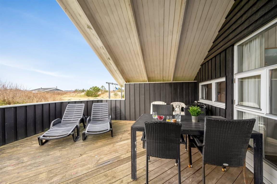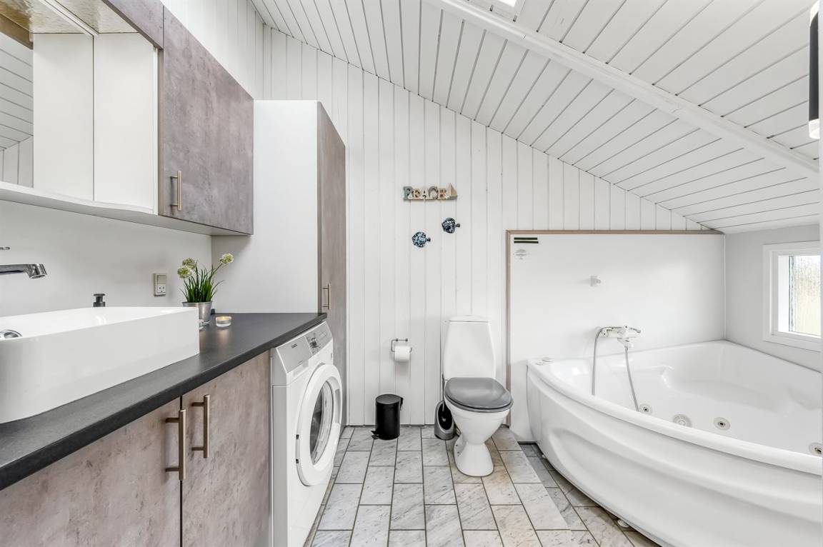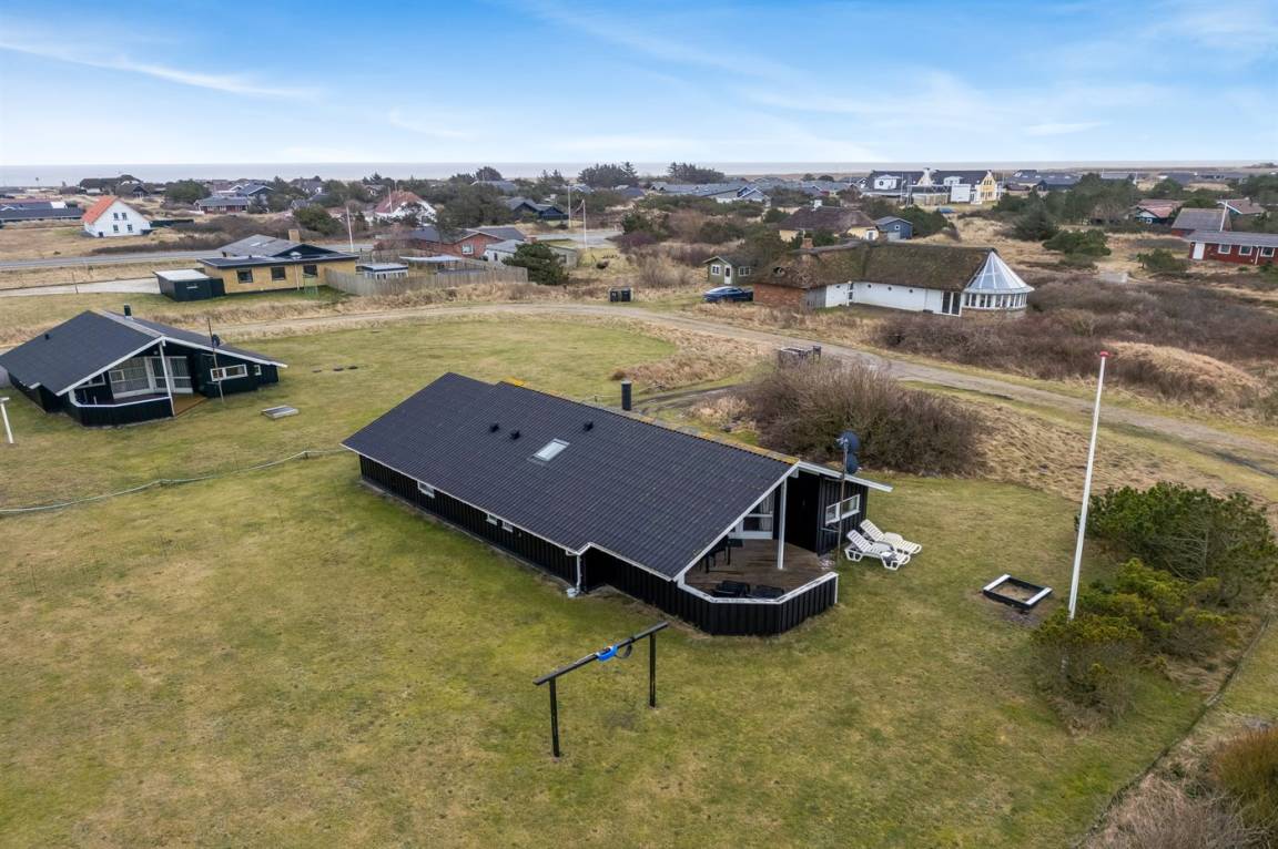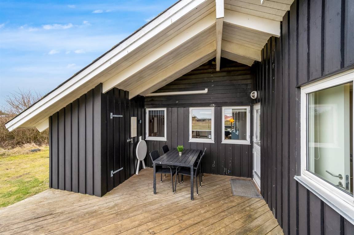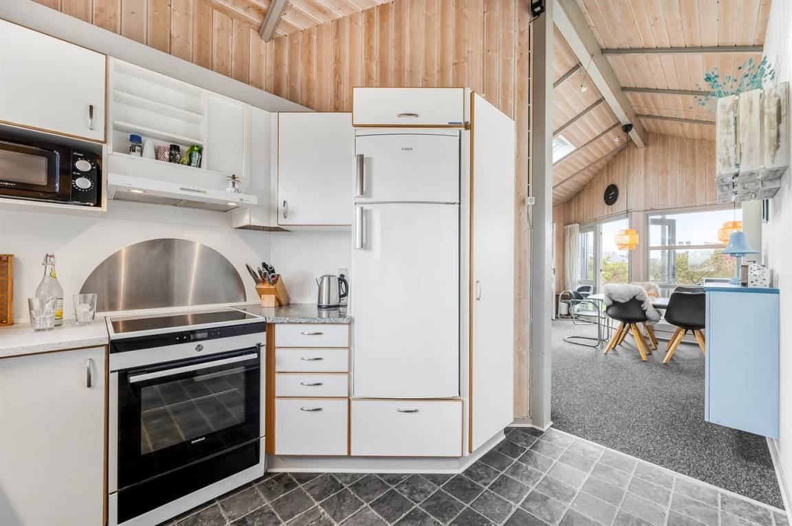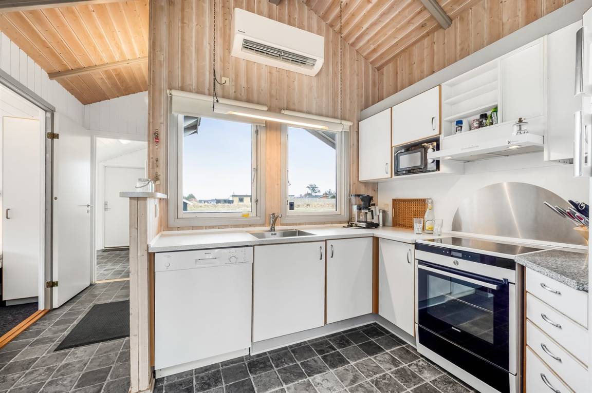 Ferienhaus aus Holz, 1994 gebaut. Das Haus liegt auf einem eingezäunten Naturgrundstück, zwischen Meer und Fjord, und dicht an den Städten Hvide Sande und Søndervig. Zum Haus gehören 2 teilweise überdachte Terrassen mit Gartenmöbeln. Die Böden sind mit Teppich ausgelegt, jedoch gibt es PVC-Boden in der Küche. Wände und Decken sind mit hell gebeiztem, rustikalem Kiefernholz verkleidet. Es ist eine energiesparende Wärmepumpe installiert. Herrliches Badezimmer mit Duschnische, beheiztem Fliesenboden, 2-Pers. Whirlpool und direktem Zutritt zur Sauna. Außerdem Gästetoilette. Die schöne Küchenabteilung ist u.a. mit Tiefkühlgerät, Mikrowelle, Geschirrspüler und Herd mit Ceran-Feld ausgestattet. Das gemütliche Wohnzimmer enthält Kaminofen, Stereoanlage mit CD-Spieler, Flatscreen-TV mit digitalem Satellitenanschluss und Chromecast. Kostenlose, kabellose Internetverbindung vorhanden (eigener Computer muss mitgebracht werden). Darüber hinaus Kinderhochstuhl, Kinderbett, Waschmaschine und Wäschetrockner zur Verfügung. 4 Schlafzimmer; 2 mit Doppelbett und 2 mit 2 Einzelbetten. Sandkasten, Schaukel und Spielturm mit Rutsche für die Kinder. Gute Aktivitätsmöglichkeiten und Einkaufsmöglichkeiten im Gebiet.