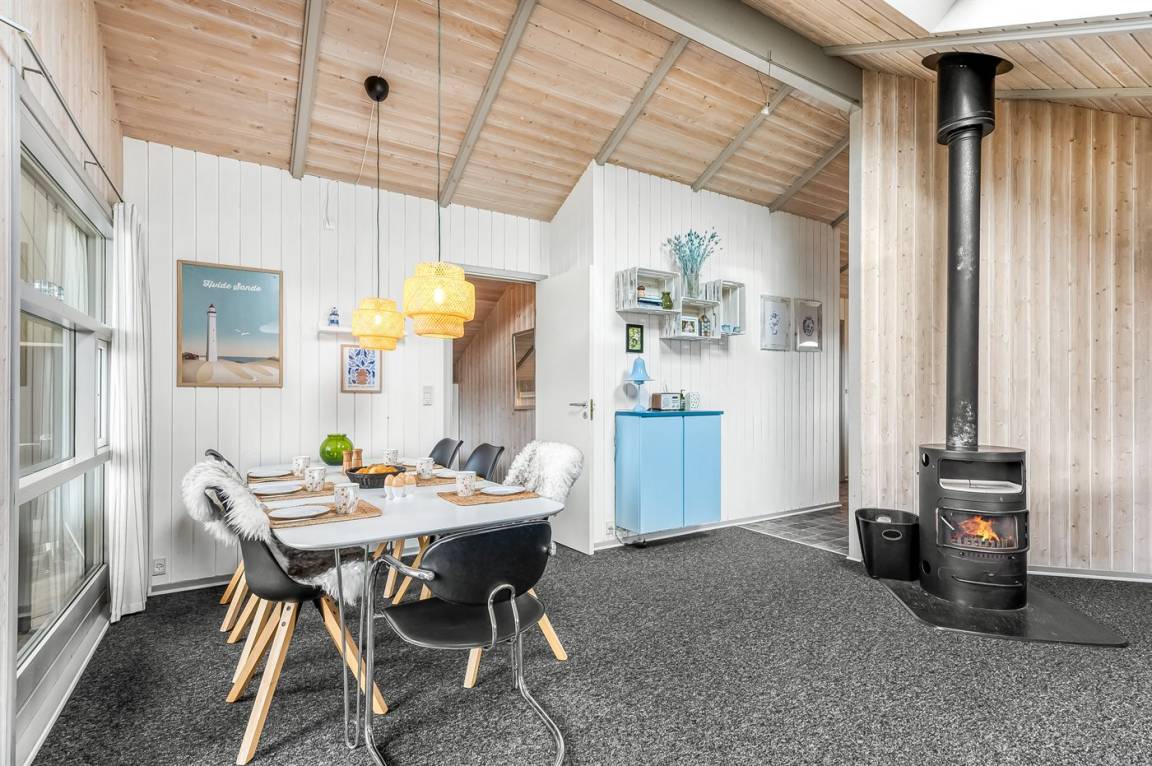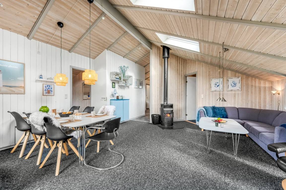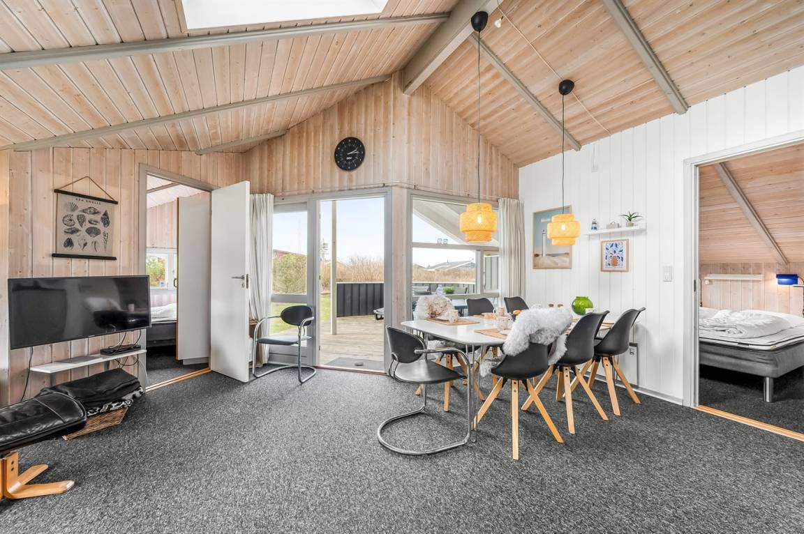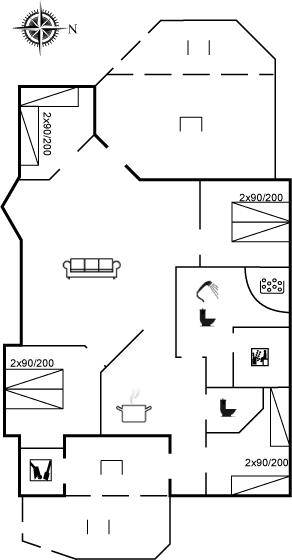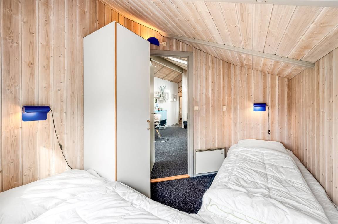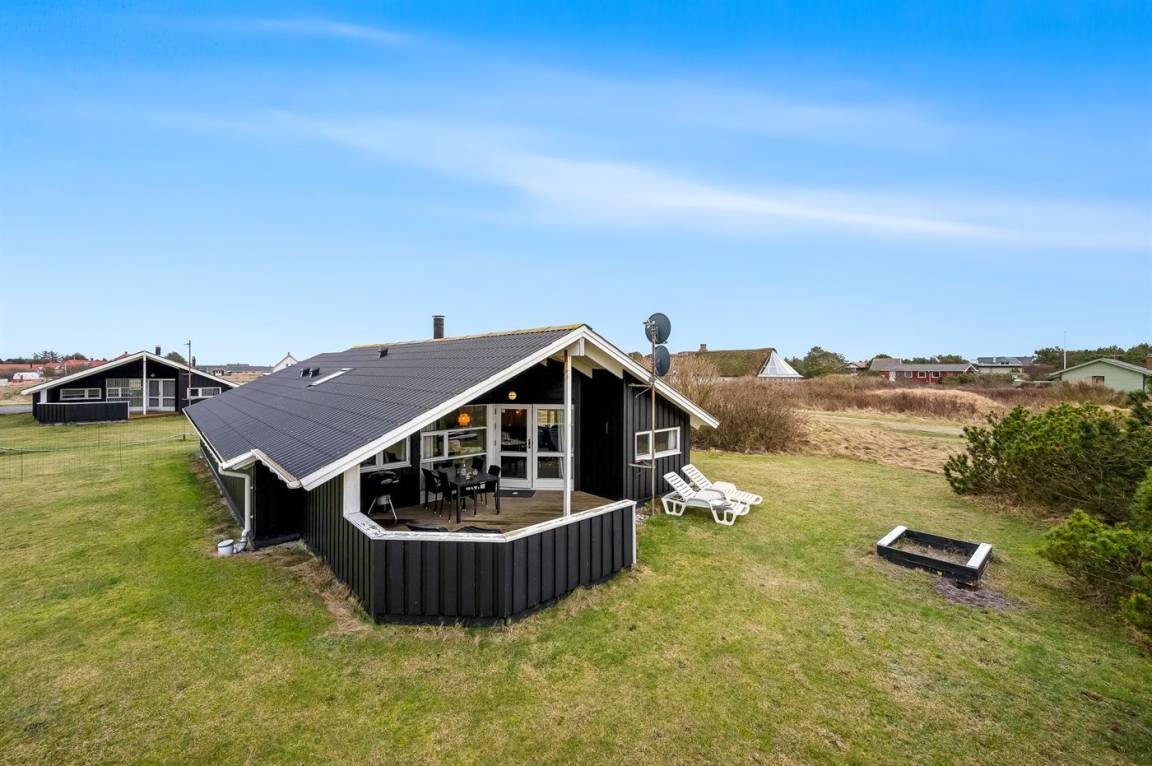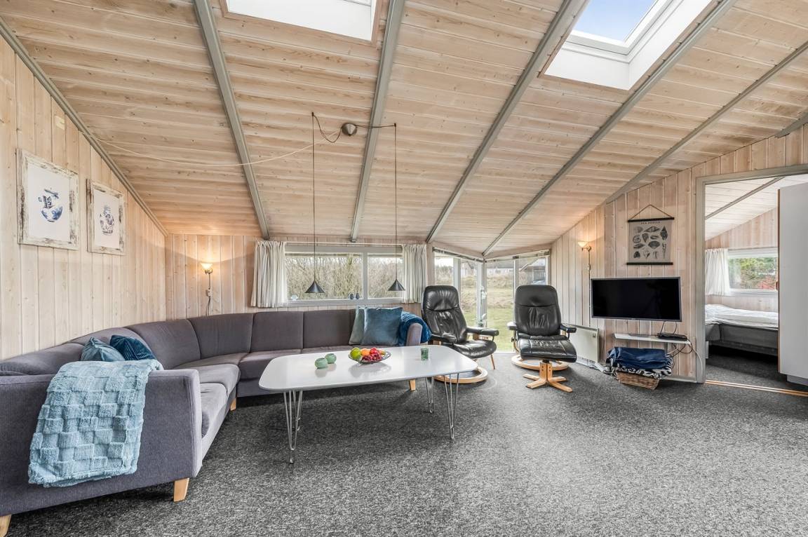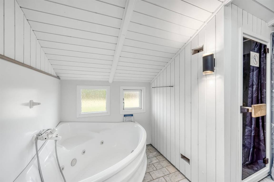 Ferienhaus aus Holz, 1994 gebaut. Das Haus liegt auf einem eingezäunten Naturgrundstück, zwischen Meer und Fjord, und dicht an den Städten Hvide Sande und Søndervig. Zum Haus gehören 2 teilweise überdachte Terrassen mit Gartenmöbeln. Die Böden sind mit Teppich ausgelegt, jedoch gibt es PVC-Boden in der Küche. Wände und Decken sind mit hell gebeiztem, rustikalem Kiefernholz verkleidet. Es ist eine energiesparende Wärmepumpe installiert. Herrliches Badezimmer mit Duschnische, beheiztem Fliesenboden, 2-Pers. Whirlpool und direktem Zutritt zur Sauna. Außerdem Gästetoilette. Die schöne Küchenabteilung ist u.a. mit Tiefkühlgerät, Mikrowelle, Geschirrspüler und Herd mit Ceran-Feld ausgestattet. Das gemütliche Wohnzimmer enthält Kaminofen, Stereoanlage mit CD-Spieler, Flatscreen-TV mit digitalem Satellitenanschluss und Chromecast. Kostenlose, kabellose Internetverbindung vorhanden (eigener Computer muss mitgebracht werden). Darüber hinaus Kinderhochstuhl, Kinderbett, Waschmaschine und Wäschetrockner zur Verfügung. 4 Schlafzimmer; 2 mit Doppelbett und 2 mit 2 Einzelbetten. Sandkasten, Schaukel und Spielturm mit Rutsche für die Kinder. Gute Aktivitätsmöglichkeiten und Einkaufsmöglichkeiten im Gebiet.