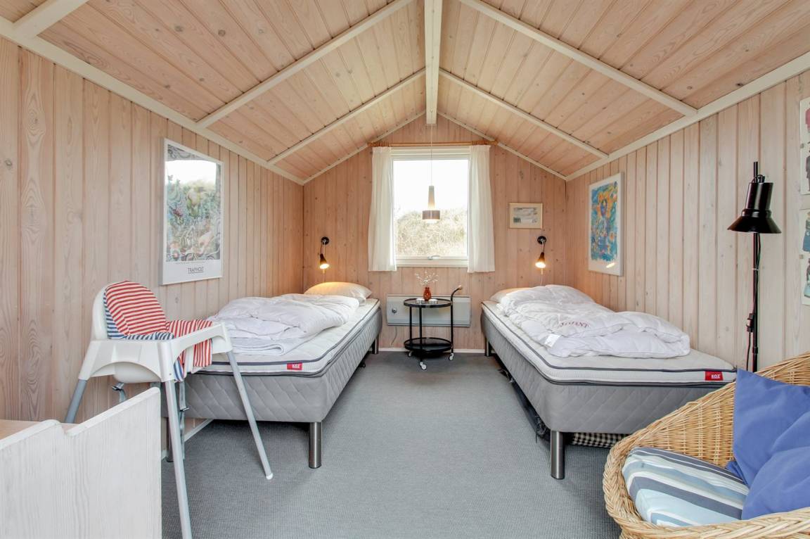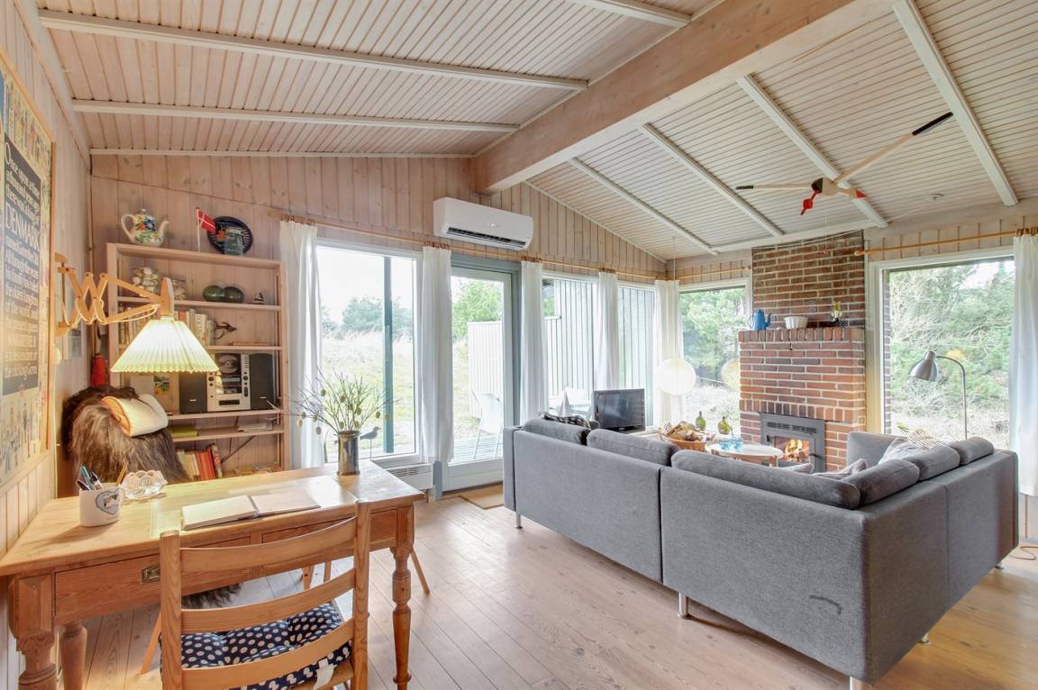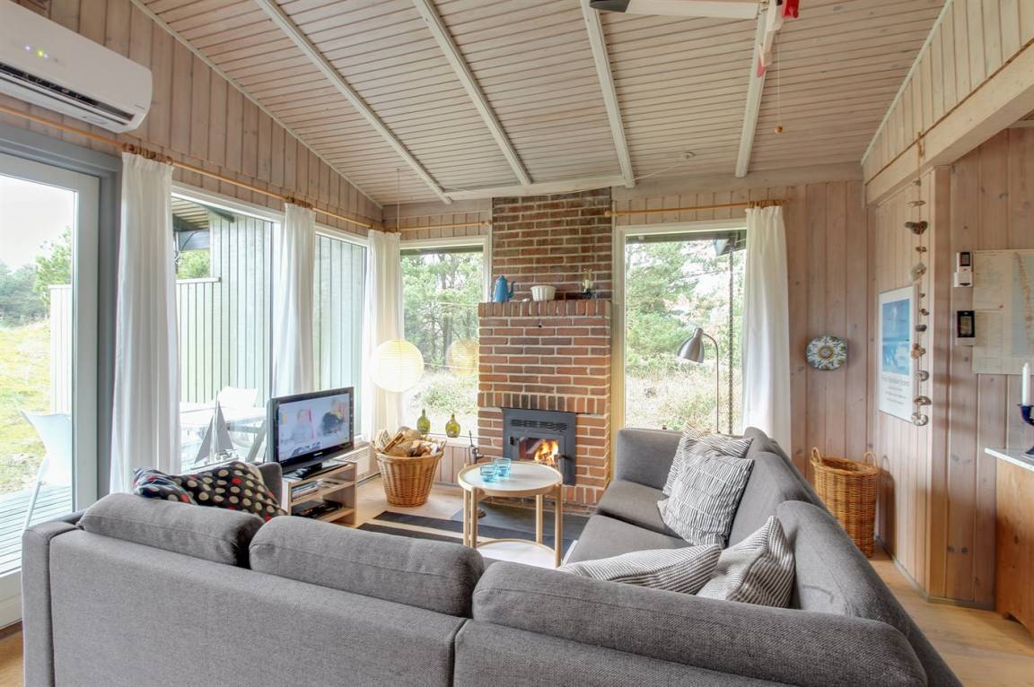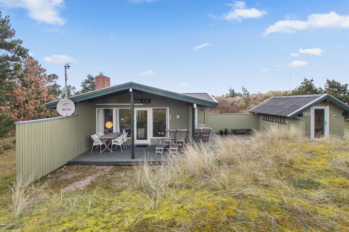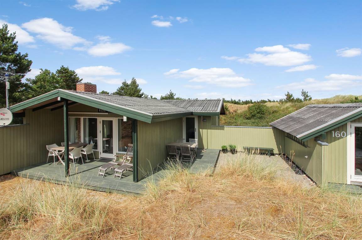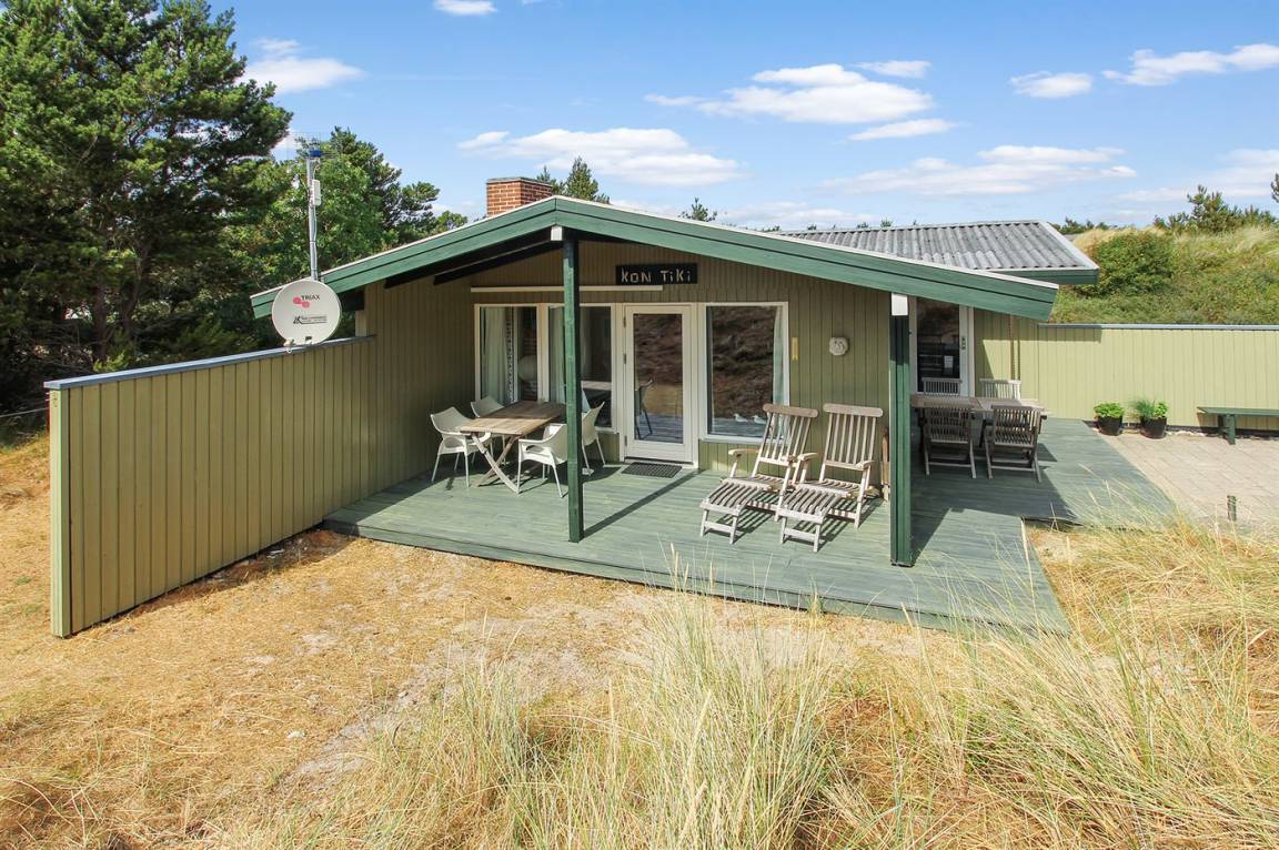 Dieses herrliche und gepflegte Ferienhaus aus Holz, 1975 gebaut und 2007/2008 renoviert, liegt auf einem hügeligen Natur-/Dünengrundstück mit Bepflanzung in ruhiger Umgebung. Zum Haus gehört ein schönes sowohl offenes als auch überdachtes Terrassenareal mit diversen Gartenmöbeln. Dieses schöne und gepflegte Ferienhaus liegt auf einem hügeligen Natur-/Dünengrundstück mit Bepflanzung in ruhiger Umgebung. Zum Haus gehört ein schönes sowohl offenes als auch überdachtes Terrassenareal mit diversen Gartenmöbeln. Teppichböden, jedoch Holzboden in der Küche und im Wohnzimmer. Holzwände und -decken. Badezimmer mit Duschnische. Die nette Küche ist u. a. mit Mikrowelle,Herd mit Ceran-Feld und Geschirrspüler ausgestattet. Wohnzimmer mit CD-Spieler, TV mit digitalem Satellitenanschluss, DVD-Spieler sowie Kaminofen. Die 6 Schlafplätze des Hauses verteilen sich auf 1 Zimmer mit Doppelbett, 1 Zimmer mit Etagenbett sowie großes Gästehaus mit 2 Schlafplätzen. An weiterer Ausstattung können kostenlose, kabellose Internetverbindung sowie Kinderhochstuhl erwähnt werden und es ist eine energiesparende Wärmepumpe (Luft zu Luft) installiert. Ein wirklich schönes Ferienhaus.