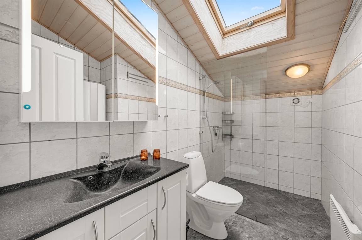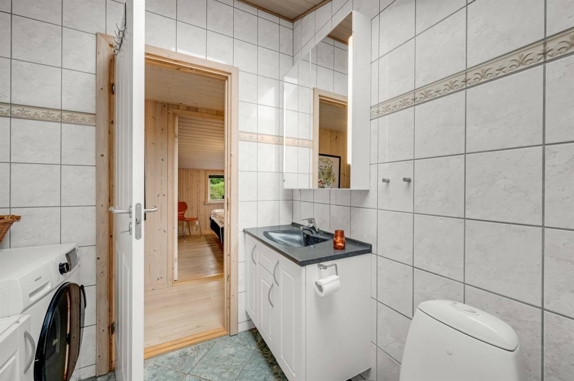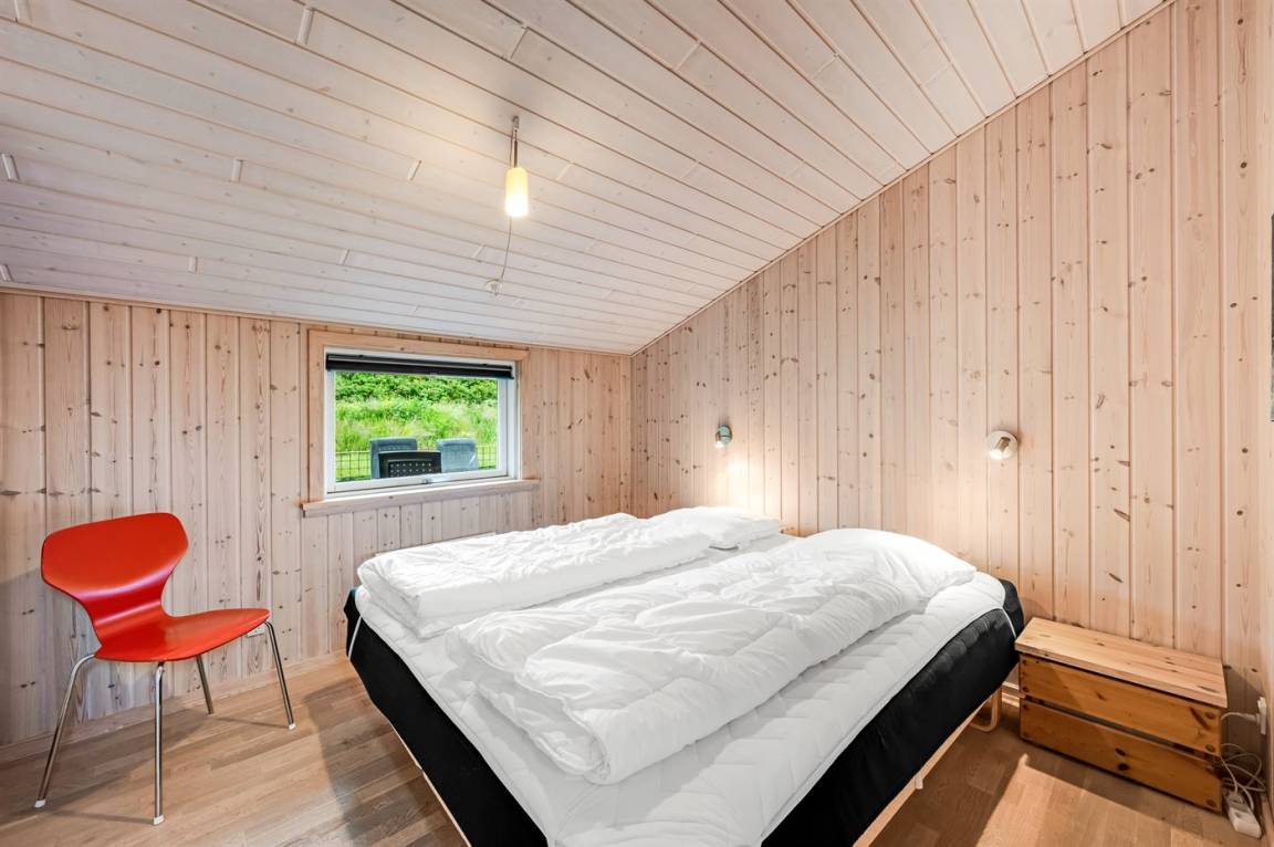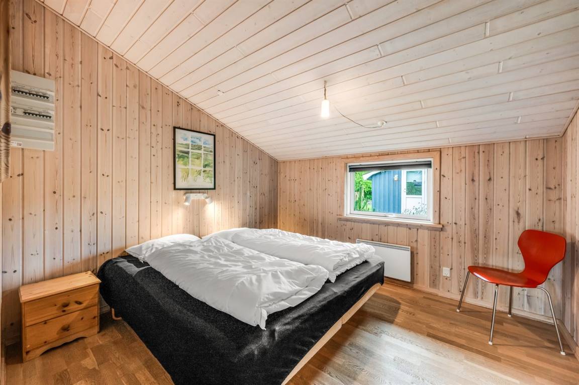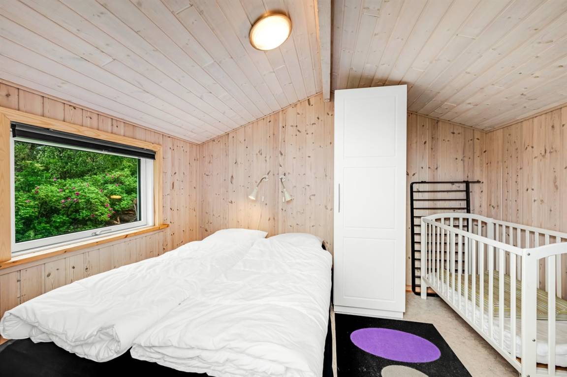 Dieses schöne Ferienhaus mit viel Platz und Oberlichtfenster, die für ein gutes Lichteinfall sorgen, liegt in ruhiger und naturschöner Umgebung zwischen Meer und Fjord. Auf dem geschlossenen Grundstück gibt es Platz für Ballspiele und andere Aktivitäten sowie ein Gästehaus, das mit Doppelbett eingerichtet ist.