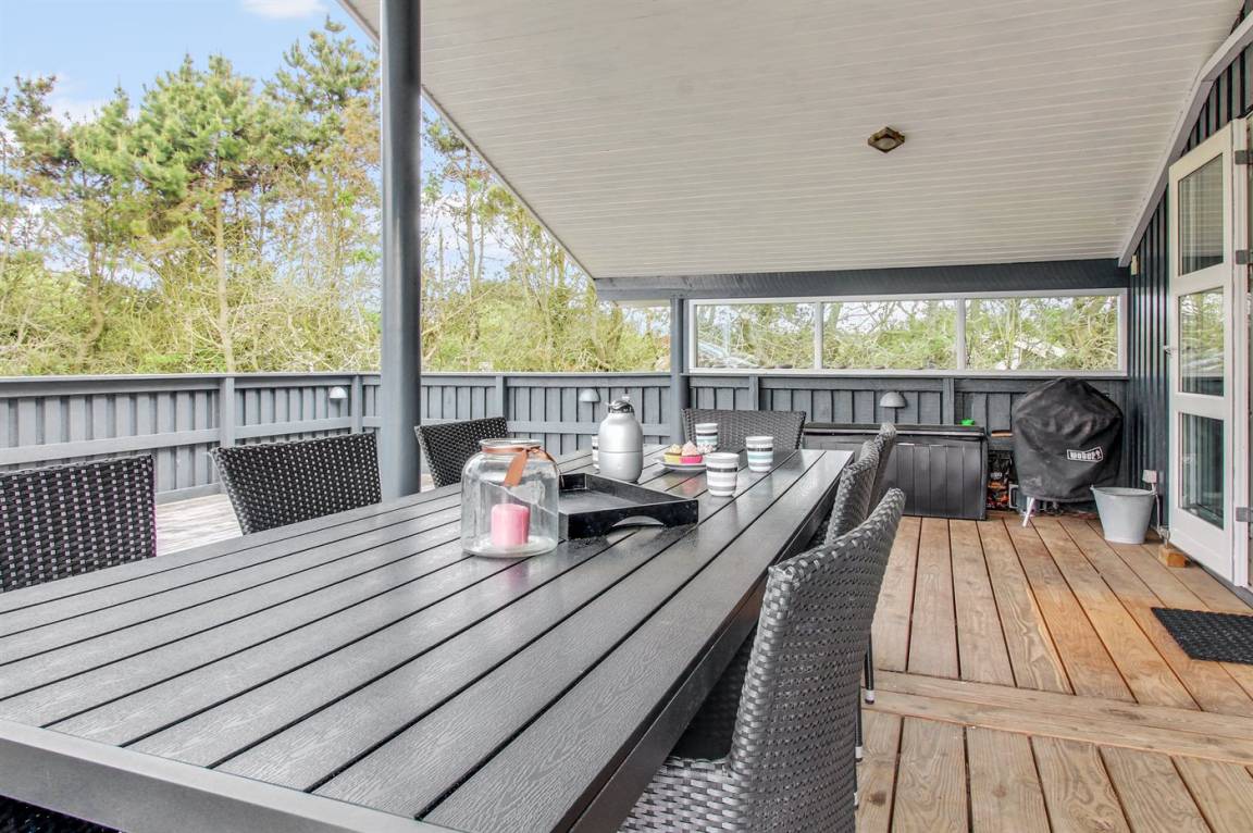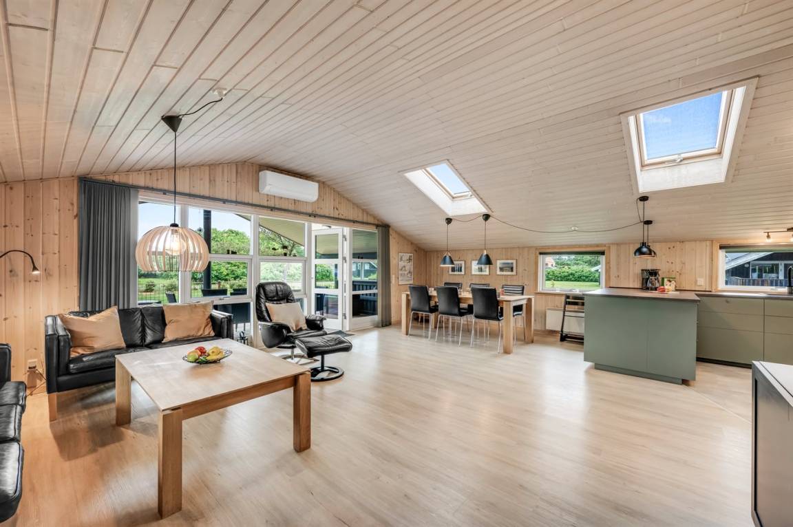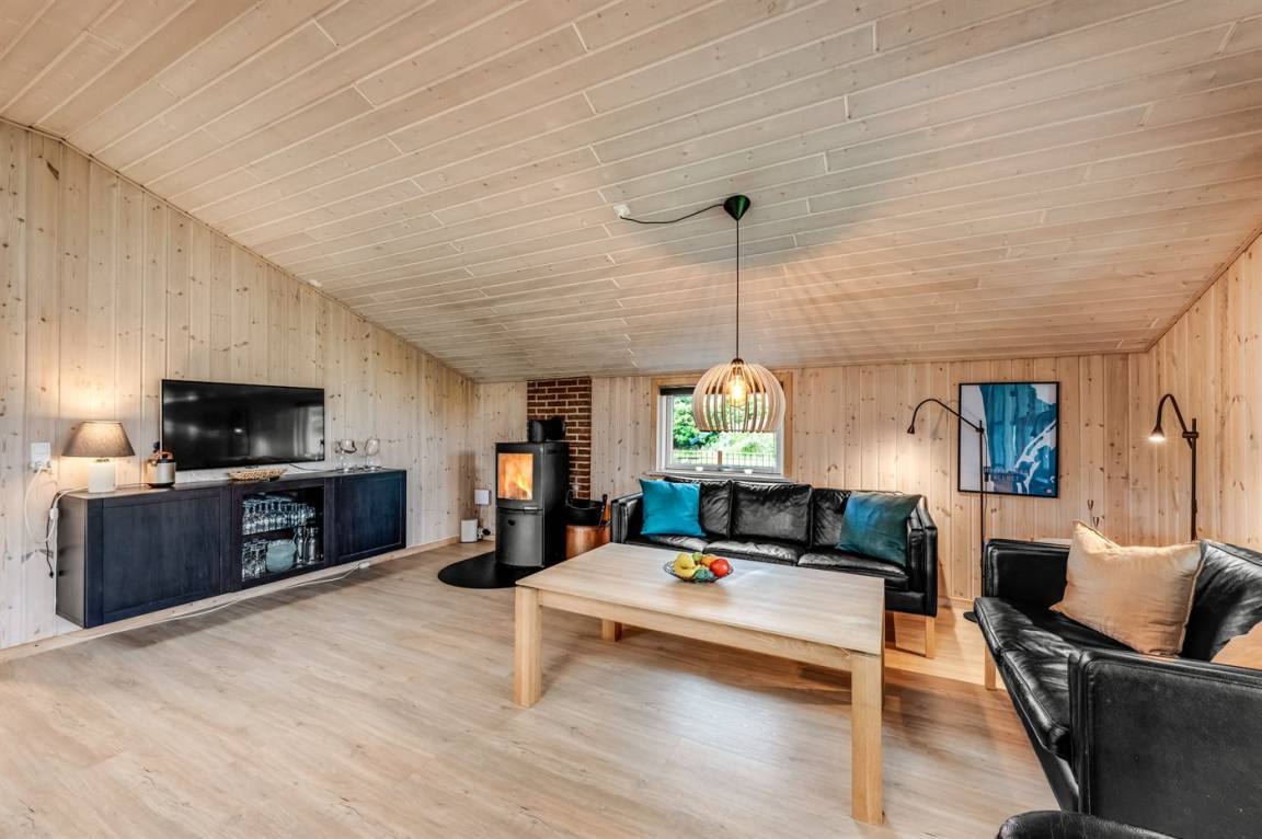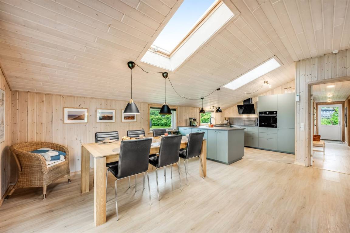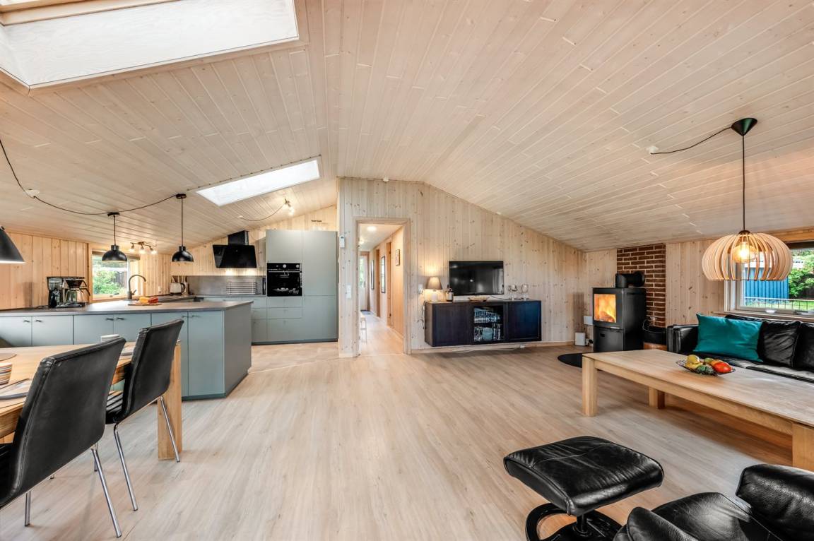DraußenDie Ferienunterkunft liegt auf einem 1202 m² großen Naturgrundstück. Die Entfernung zum Meer beträgt 800 m. Die Entfernung zum Fjord beträgt 500 m. Die nächste Einkaufsmöglichkeit liegt 150 m entfernt. Es steht ein 75 m² Terrassenareal zur Verfügung. Außerdem gibt es 40 m² überdachte Terrasse. Es steht ein Grill zur Verfügung. Parkplatz auf dem Grundstück.