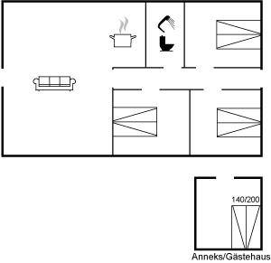 SchlafverhältnisseDie Schlafplätze verteilen sich auf 4 Schlafräume. 6 Schlafplätze in Doppelbetten.2 Schlafplätze in elektrisch verstellbaren Betten. 2 von diesen Schlafplätzen befinden sich im Gästehaus. Ferner steht ein Kinderbett zur Verfügung.