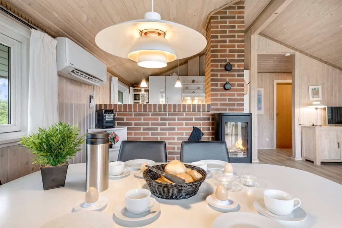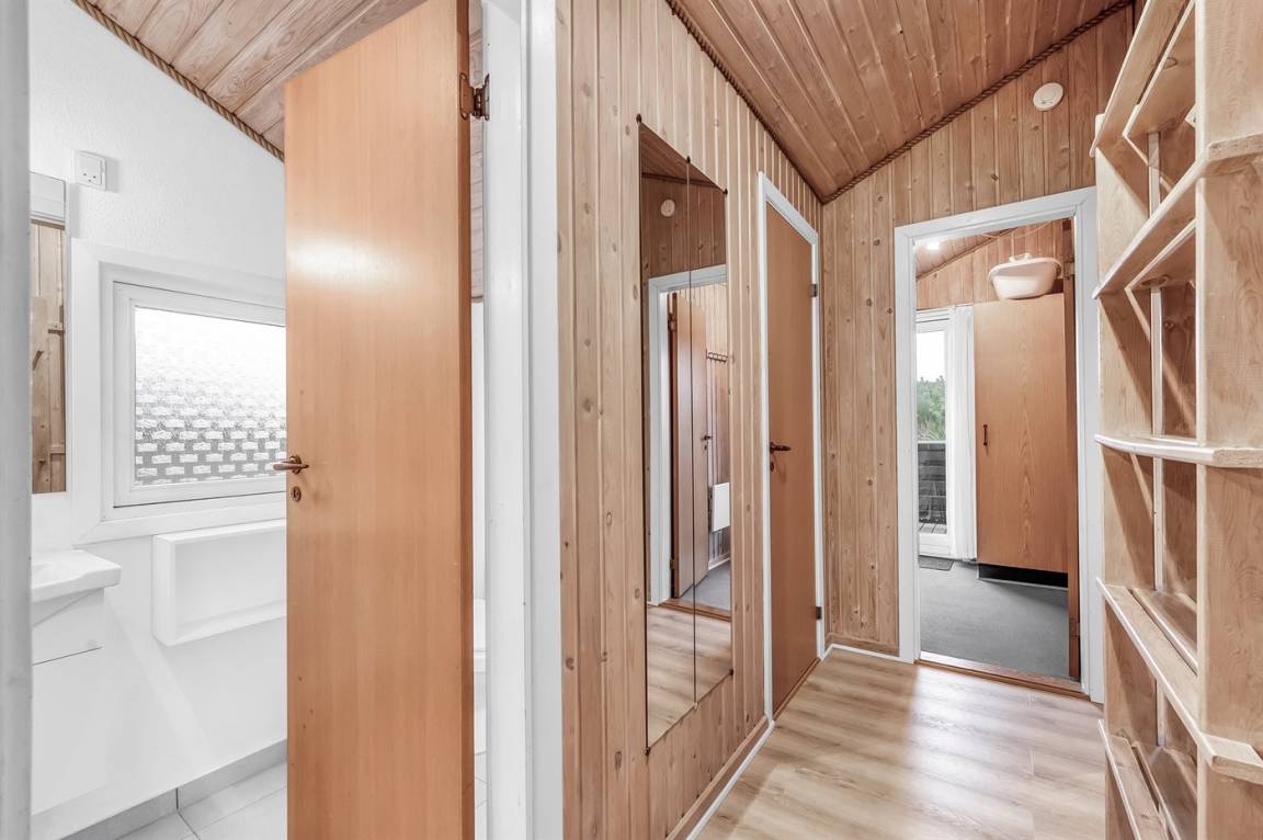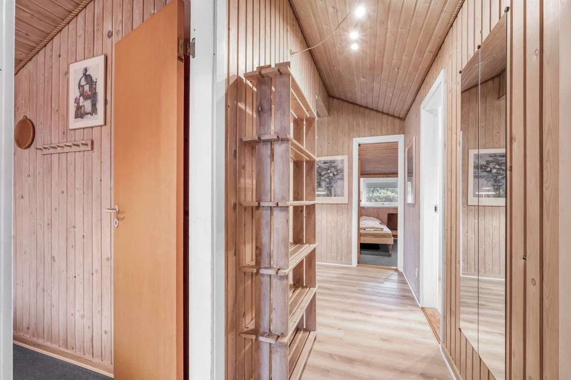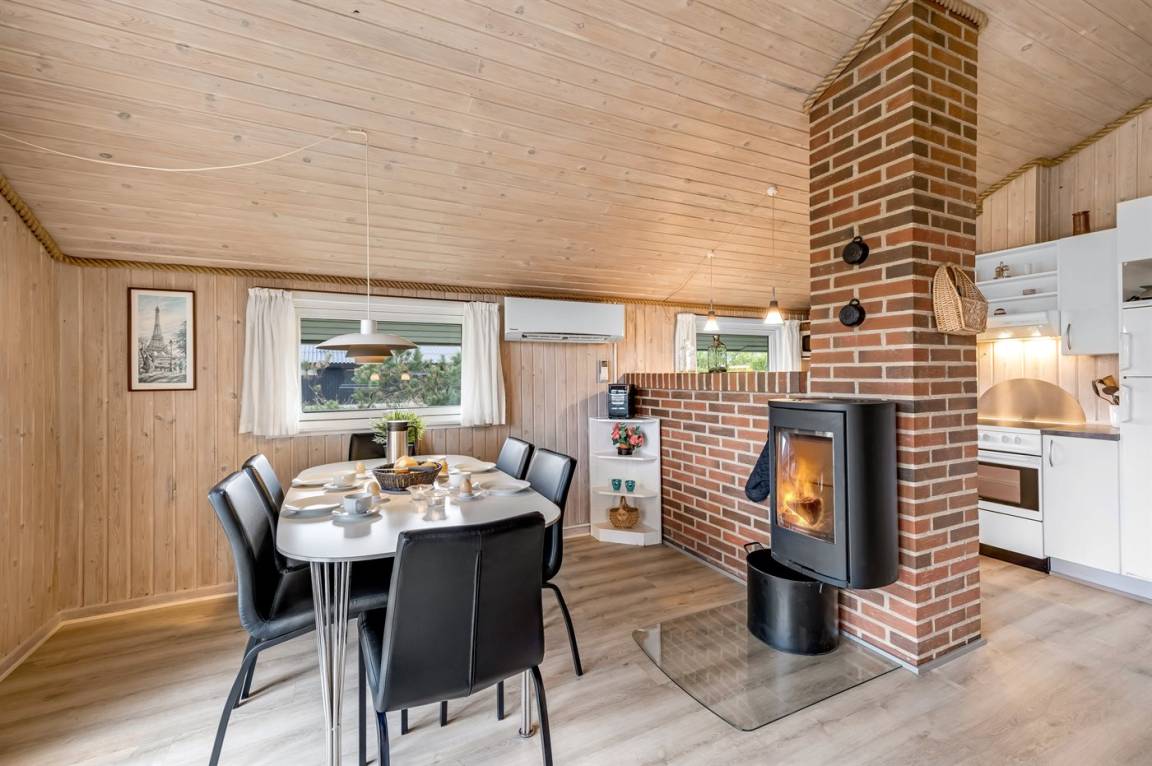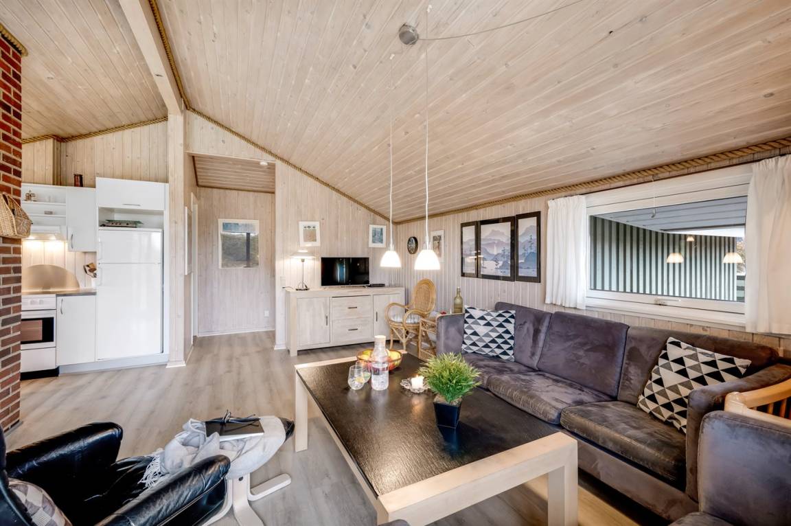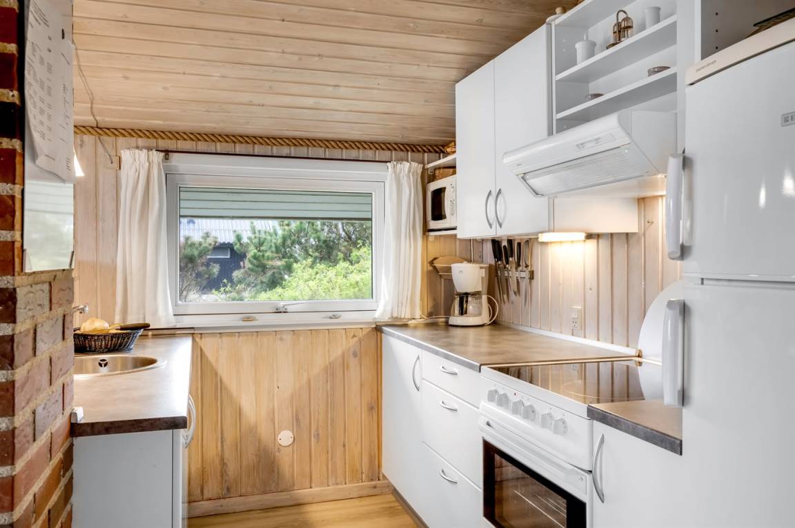 Auf einem schönen, hügeligen Dünengrundstück nur 200 m vom Meer entfernt liegt dieses schöne und gepflegte Ferienhaus aus Holz, 1985 gebaut und 2008 modernisiert. Offenes und überdachtes Terrassenareal mit diversen Gartenmöbeln und gutem Windschutz. Holzdecken und -wände, Teppichböden überall - jedoch PVC-boden in der Küche. Badezimmer mit Duschnische und Fußbodenheizung. Die Küche ist mit u. a. Geschirrspüler, Mikrowelle und Kühlschrank mit Gefrierfach ausgestattet. Gemütliches Wohnzimmer mit Kaminofen und Flatscreen-TV mit digitalem Satellitenanschluss. 3 Zimmer; 1 mit Doppelbett, 1 mit 2 Einzelbetten und 1 mit Etagenbett. Ferner stehen Waschmaschine sowie Wäschetrockner zur Verfügung und es ist eine energiegerechte Wärmepumpe installiert. Für die Kinder gibt es Sandkasten, Schaukel, Kinderbett und Kinderhochstuhl. Ein Ferienhaus mit einer guten Lage.