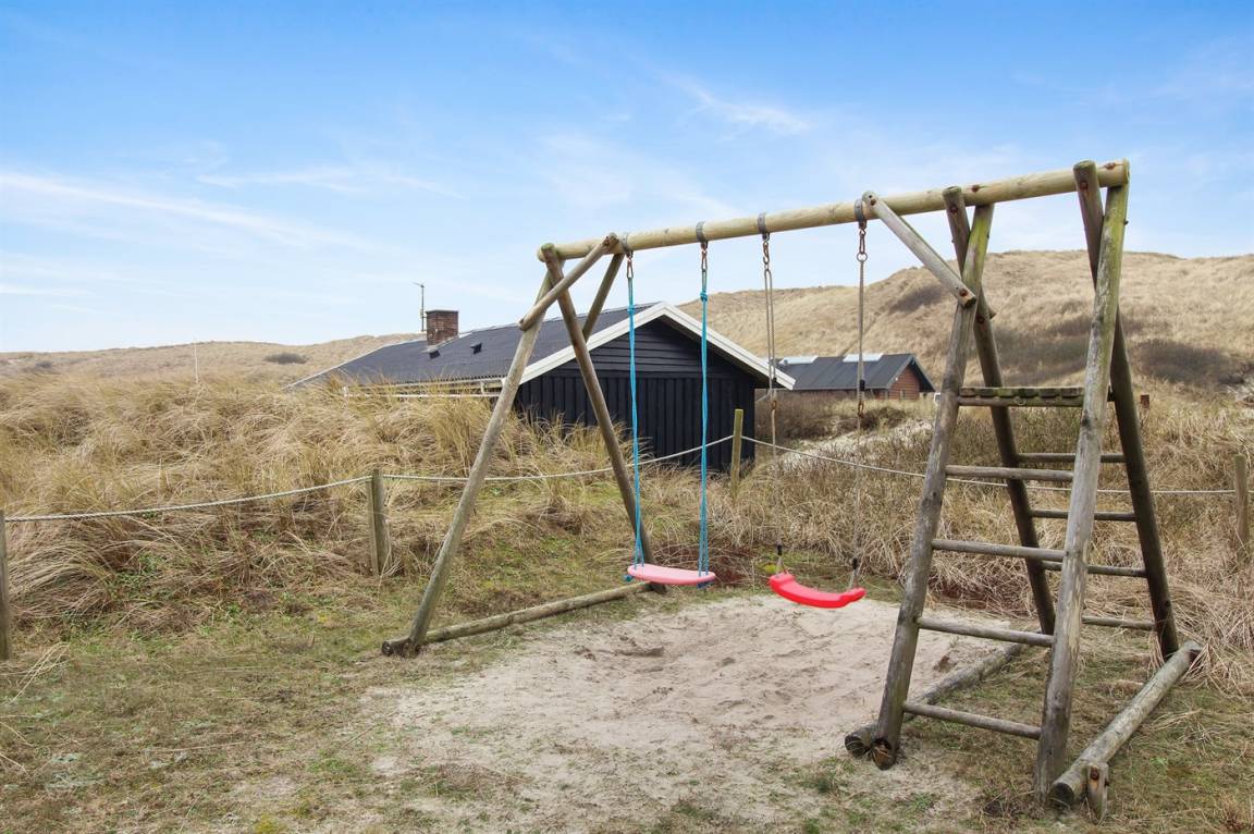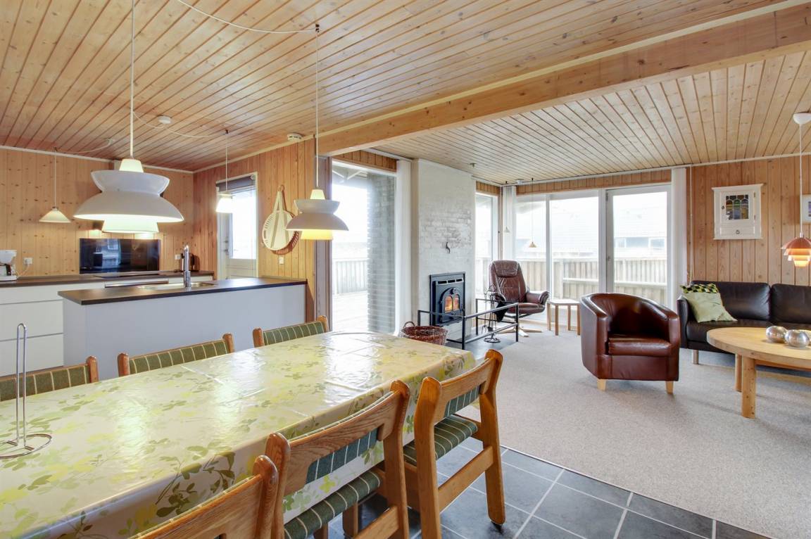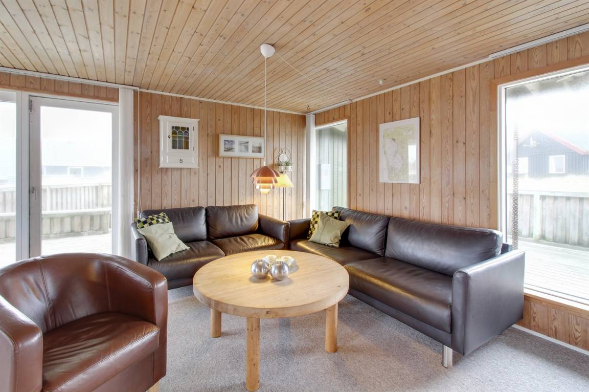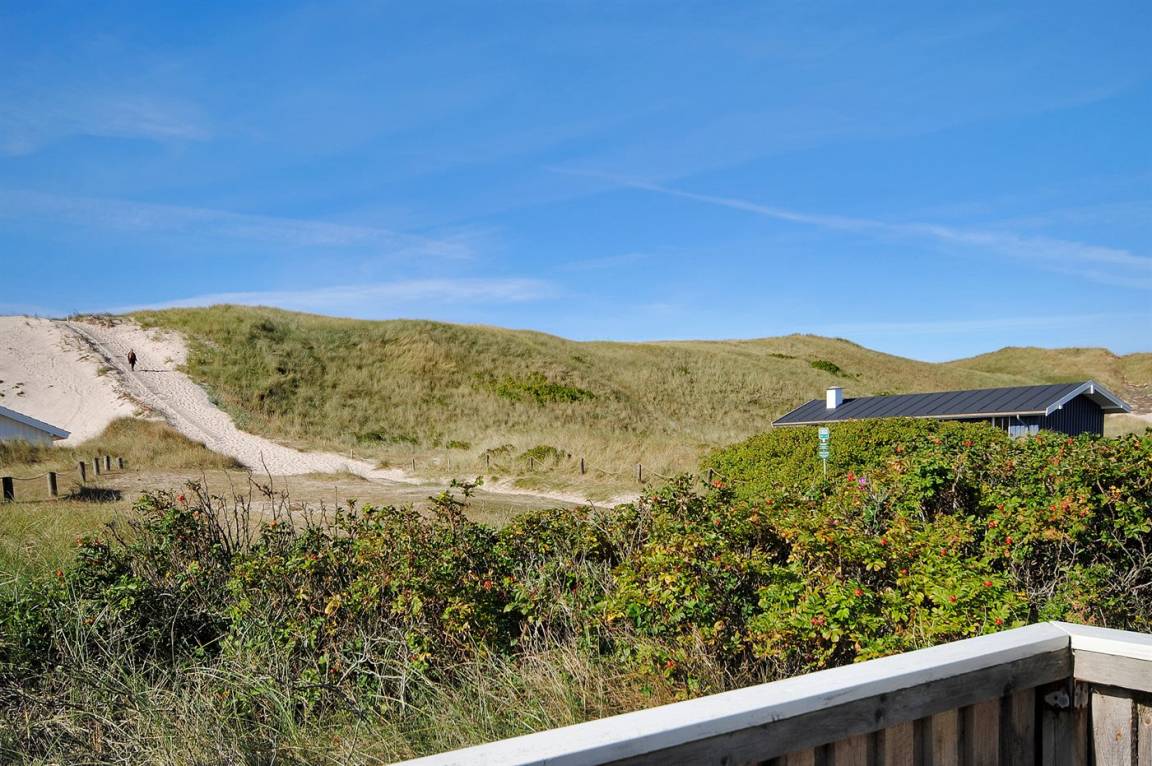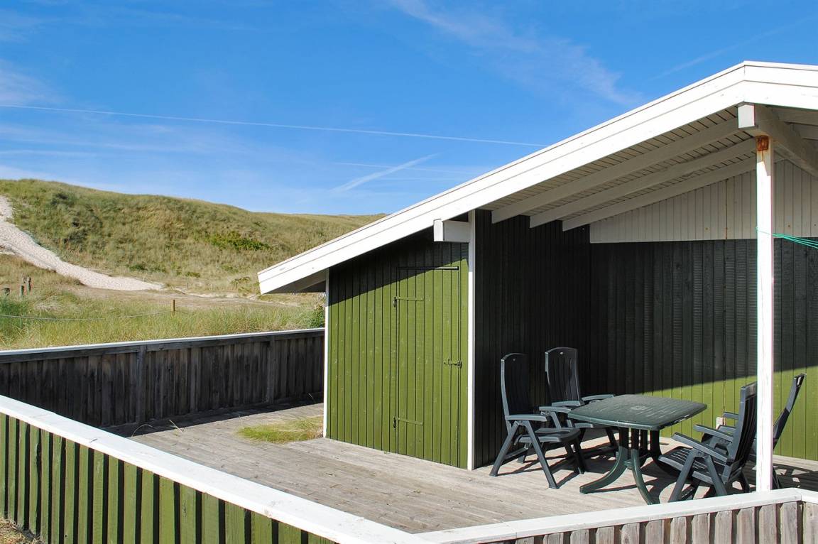 DraußenDie Ferienunterkunft liegt auf einem 1400 m² großen Dünengrundstück. Die Entfernung zum Meer beträgt 100 m. Die Entfernung zum Fjord beträgt 1500 m. Die nächste Einkaufsmöglichkeit liegt 1200 m entfernt. Es steht ein 60 m² Terrassenareal zur Verfügung. Davon insgesamt 60 m² geschlossene Terrasse. Geräteraum. Sandkasten. Parkplatz auf dem Grundstück.