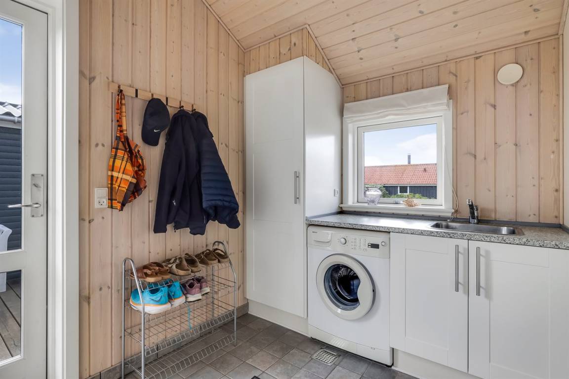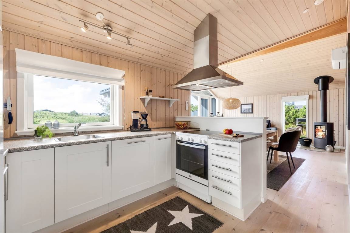 DraußenDie Ferienunterkunft liegt auf einem 1200 m² großen Naturgrundstück. Die Entfernung zum Meer beträgt 500 m. Die Entfernung zum Fjord beträgt 500 m. Die nächste Einkaufsmöglichkeit liegt 2000 m entfernt. Es steht ein 105 m² Terrassenareal zur Verfügung. Außerdem gibt es überdachte Terrasse. Geräteraum. Sandkasten. Es steht ein Grill zur Verfügung. Es ist ein Ladestecker für Elektroautos installiert. Ladestecker Typ 2. Mit einer Ladeleistung von 11 kW. Parkplatz auf dem Grundstück.