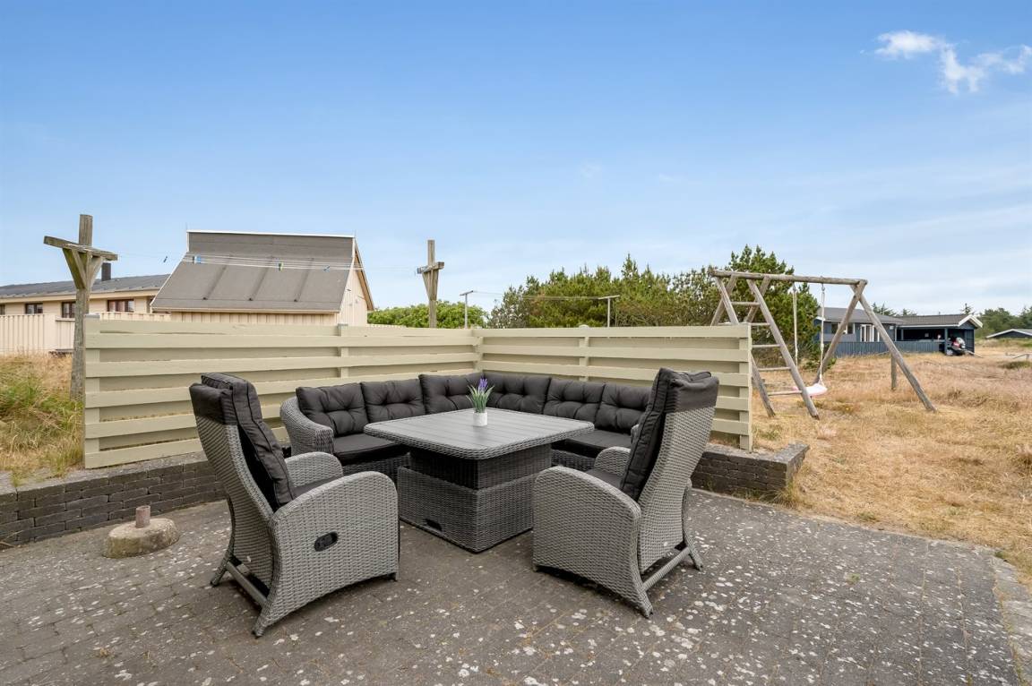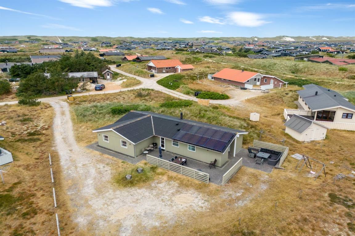 Dieses schöne Ferienhaus liegt auf einem leicht hügeligen Natur-/Dünengrundstück in ruhiger Umgebung. Zum Haus gehört eine große und zum Teil überdachte Terrassenfläche mit Gartenmöbeln.