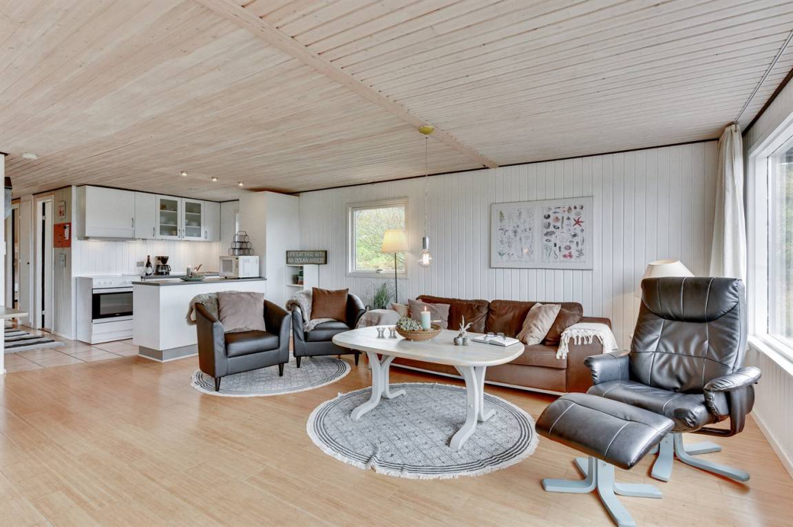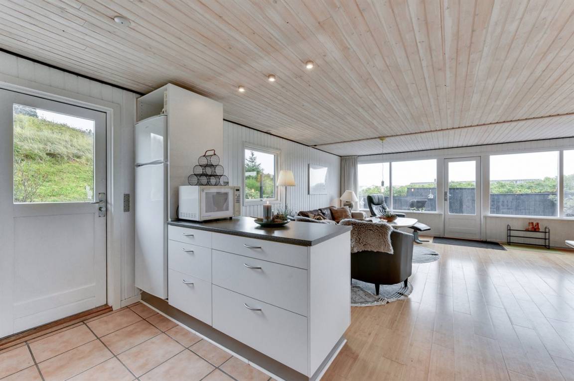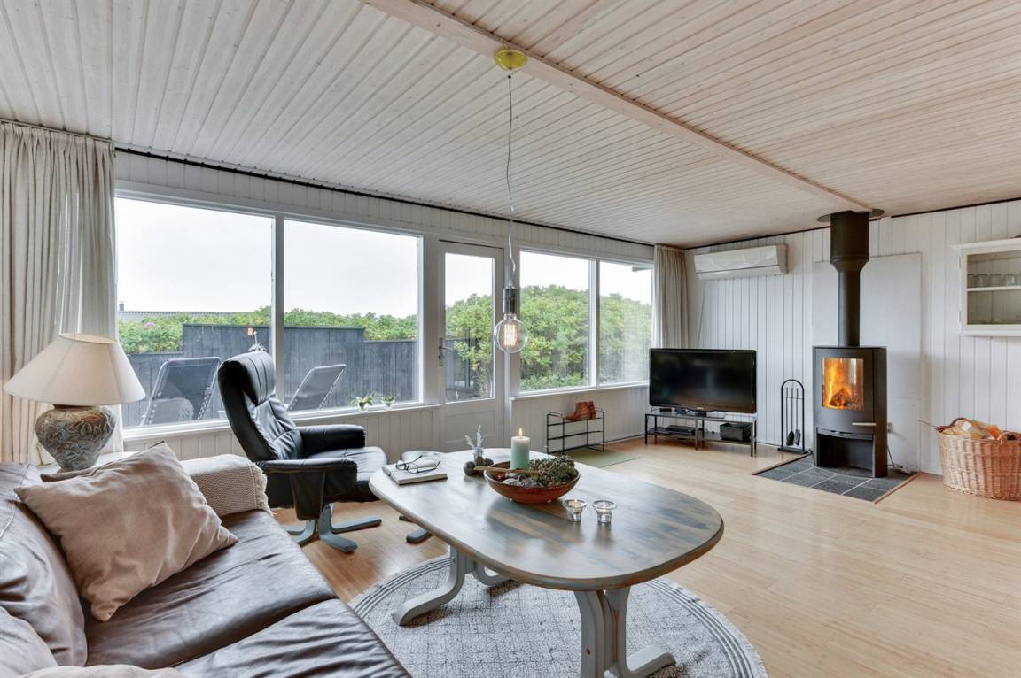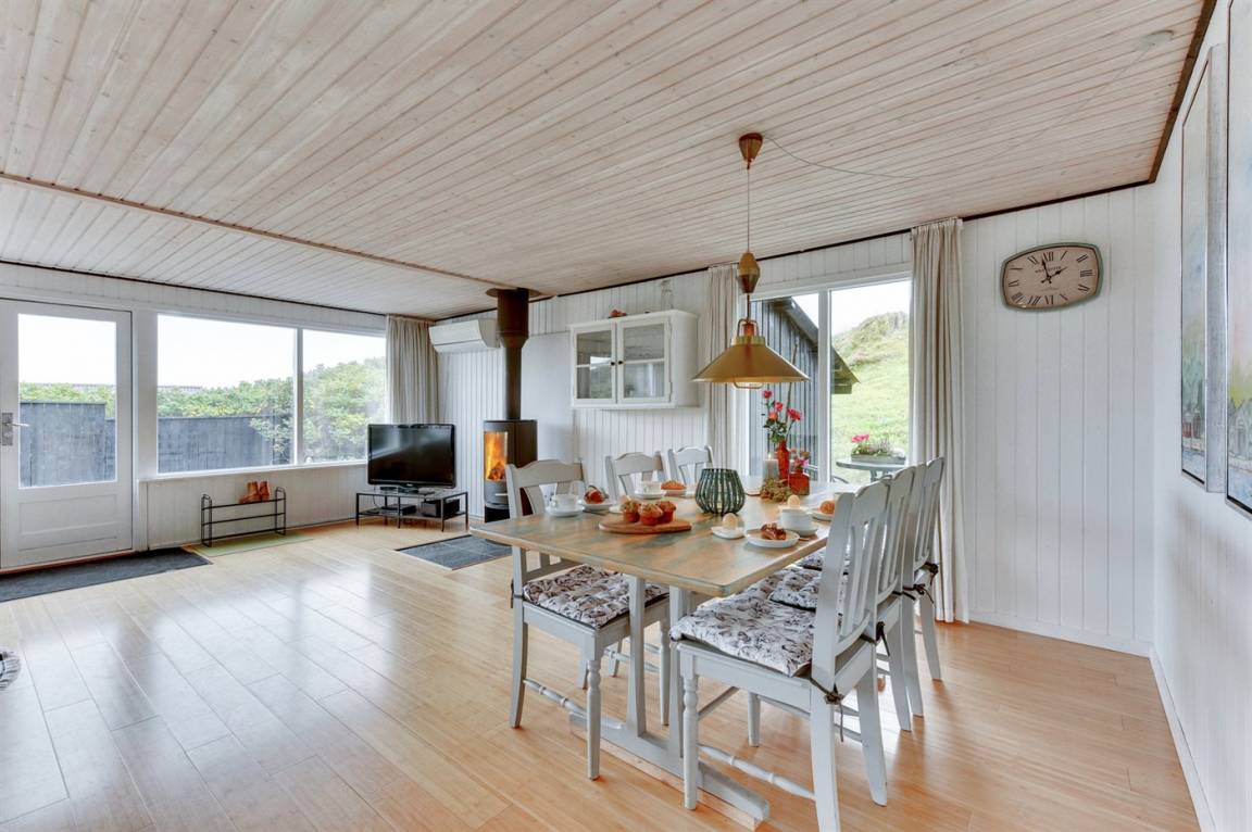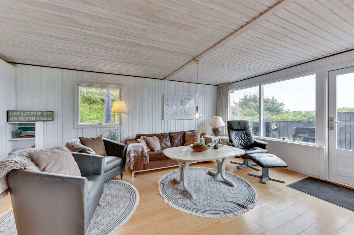 Hochliegendes und gemütliches Ferienhaus mit schönem Blick auf die Dünen zwischen See und Förde. Der Ort eignet sich sehr gut an Strandurlaub, Spaziergänge und Ausflug zur Hafenstadt Hvide Sande.