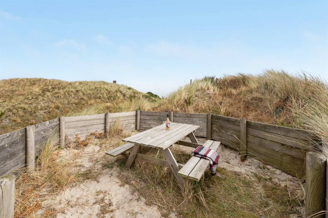 DraußenDie Ferienunterkunft liegt auf einem 2000 m² großen Dünengrundstück. Die Entfernung zum Meer beträgt 400 m. Die nächste Einkaufsmöglichkeit liegt 4500 m entfernt. Es steht ein 50 m² Terrassenareal zur Verfügung. Geräteraum. Schaukel. Parkplatz auf dem Grundstück.