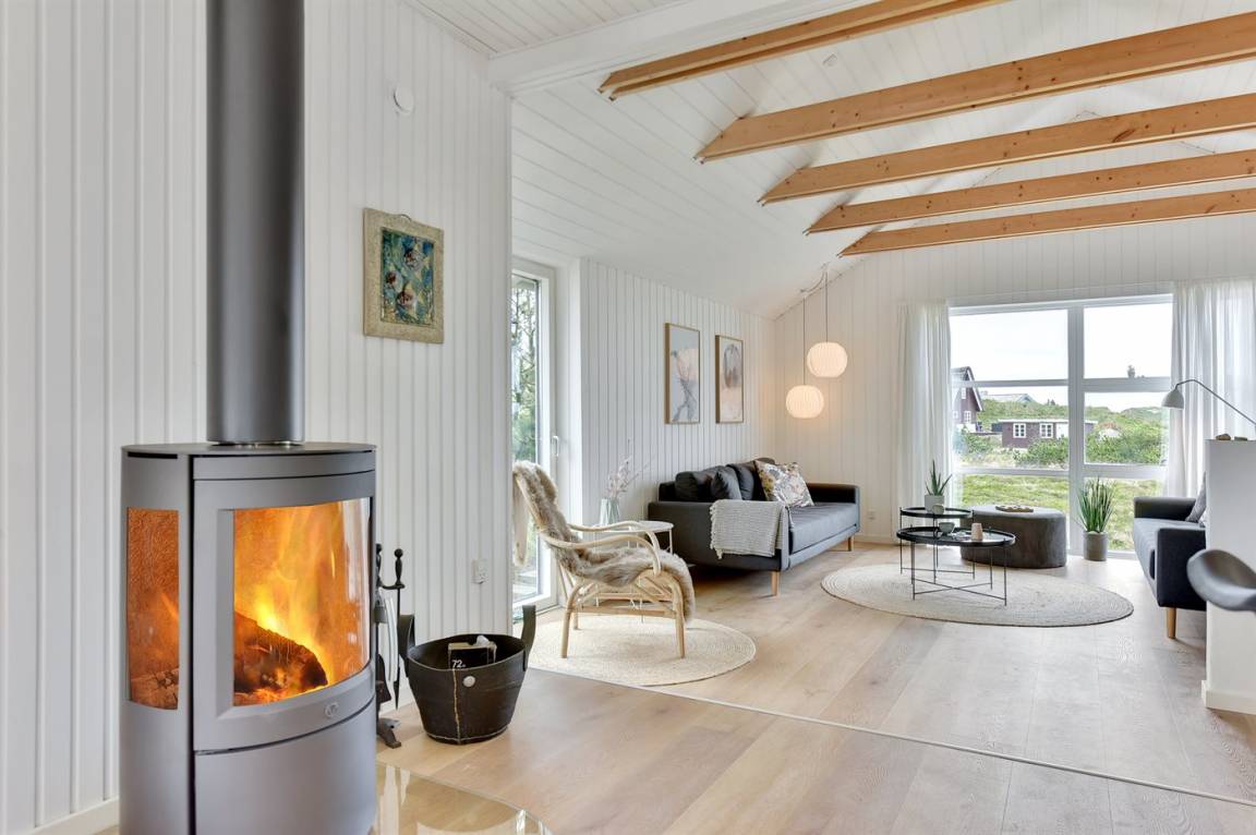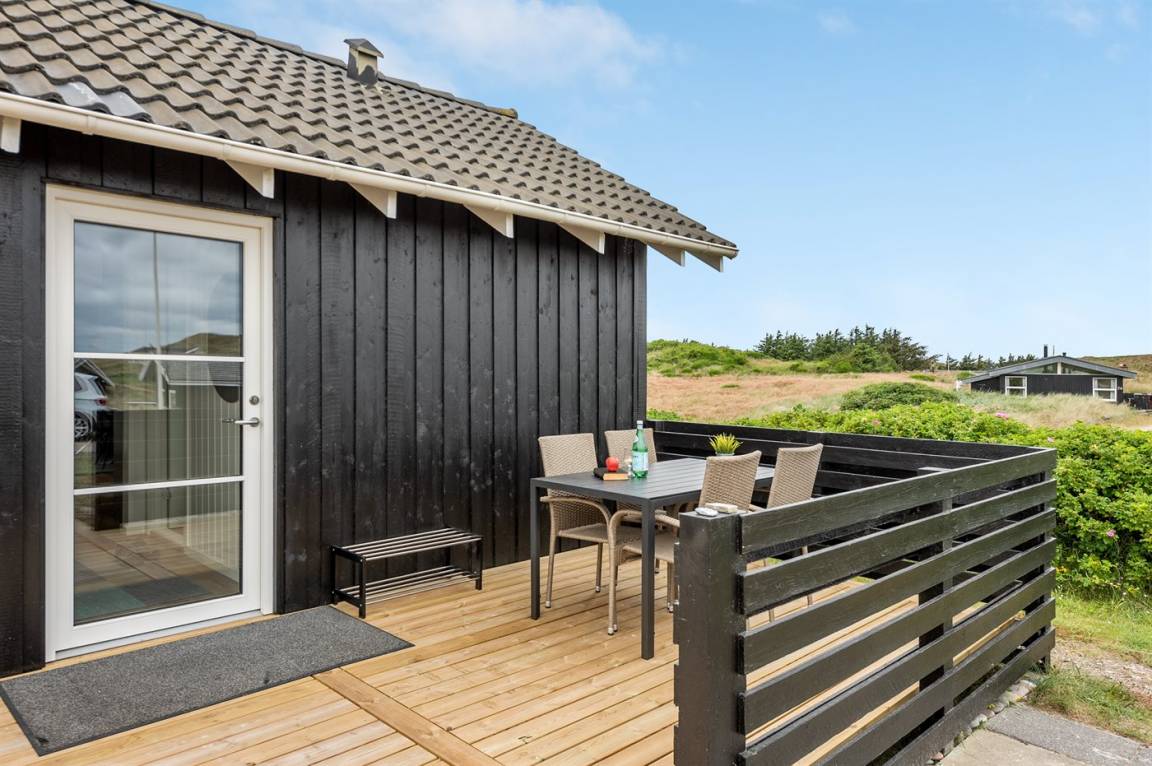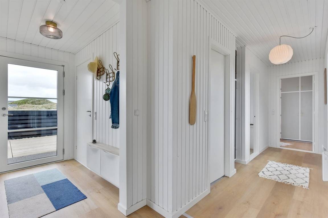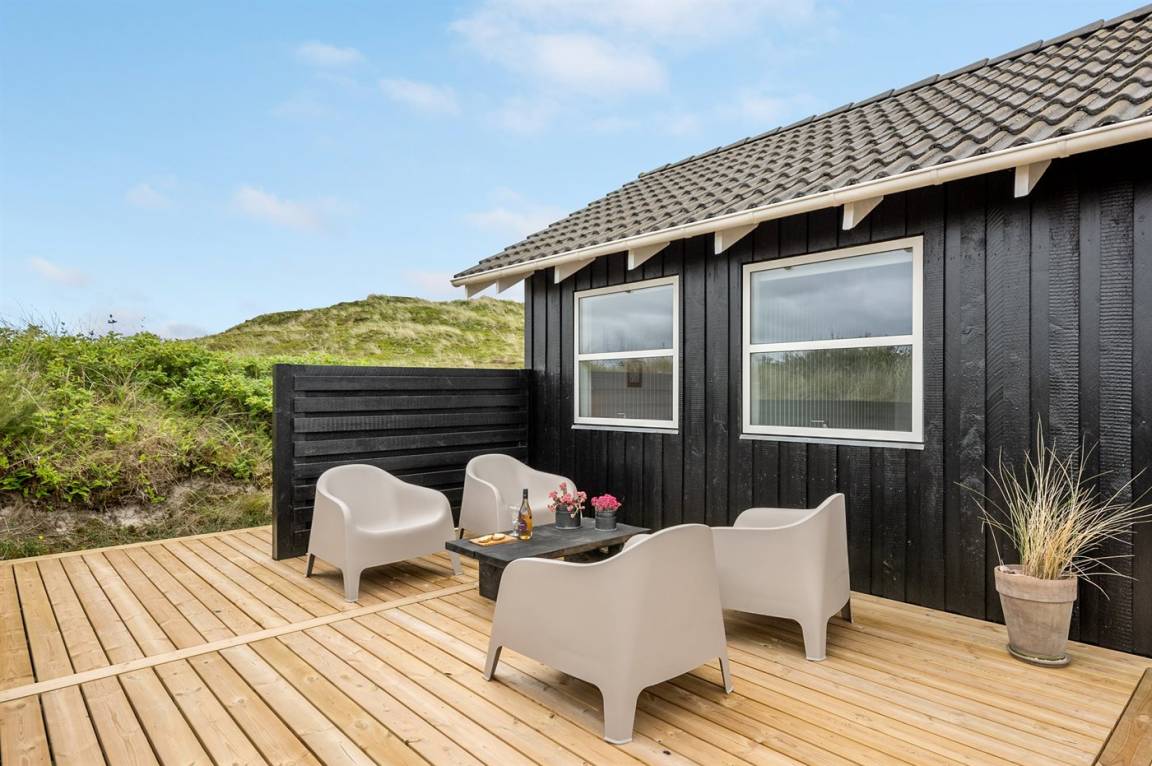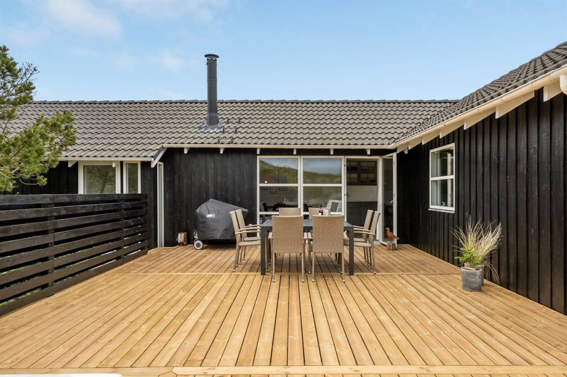 DraußenDie Ferienunterkunft liegt auf einem 4185 m² großen Dünengrundstück. Die Entfernung zum Meer beträgt 400 m. Die Entfernung zum Fjord beträgt 5000 m. Die nächste Einkaufsmöglichkeit liegt 3800 m entfernt. Es steht ein 120 m² Terrassenareal zur Verfügung. Geräteraum. Die Entfernung zu einem Spielplatz beträgt 3800 m. Außensauna. Parkplatz auf dem Grundstück.