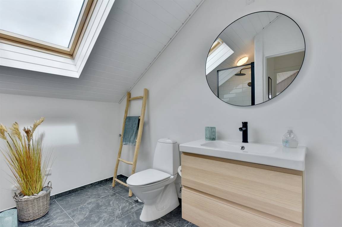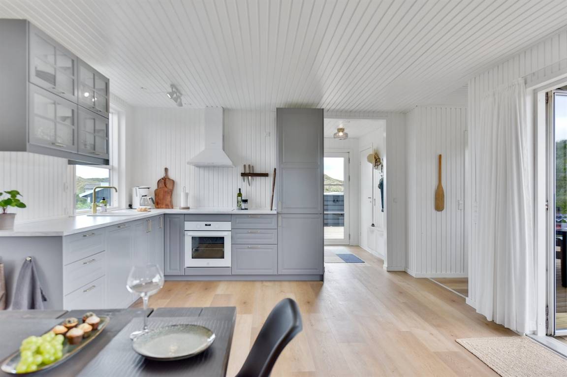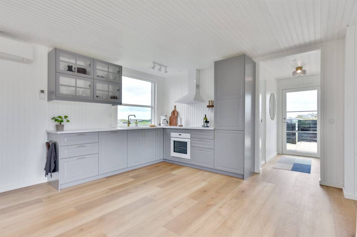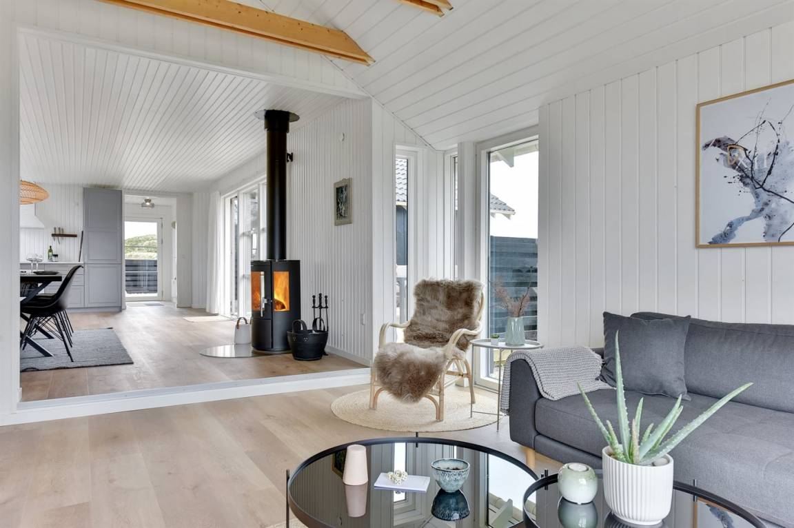 Auf einem sehr großen Naturgrundstück, mit Ausblick auf das Meer und den Fjord, liegt dieses besonders schöne Ferienhaus. Zum Haus gehört eine große Terrassenfläche mit Gartenmöbeln und ein schöner Außen-Whirlpool für 5 Personen, der das ganze Jahr hindurch benutzt werden kann.