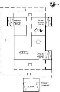 SchlafverhältnisseDie Schlafplätze verteilen sich auf 3 Schlafräume. 6 Schlafplätze in Doppelbetten. 2 Schlafplätze in Einzelbetten. 2 von diesen Schlafplätzen befinden sich im Gästehaus und 2 befinden sich im Wohnzimmer.