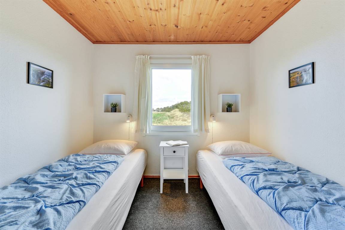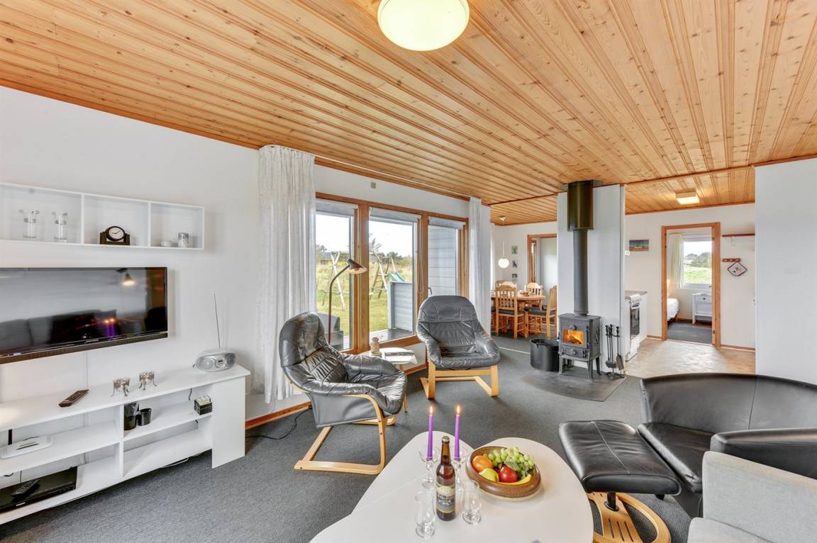 Gutes, gepflegtes Ferienhaus aus Holz, 1986 gebaut, auf einem Naturgrundstück gelegen. Offene und überdachte Terrasse mit Gartenmöbeln. Teppichboden, in der Küche jedoch PVC-Boden. Badezimmer mit Duschnische. Tiefkühlgerät, Geschirrspüler und Umluftofen in der Küche. Das Wohnzimmer enthält Kaminofen, Stereoanlage mit CD-Spieler, DVD-Spieler und TV mit Satellitenanschluss. Außerdem kostenlose, kabellose Internetverbindung (Computer ist mitzubringen),Kinderhochstuhl und Waschmaschine vorhanden. Sandkasten, Schaukel und Rutsche für die Kinder. Ein gemütliches Ferienhaus in einem Gebiet mit vielen Aktivitätsmöglichkeiten gelegen. Nur wenige Autominuten zur Hafenstadt Hvide Sande mit Restaurants, Einkaufsmöglichkeiten, Hafen u.a.m. Übrigens: Es ist nicht erlaubt Katzen mitzubringen.