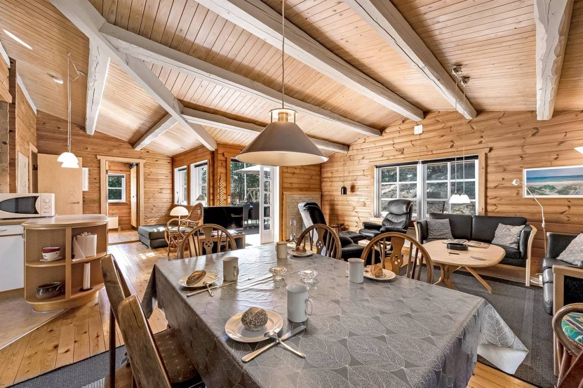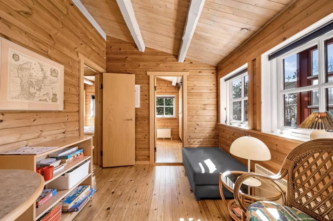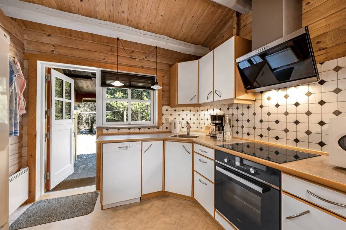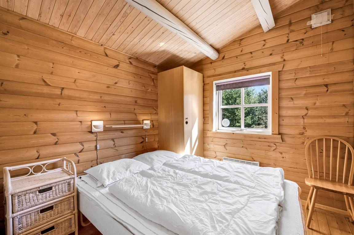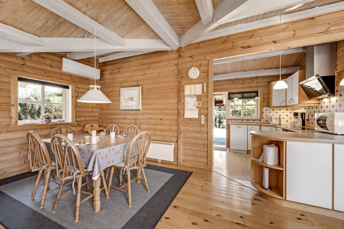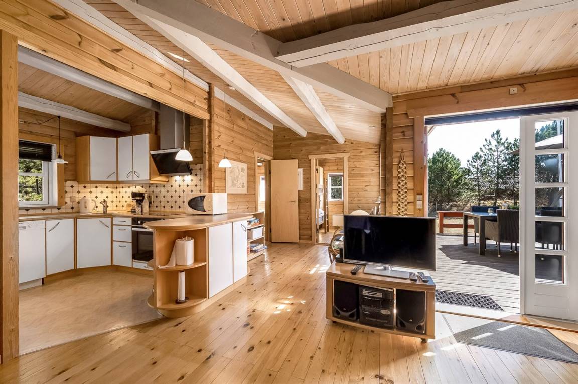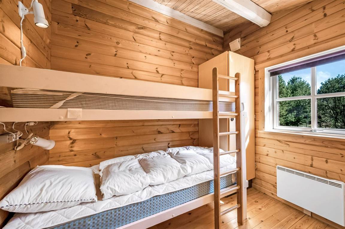 Dieses nette und gemütlich eingerichtete Ferienhaus liegt auf einem großen, von Büschen und Bäumen umgebenen und mit Heidekraut bewachsenen Naturgrundstück mit gutem Windschutz - nur wenige Minuten Gang vom kilometerlangen Sandstrand mit dem feinsten weißen Sand entfernt. Zum Haus gehören sowohl eine offene als auch eine überdachte Terrasse mit Gartenmöbeln. Auf dem Grundstück gibt es auch Sandkasten und Schaukel für die kleinen Feriengäste. Die geräumige Küche ist mit dem Ess-/Wohnzimmer kombiniert und u. a. mit Geschirrspüler, Mikrowelle, kleinem Tiefkühlgerät, Umluftofen und Herd mit Ceran-Feld ausgestattet. Das Ess-/Wohnzimmer, mit direktem Zutritt zu der offenen Terrasse, ist mit Kaminofen, TV mit digitalem Satellitenanschluss und Stereoanlage eingerichtet. Im Haus gibt es 3 Schlafzimmer; 2 mit Doppelbett und 1 mit Etagenbett. Badezimmer mit Fußbodenheizung und Duschnische. Ferner stehen kostenlose, kabellose Internetverbindung (eigener Computer muss mitgebracht werden), Waschmaschine, Wäschetrockner, Kinderbett sowie Kinderhochstuhl zur Verfügung. Es ist eine energiegerechte Wärmepumpe installiert. Ein schönes Ferienhaus an der Nordküste - die mit ihren Stränden, Dünen und der hübschen jütländischen Natur ein idealer Ausgangspunkt für gute Urlaubserlebnisse ist. Besuchen Sie Hvide Sande und sehen Sie die Schleuse, "Fiskeriets Hus" (das Haus der Fischerei) und den tätigen Fischereihafen. Nur eine Stunde Fahrt vom Haus entfernt finden Sie Legoland und Givskud Zoo.