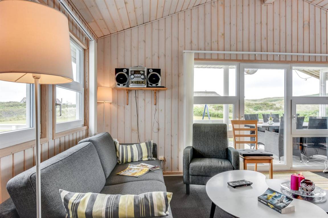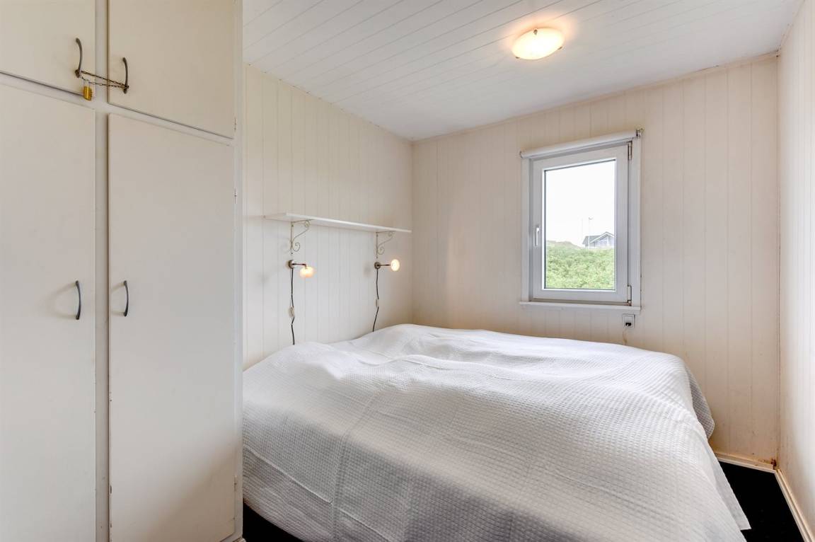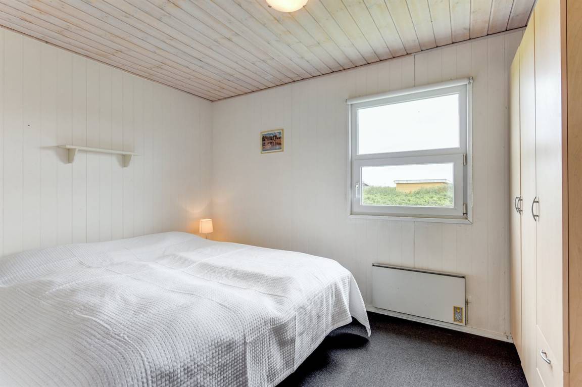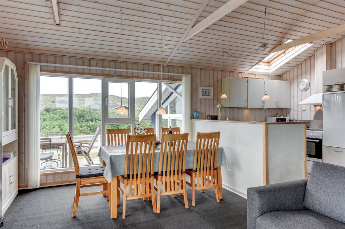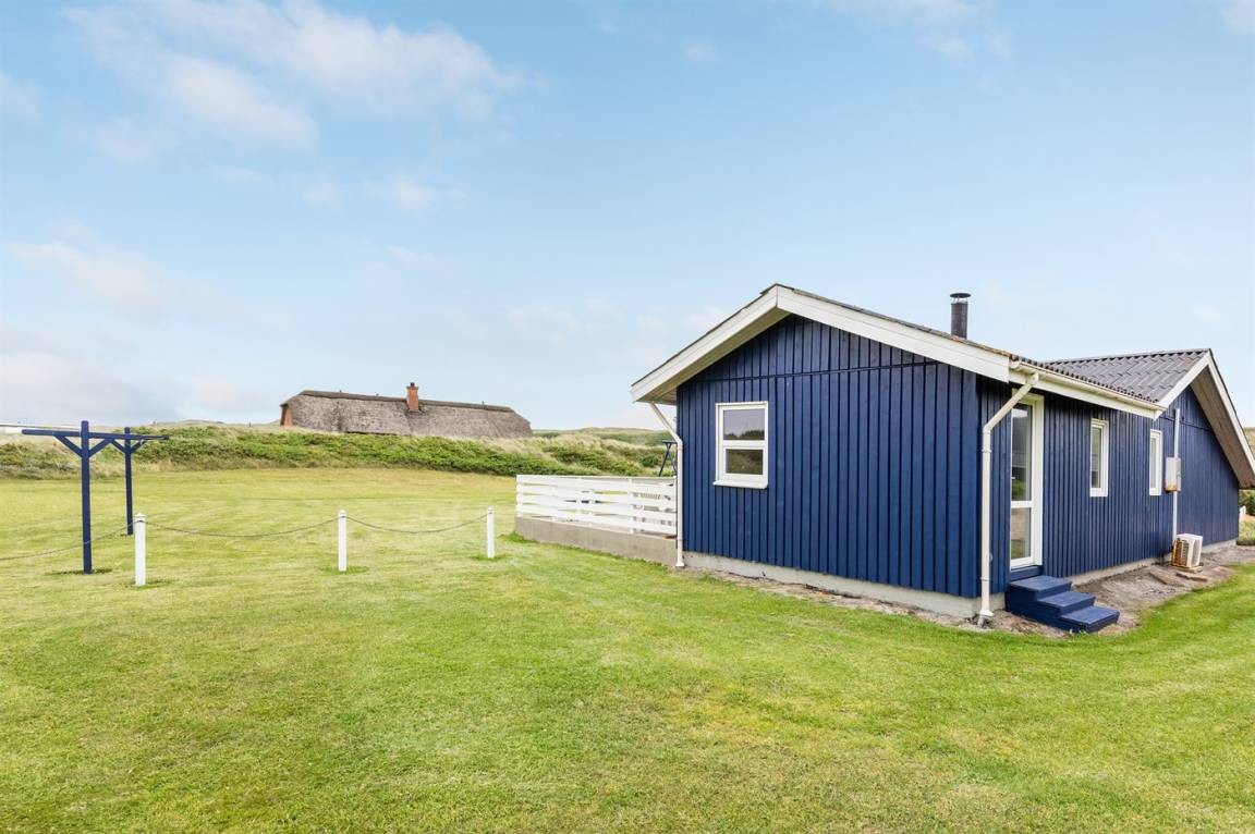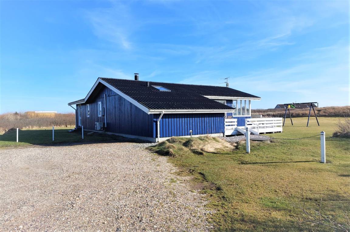 Auf einem großen Naturgrundstück nur 150 m von der Nordsee entfernt liegt dieses Ferienhaus aus Holz, 1975 gebaut, 2003 völlig renoviert und seitdem laufend gepflegt. Zum Haus gehören sowohl überdachte als auch offene, nach Süden gerichtete Terrasse mit Gartenmöbeln. Innen sind die Böden mit Teppich ausgelegt, jedoch PVC-Boden in der Küche. Die Wände und Decken sind mit hellem, rustikalem Holz verkleidet. Badezimmer mit Duschnische und Zutritt zu einem separaten Raum mit 2-Pers. Whirlpool und Zutritt zur Sauna. Die schöne Küche ist u. a. mit Mikrowelle, Umluftofen und Geschirrspüler ausgestattet. Das helle Wohnzimmer enthält Kaminofen, DVD-Spieler, TV mit digitalem Satellitenanschluss, Video sowie Stereoanlage mit CD-Spieler. Die Schlafplätze verteilen sich auf 2 Zimmer mit Doppelbett und 1 Zimmer mit 2 Einzelbetten. Ferner stehen kostenlose, kabellose Internetverbindung (Computer ist mitzubringen), Waschmaschine sowie Wäschetrockner zur Verfügung und es ist eine energiegerechte Wärmepumpe installiert. Für die kleinen Feriengäste gibt es Sandkasten und Schaukel auf dem Grundstück. Nicht weit vom Haus entfernt gibt es einen Put & Take Angelsee und ein Fahrradweg durch das Dünengebiet, der sich von Nymindegab bis nach Søndervig erstreckt. Ein schönes Ferienhaus mit einer guten Lage zu jeder Jahreszeit.
