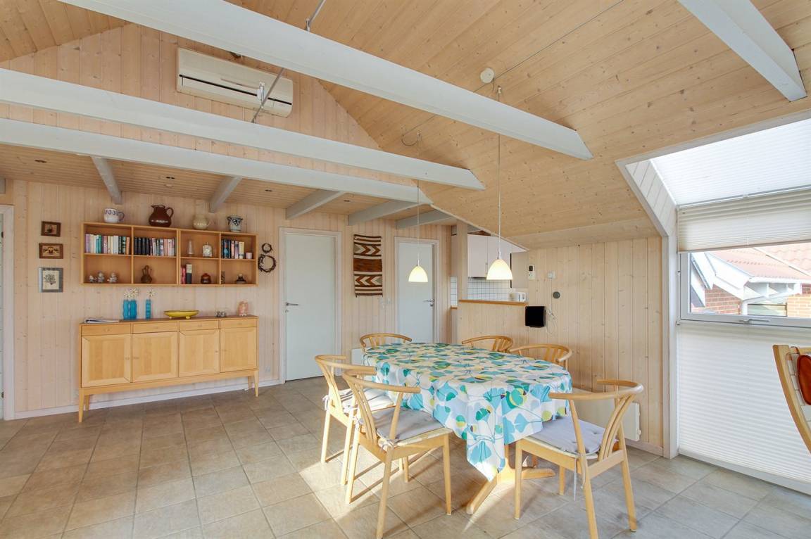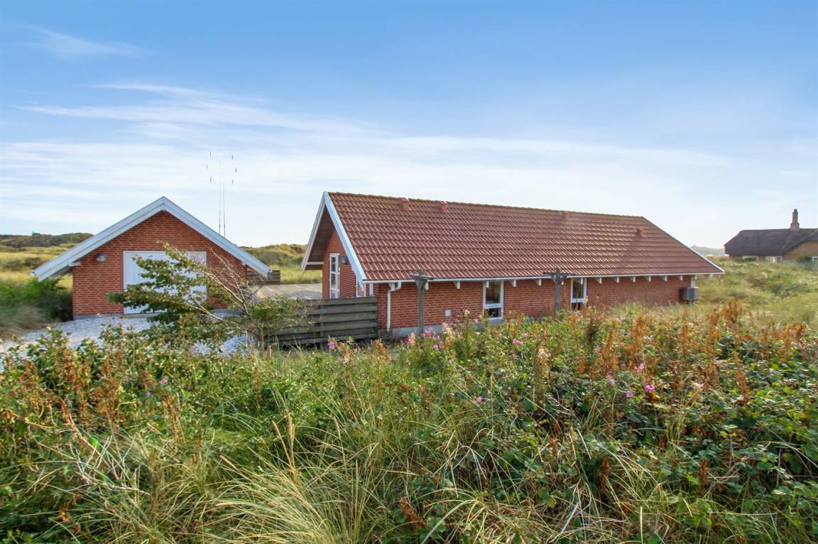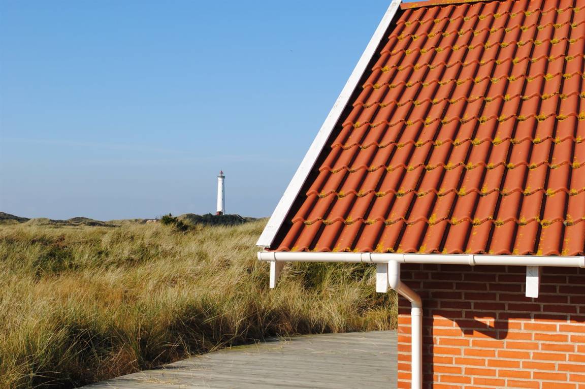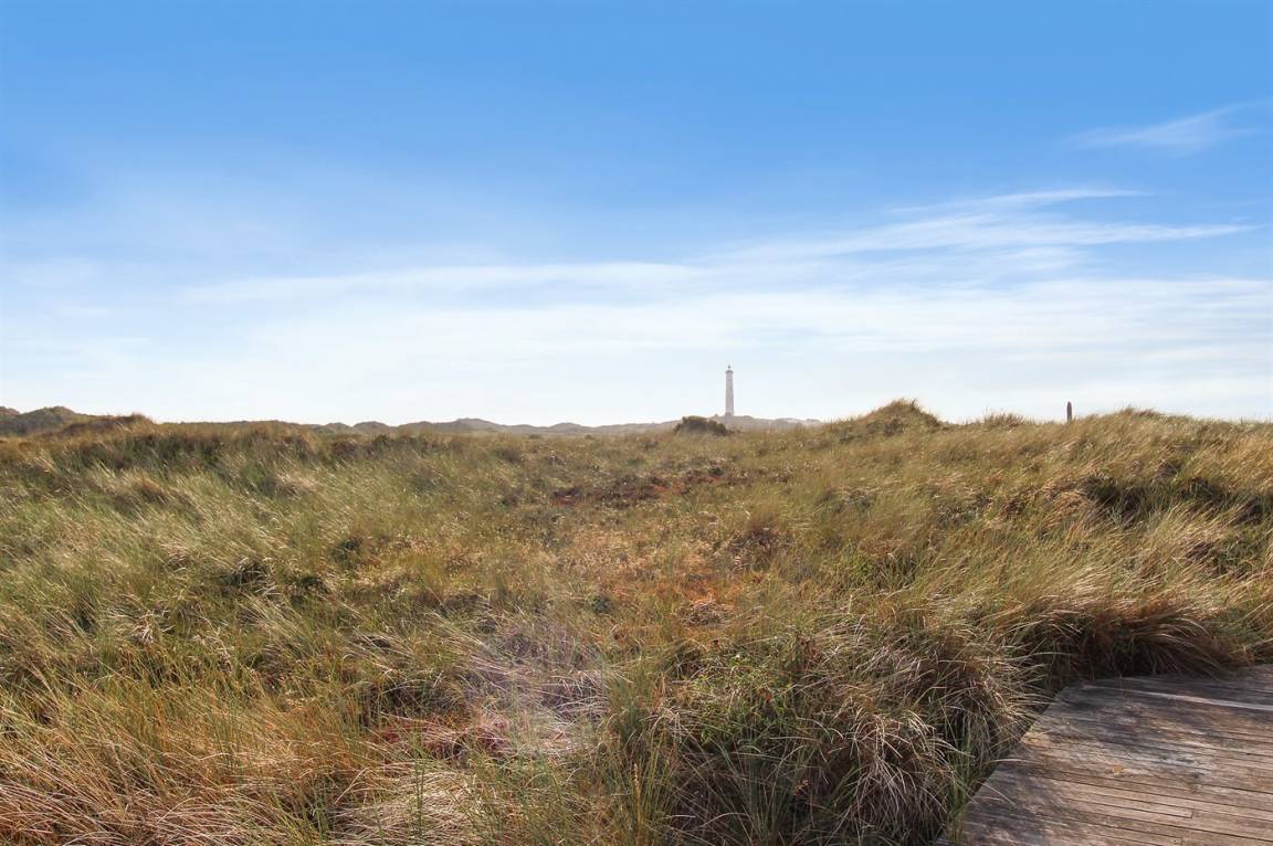 Ein gepflegtes Ferienhaus mit herrlichem Blick über die Dünen und auf den Leuchtturm von Nr. Lyngvig, sowohl vom Haus als auch von der Terrasse aus. Das Haus liegt am Rande eines Ferienhausgebietes, am Ende einer Sackgasse, auf einem hügeligen Grundstück, das an eine offene Dünenlandschaft grenzt.