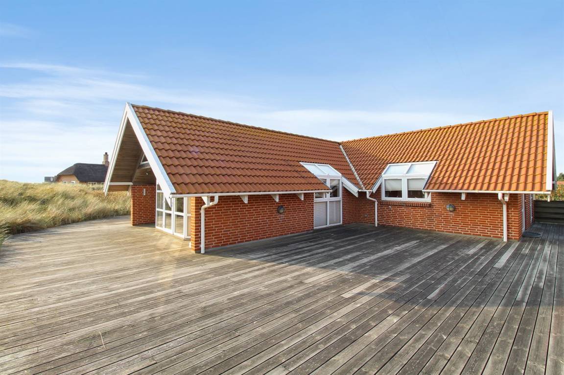 DraußenDie Ferienunterkunft liegt auf einem 1200 m² großen Dünengrundstück. Die Entfernung zum Meer beträgt 800 m. Die nächste Einkaufsmöglichkeit liegt 3000 m entfernt. Es steht ein 100 m² Terrassenareal zur Verfügung. Geräteraum.Es steht eine Garage zur Verfügung. Parkplatz auf dem Grundstück.