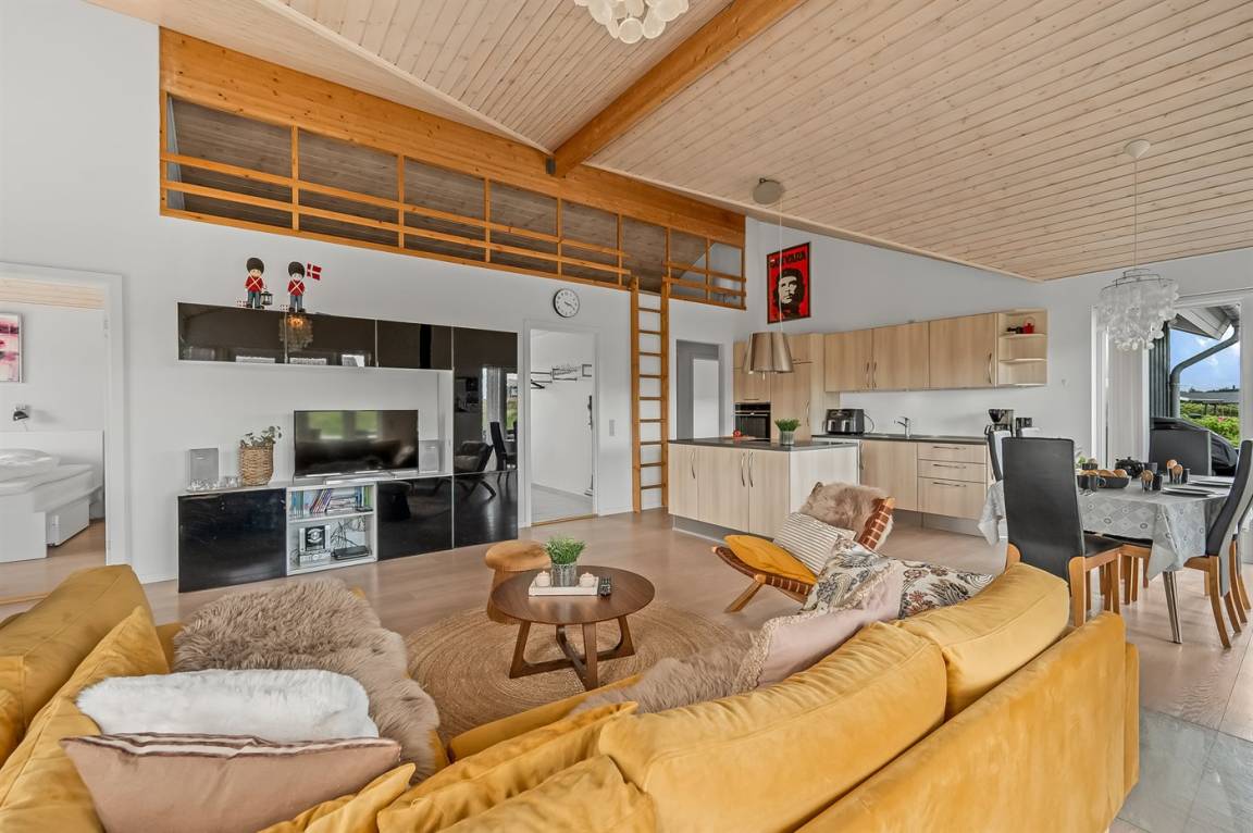 DraußenDie Ferienunterkunft liegt auf einem 1202 m² großen Naturgrundstück. Die Entfernung zum Meer beträgt 550 m. Die Entfernung zum Fjord beträgt 1050 m. Die nächste Einkaufsmöglichkeit liegt 900 m entfernt. Es steht ein 45 m² Terrassenareal zur Verfügung. Außerdem gibt es 20 m² überdachte Terrasse. Außensauna. Es steht ein Grill zur Verfügung. Parkplatz auf dem Grundstück.