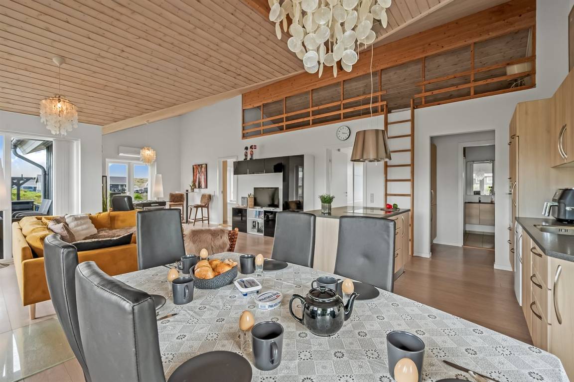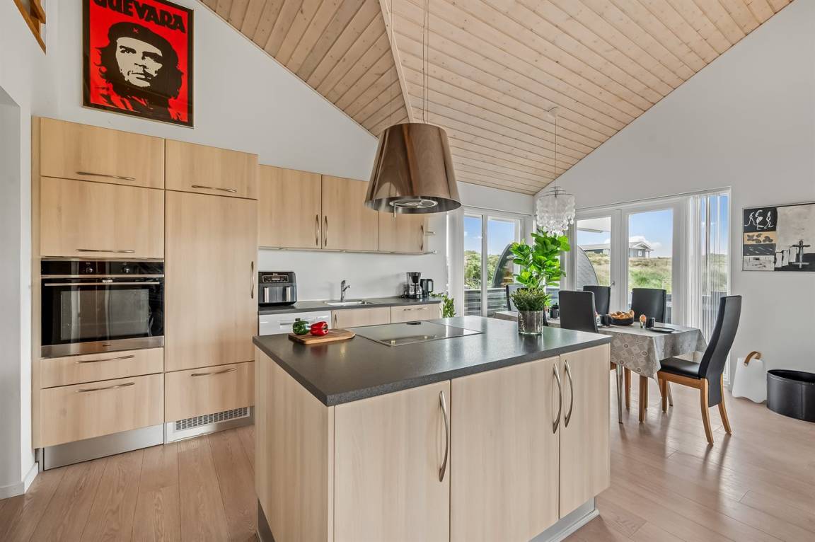 Im Ferienhaus selbst erwartet Sie eine große helle Wohnküche, in der man sich entspannen, gemeinsam Zeit verbringen und Mahlzeiten zubereiten sowie genießen kann. Die Küche ist komplett mit allem ausgestattet, was man zum Zubereiten von leckeren Mahlzeiten braucht.