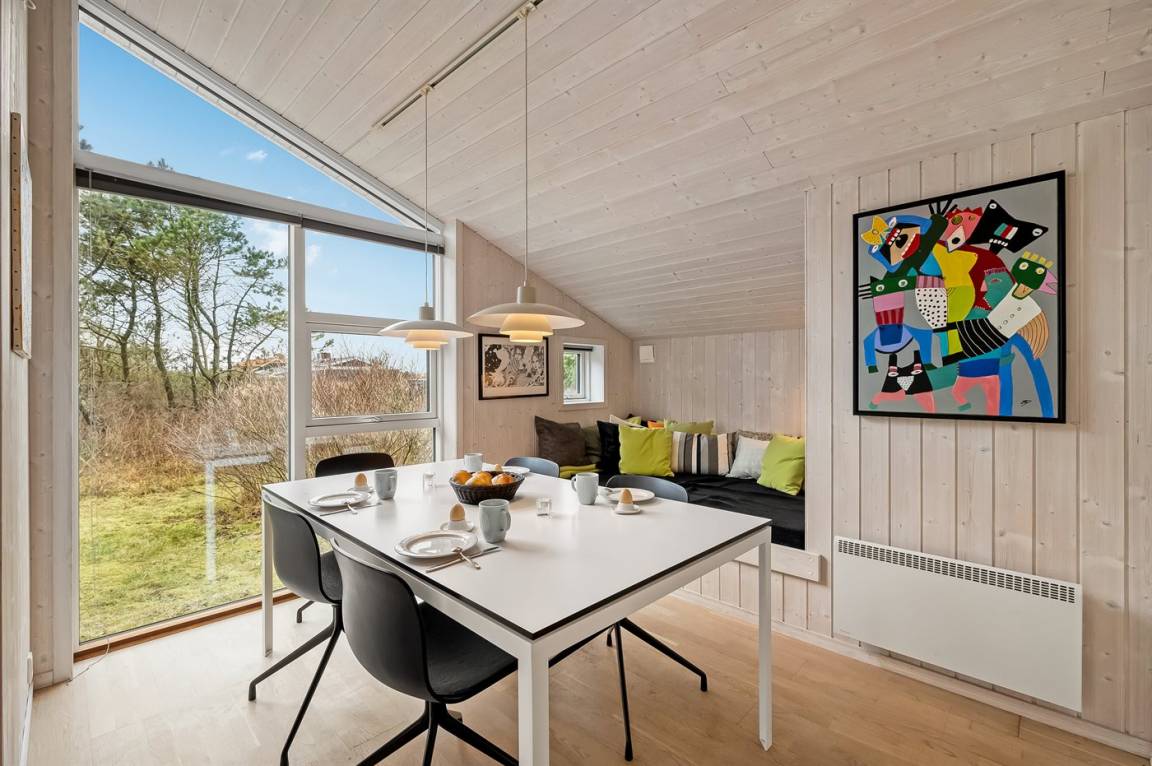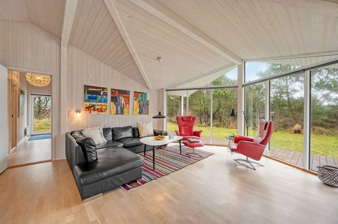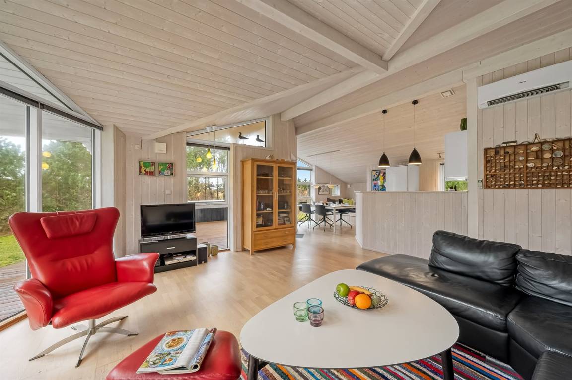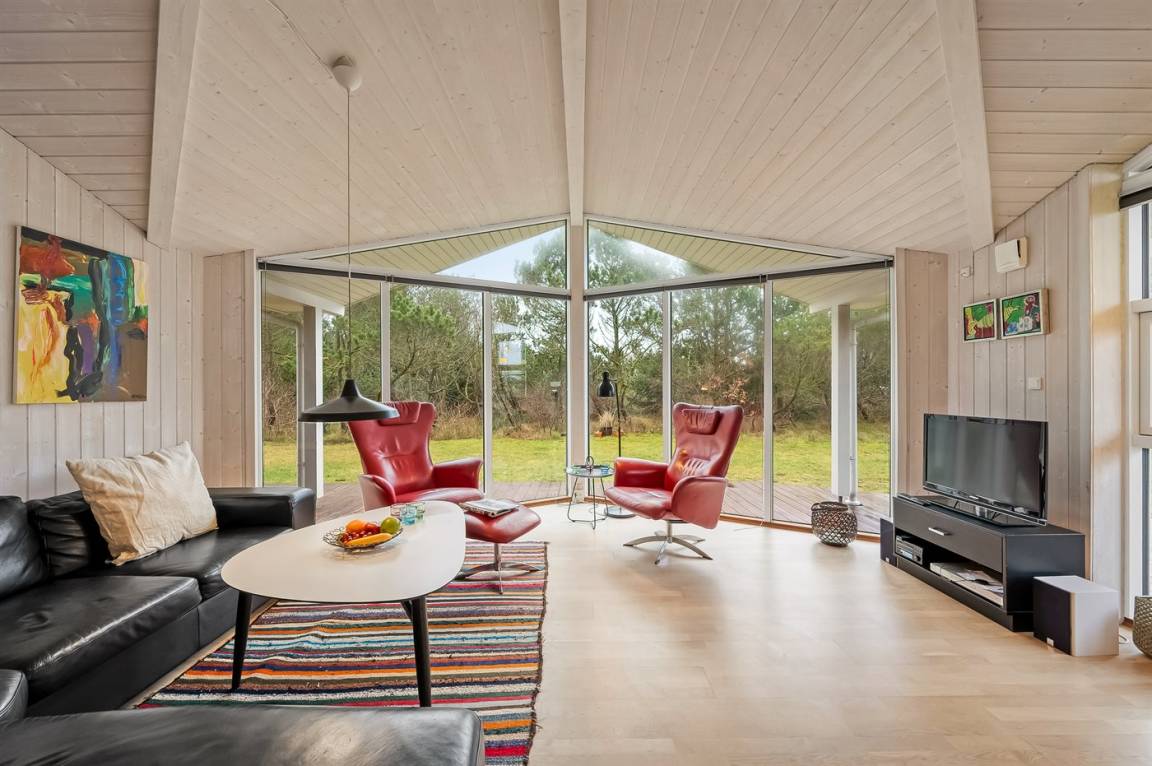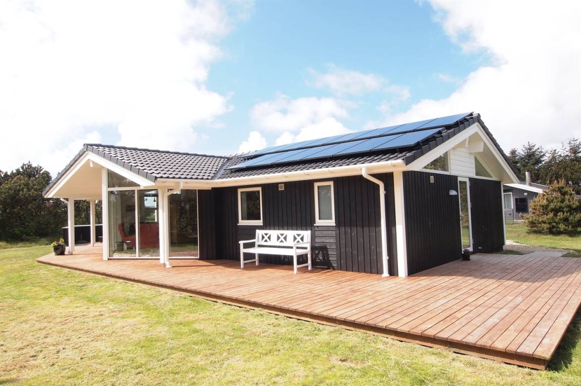 Schönes, neu gebautes Ferienhaus aus Holz. Das Haus ist hochisoliert und wird von einer energieinsparender Wärmepumpe und Sonnenzellen aufgeheizt. Der Aufenthaltsraum hat große Fenster gegen Süden. Beim Eßplatz gibt es ein Alkoven, wo die Kinder spielen können.