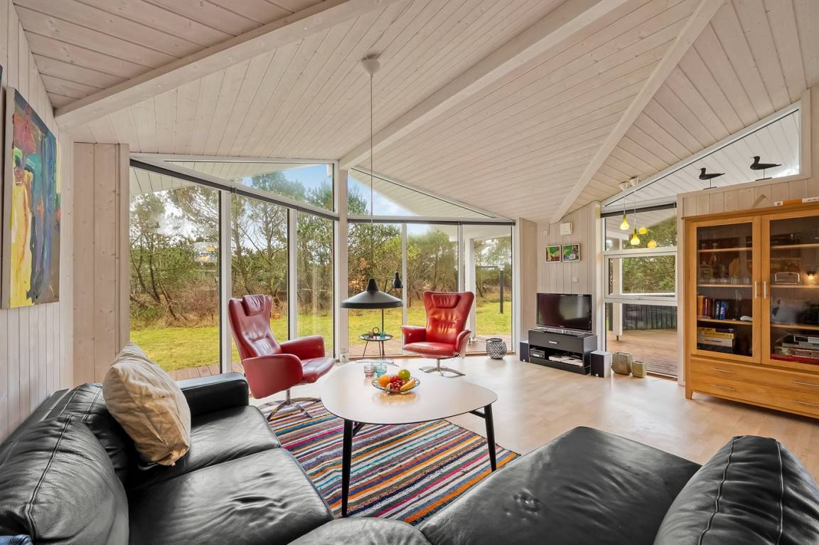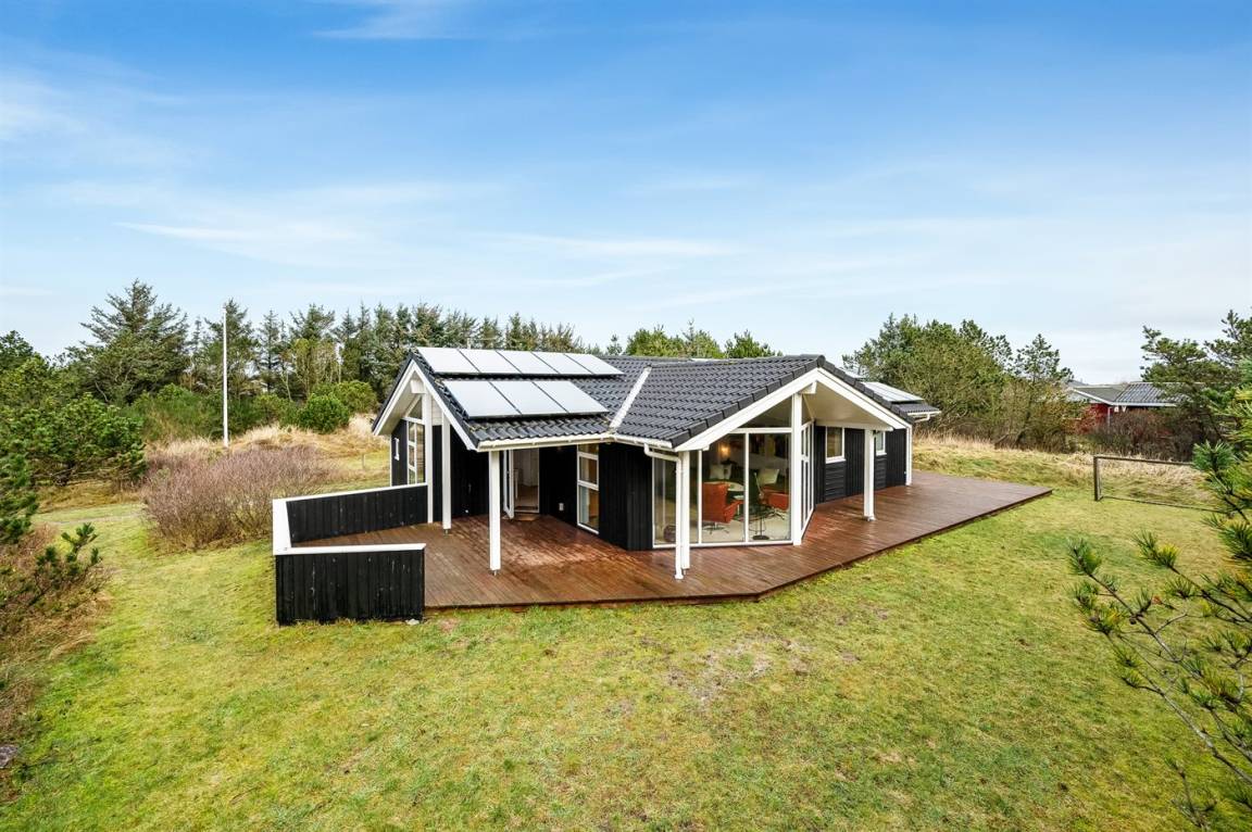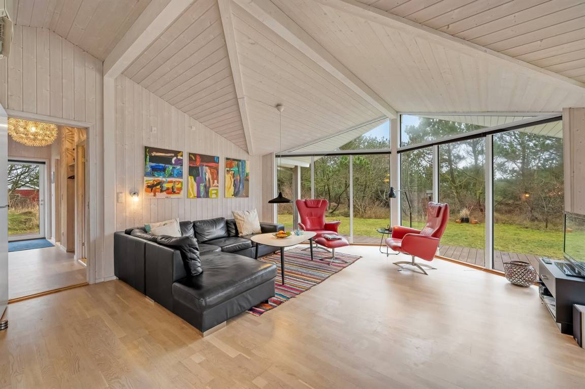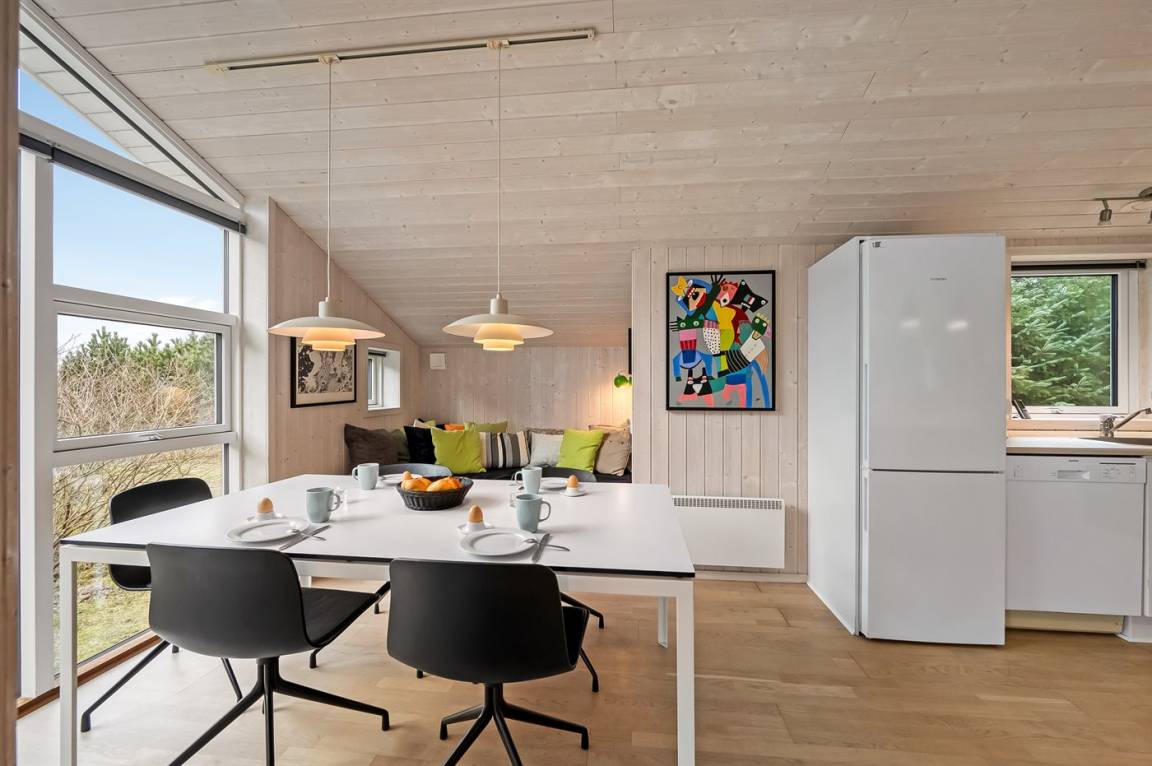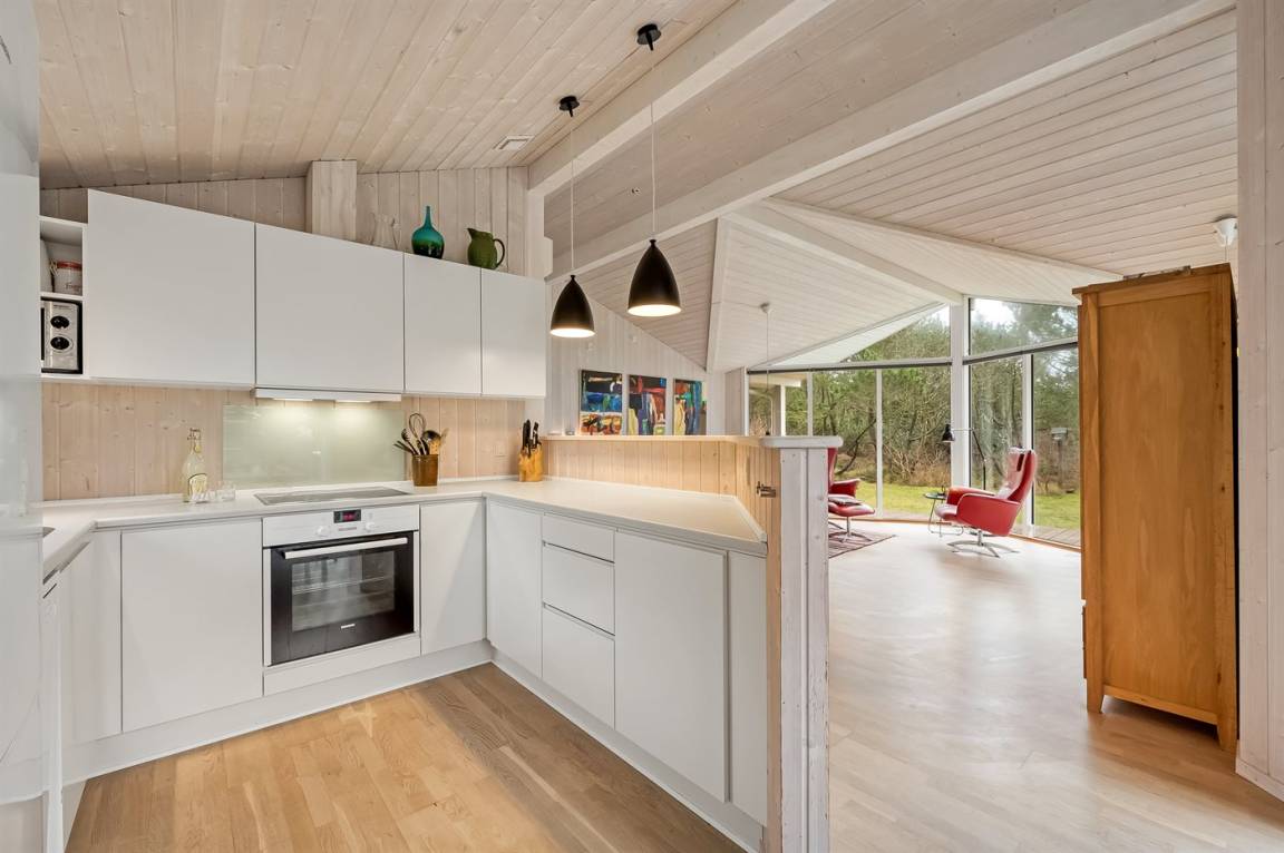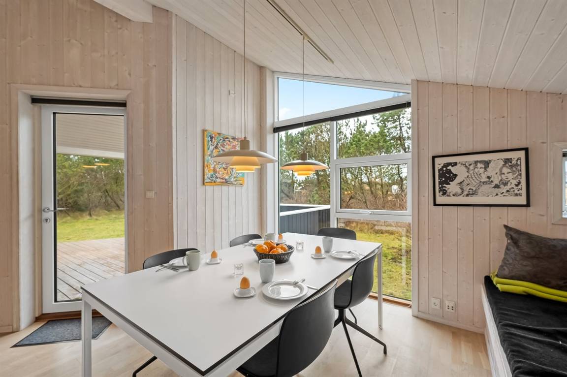 Schönes, neu gebautes Ferienhaus aus Holz. Das Haus ist hochisoliert und wird von einer energieinsparender Wärmepumpe und Sonnenzellen aufgeheizt. Der Aufenthaltsraum hat große Fenster gegen Süden. Beim Eßplatz gibt es ein Alkoven, wo die Kinder spielen können.