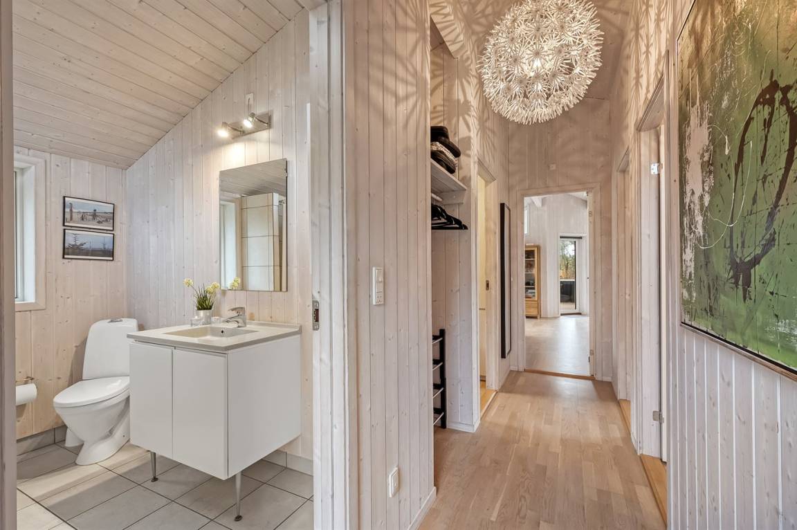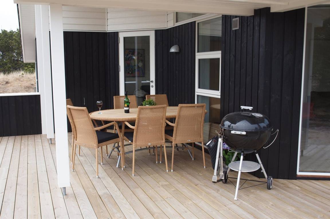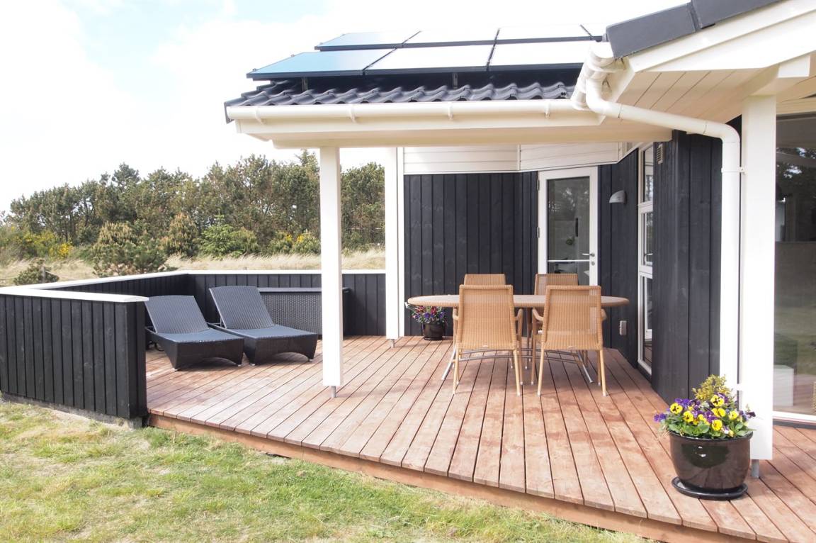 DraußenDie Ferienunterkunft liegt auf einem 1200 m² großen Naturgrundstück. Die Entfernung zum Meer beträgt 900 m. Die Entfernung zum Fjord beträgt 500 m. Die nächste Einkaufsmöglichkeit liegt 300 m entfernt. Es steht ein 56 m² Terrassenareal zur Verfügung. Außerdem gibt es 11 m² überdachte Terrasse. Geräteraum. Schaukel. Fußballtor. Es steht ein Grill zur Verfügung. Parkplatz auf dem Grundstück.