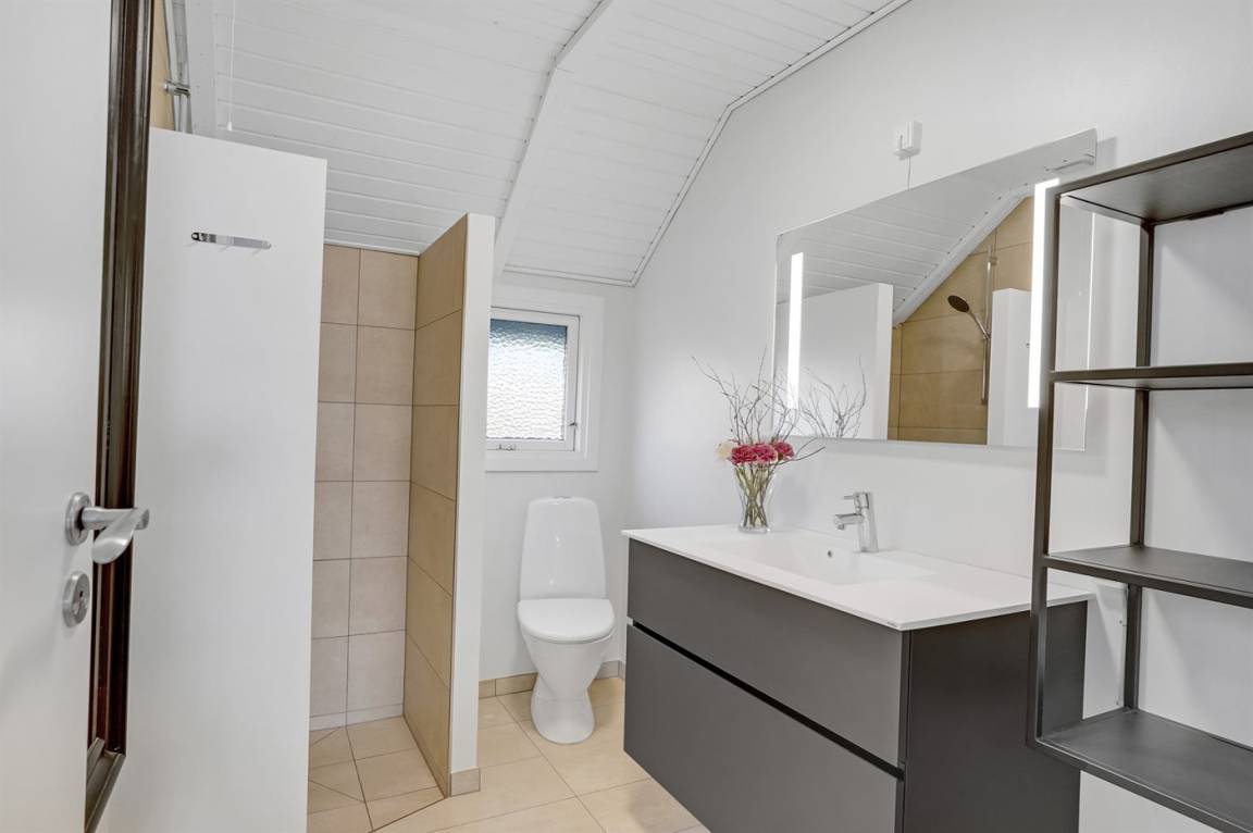 DraußenDie Ferienunterkunft liegt auf einem 3100 m² großen Naturgrundstück. Die Entfernung zum Meer beträgt 615 m. Die Entfernung zum Fjord beträgt 495 m. Die nächste Einkaufsmöglichkeit liegt 2200 m entfernt. Es steht ein 50 m² Terrassenareal zur Verfügung. Außerdem gibt es 20 m² überdachte Terrasse. Zutritt zu einem Wintergarten. Geräteraum. Schaukel. Parkplatz auf dem Grundstück.