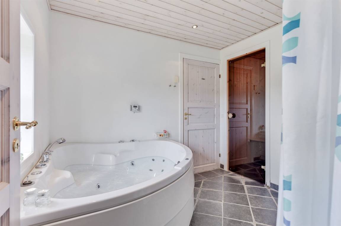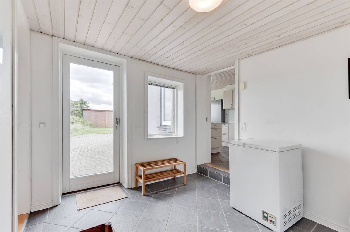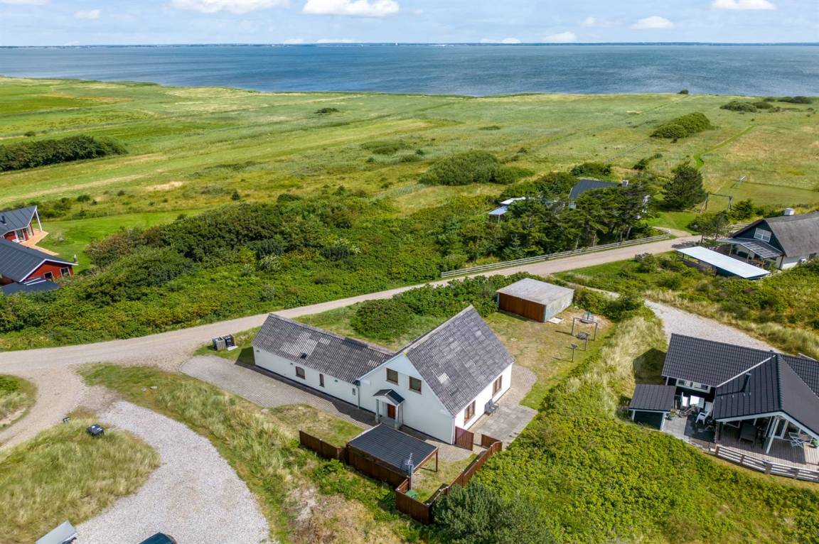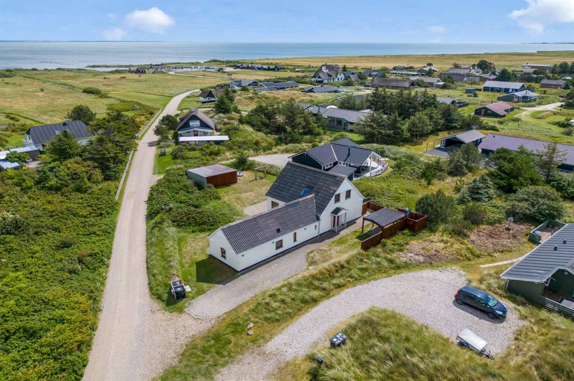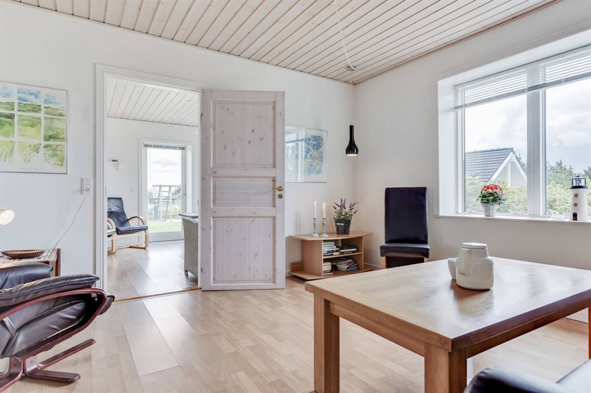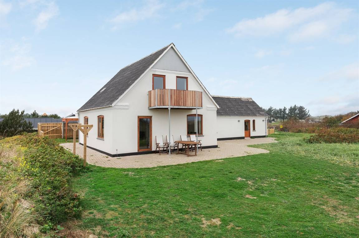 Das Haus ist aus Stein in 2 Etagen gebaut und 2007 total renoviert. Es liegt auf einem schönen Naturgrundstück, wo es von sowohl dem Grundstück als auch vom großen Terrassenareal einen schönen Blick über Ringkøbing Fjord gibt. Innen gibt es überall beheizbare Klinkerböden, jedoch Holzböden im Wohnzimmer und in den Schlafzimmern. 2 schöne Badezimmer mit Fußbodenheizung und Duschnische. Im großen Badezimmer gibt es darüber hinaus einen 2-Pers. -Whirlpool und direkten Zugang zur Sauna (maximale Temperatur 60-70 Grad). Großer Flur mit Waschmaschine, Wäschetrockner und viel Platz am Tisch, die Kleider zu legen. Schöne, große Wohnküche mit guten Möbeln und u. a. Herd mit Ceran-Feld und Umluftofen, Mikrowelle, Geschirrspüler und Tiefkühlgerät. Helles und freundliches Wohnzimmer mit Doppelschlafcouch, Sofatisch und ein paar Stühlen, eine gute Stelle für Gemütlichkeit und Beisammensein. Schönes Obergeschoss mit 3 große Schlafzimmer, alle mit Doppelbett. Vom einen Schlafzimmer gibt es Ausgang zu einem kleinen Balkon, wo Sie den schönen Blick über Ringkøbing Fjord genießen können. Im Obergeschoss gibt es weiterhin ein paar Stühle, wo Sie sich entspannen oder ein gutes Buch lesen können. Für die kleinen Feriengäste sind Kinderbett und Kinderhochstuhl vorhanden. Kostenlose, kabellose Internetverbindung (eigener Computer ist mitzubringen).