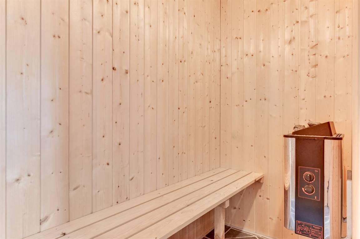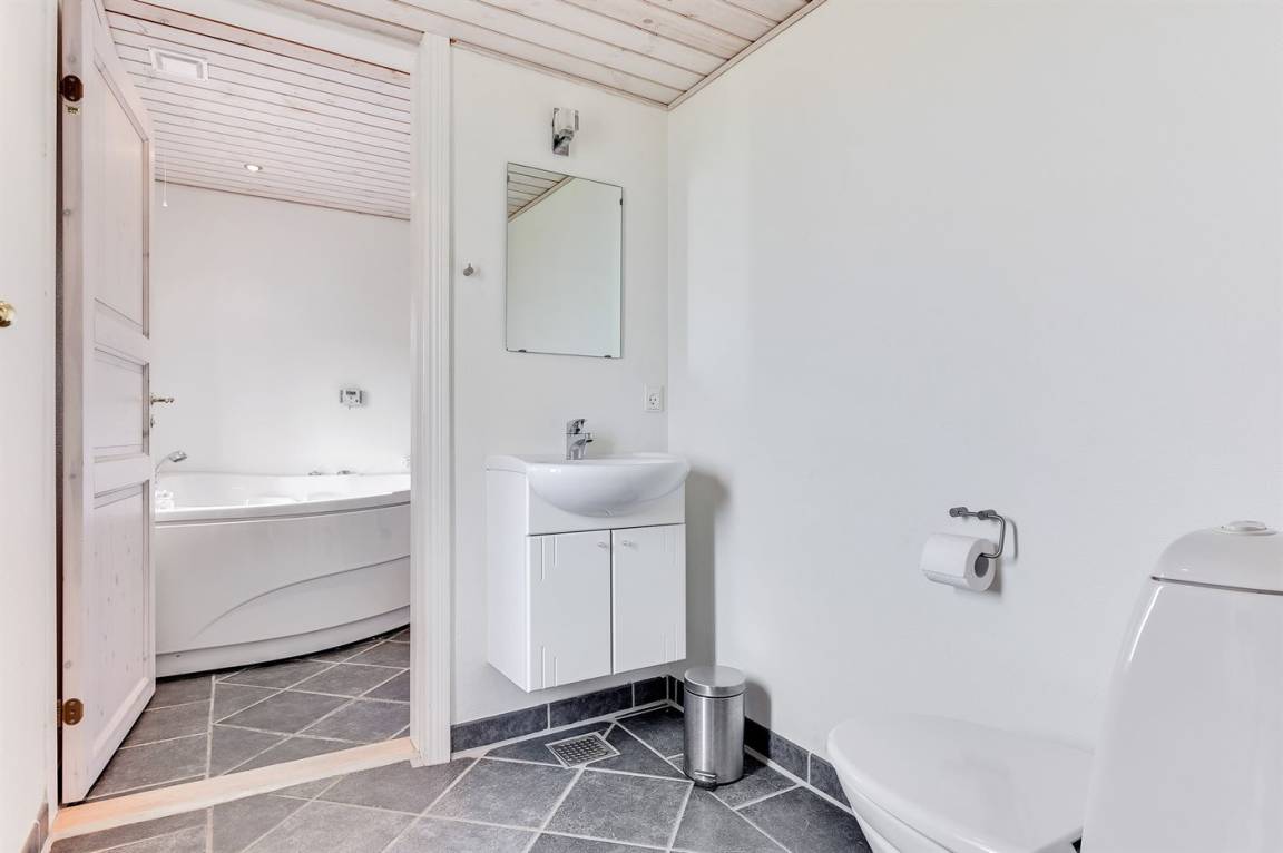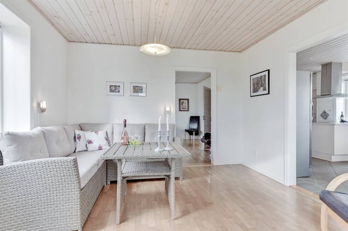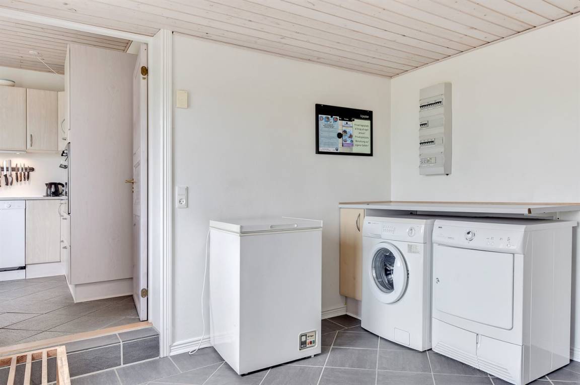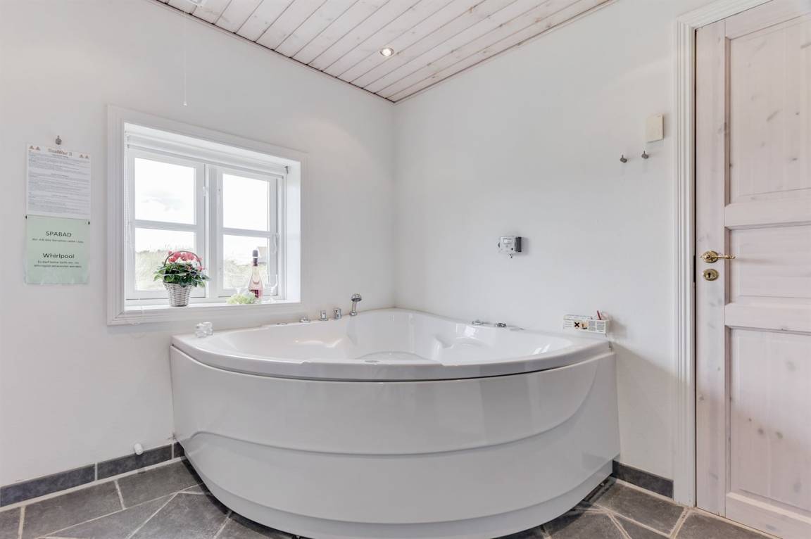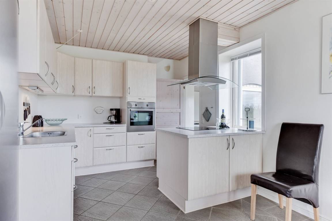 Das Haus ist aus Stein in 2 Etagen gebaut und 2007 total renoviert. Es liegt auf einem schönen Naturgrundstück, wo es von sowohl dem Grundstück als auch vom großen Terrassenareal einen schönen Blick über Ringkøbing Fjord gibt. Innen gibt es überall beheizbare Klinkerböden, jedoch Holzböden im Wohnzimmer und in den Schlafzimmern. 2 schöne Badezimmer mit Fußbodenheizung und Duschnische. Im großen Badezimmer gibt es darüber hinaus einen 2-Pers. -Whirlpool und direkten Zugang zur Sauna (maximale Temperatur 60-70 Grad). Großer Flur mit Waschmaschine, Wäschetrockner und viel Platz am Tisch, die Kleider zu legen. Schöne, große Wohnküche mit guten Möbeln und u. a. Herd mit Ceran-Feld und Umluftofen, Mikrowelle, Geschirrspüler und Tiefkühlgerät. Helles und freundliches Wohnzimmer mit Doppelschlafcouch, Sofatisch und ein paar Stühlen, eine gute Stelle für Gemütlichkeit und Beisammensein. Schönes Obergeschoss mit 3 große Schlafzimmer, alle mit Doppelbett. Vom einen Schlafzimmer gibt es Ausgang zu einem kleinen Balkon, wo Sie den schönen Blick über Ringkøbing Fjord genießen können. Im Obergeschoss gibt es weiterhin ein paar Stühle, wo Sie sich entspannen oder ein gutes Buch lesen können. Für die kleinen Feriengäste sind Kinderbett und Kinderhochstuhl vorhanden. Kostenlose, kabellose Internetverbindung (eigener Computer ist mitzubringen).