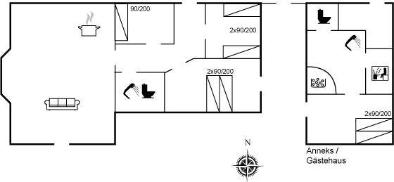 MultimedienIn der Ferienunterkunft gibt es 2 Fernseher. Fernsehen via Streaming. 2 DVD-Players. Radio. Mindestens 4 dänische Fernsehsender. Mindestens 4 deutsche Fernsehsender. Es steht kabellose Internetverbindung zur Verfügung.