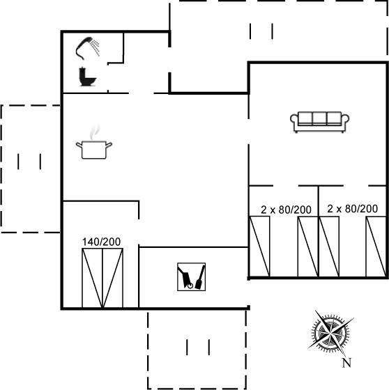 MultimedienIn der Ferienunterkunft gibt es einen Fernseher. Stereoanlage. CD-Player. Mindestens 4 dänische Fernsehsender. Mindestens 4 deutsche Fernsehsender. Es steht kabellose Internetverbindung zur Verfügung.