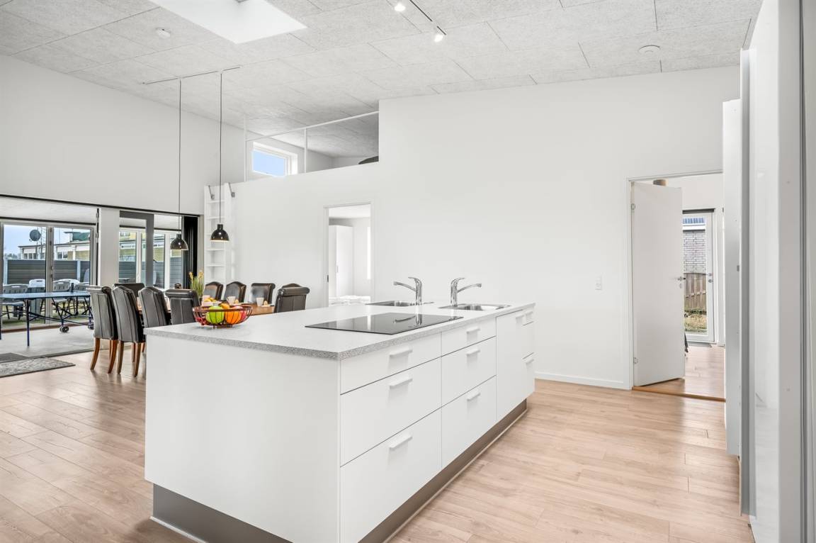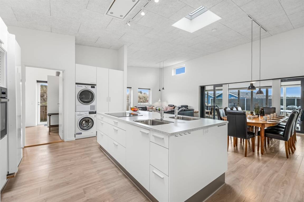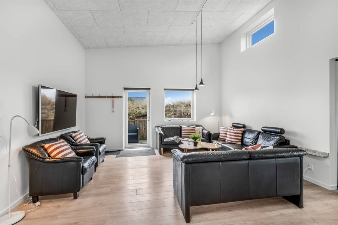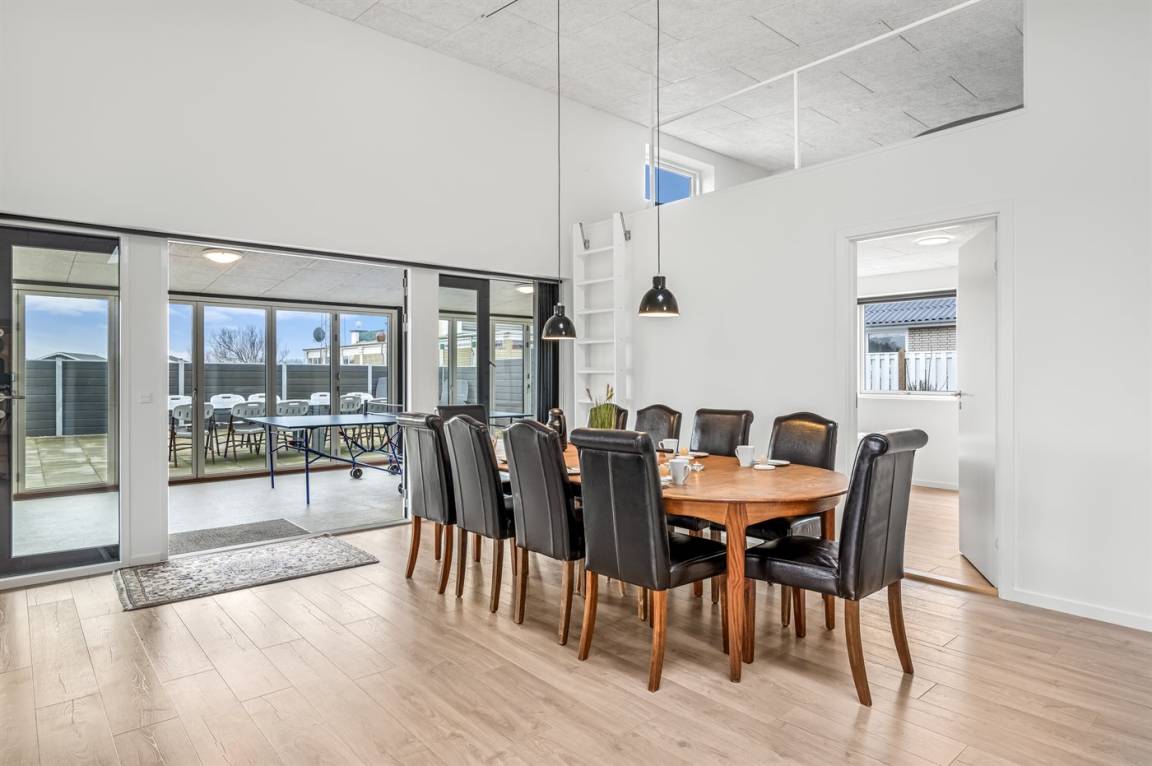 Das Ferienhaus bietet Platz für 10 Personen und einen Hund, ideal für Gemeinschaft und Gemütlichkeit. Es ist gut gestaltet mit großen Fensterfronten, die Licht und Leben in die Räume des Hauses bringen. Das Haus verfügt über eine offene Terrasse - ebenfalls mit viel Platz, um die Sonne zu genießen, während die Kinder Sandburgen im Sandkasten des Ferienhauses bauen. In den kälteren Monaten bietet der Wintergarten mit seinen großen Fenstern ein Gefühl von draußen zu sein. Am Fjord kannst du baden oder mit den Kindern Krebse fangen. Hier besteht die Möglichkeit für einen schönen Urlaub an der Westküste.