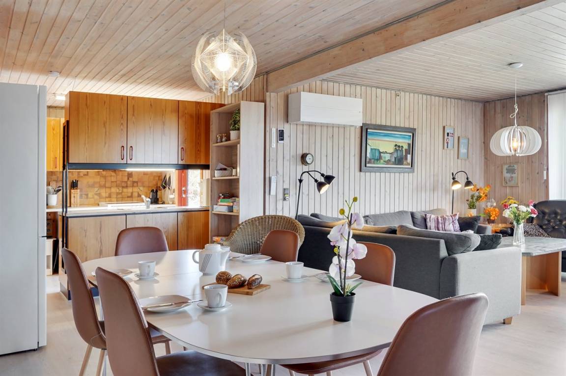 Das Ferienhaus eignet sich für 5 Personen sowie 1 Kleinkind bis zu 3 Jahren. Die Ferienunterkunft hat eine Wohnfläche von 80 m² und wurde 1983 gebaut. 2010 wurde die Ferienunterkunft teilweise renoviert. Haustiere dürfen nicht mitgebracht werden. Die Ferienunterkunft ist mit energiesparender Wärmepumpe ausgestattet. Die Ferienunterkunft ist mit Waschmaschine ausgestattet. Tiefkühlmöglichkeit mit 30 Liter Nutzinhalt. Es gibt außerdem einen Kaminofen. Für die jüngsten Feriengäste ist 1 Kinderhochstuhl vorhanden.