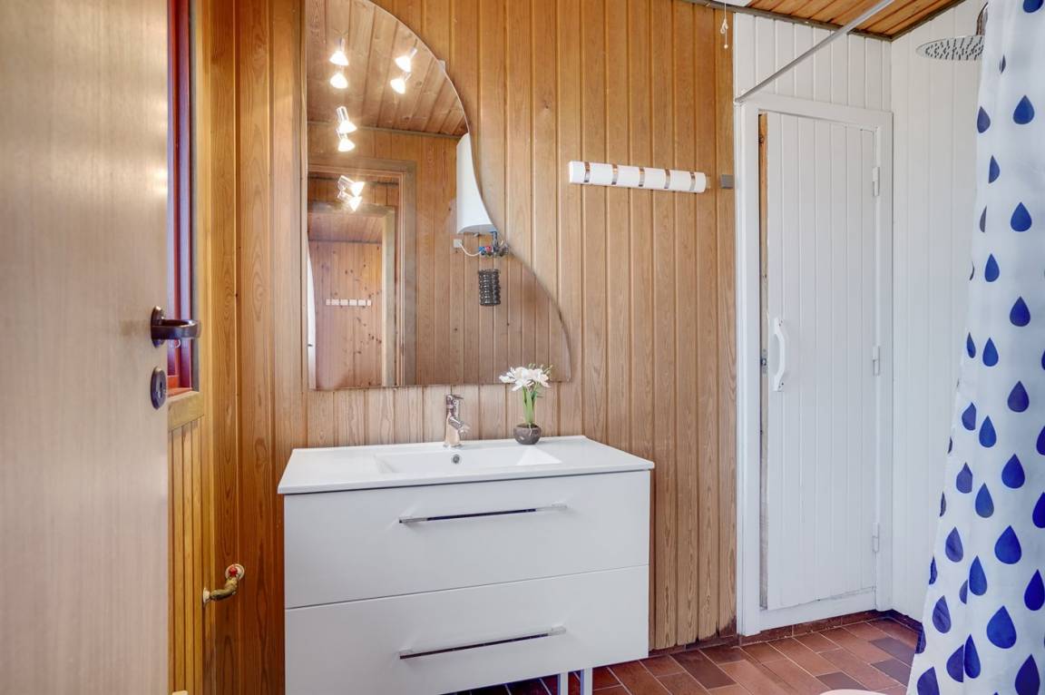 DraußenDie Ferienunterkunft liegt auf einem 1200 m² großen Naturgrundstück. Die Entfernung zum Meer beträgt 750 m. Die nächste Einkaufsmöglichkeit liegt 700 m entfernt. Es steht ein 35 m² Terrassenareal zur Verfügung. Außerdem gibt es 15 m² überdachte Terrasse. Geräteraum. Schaukel. Sandkasten. Parkplatz auf dem Grundstück.