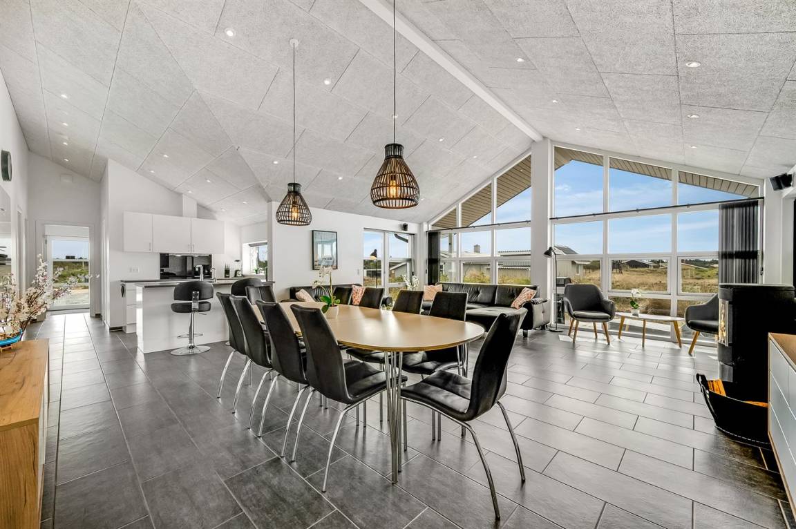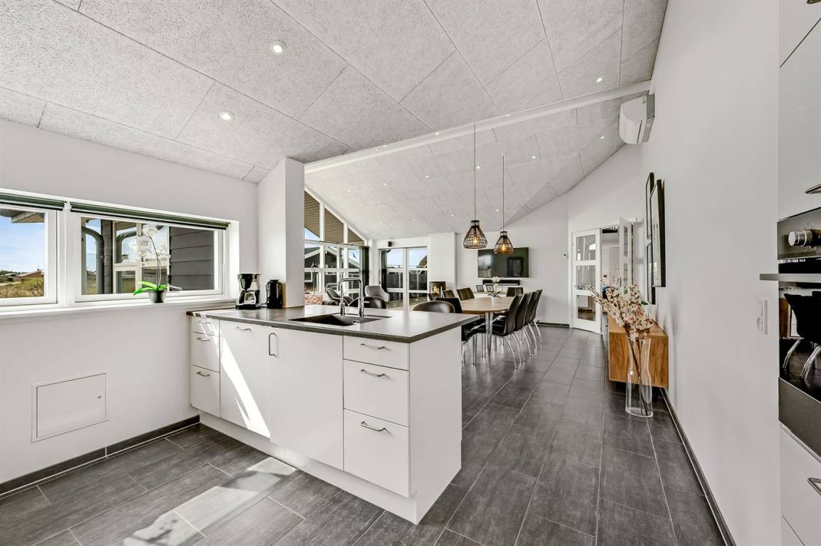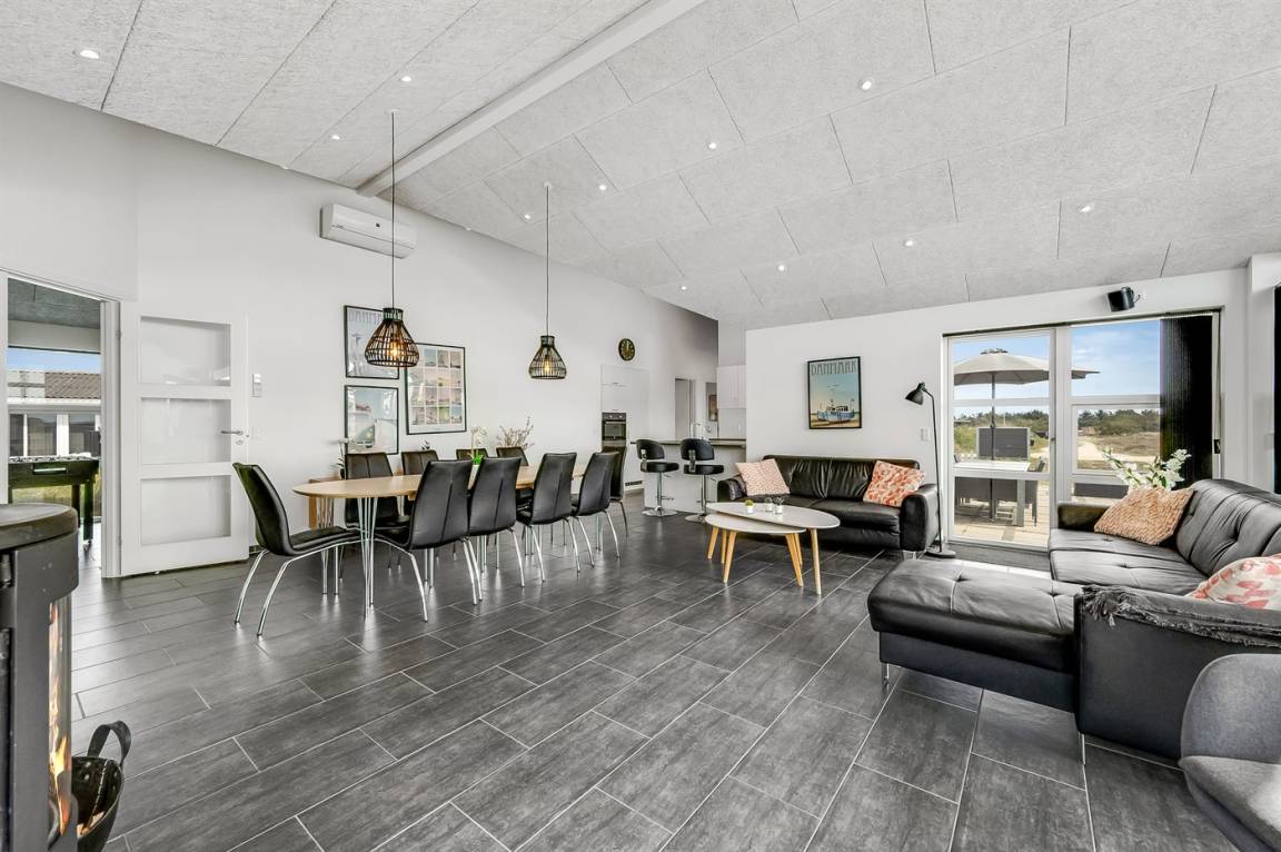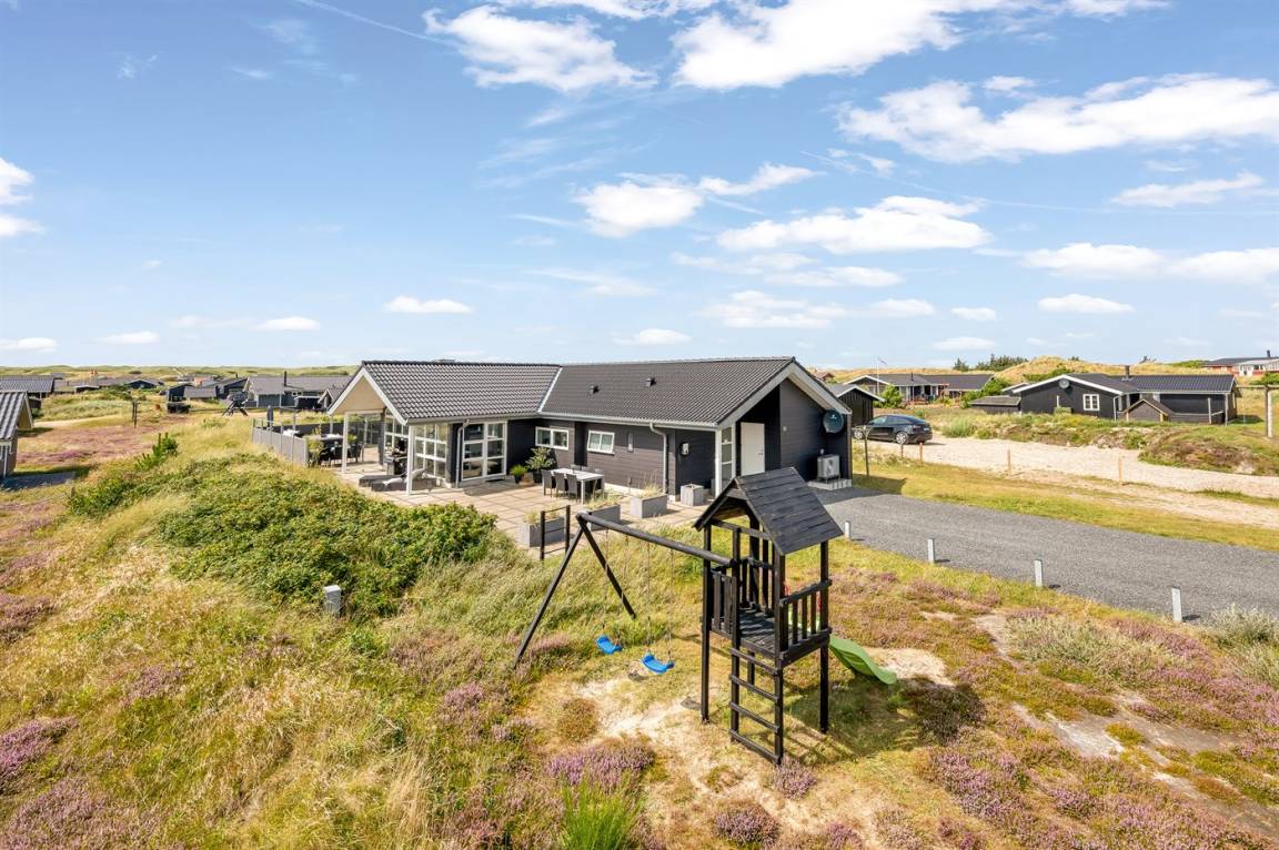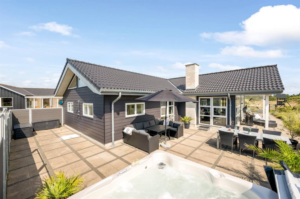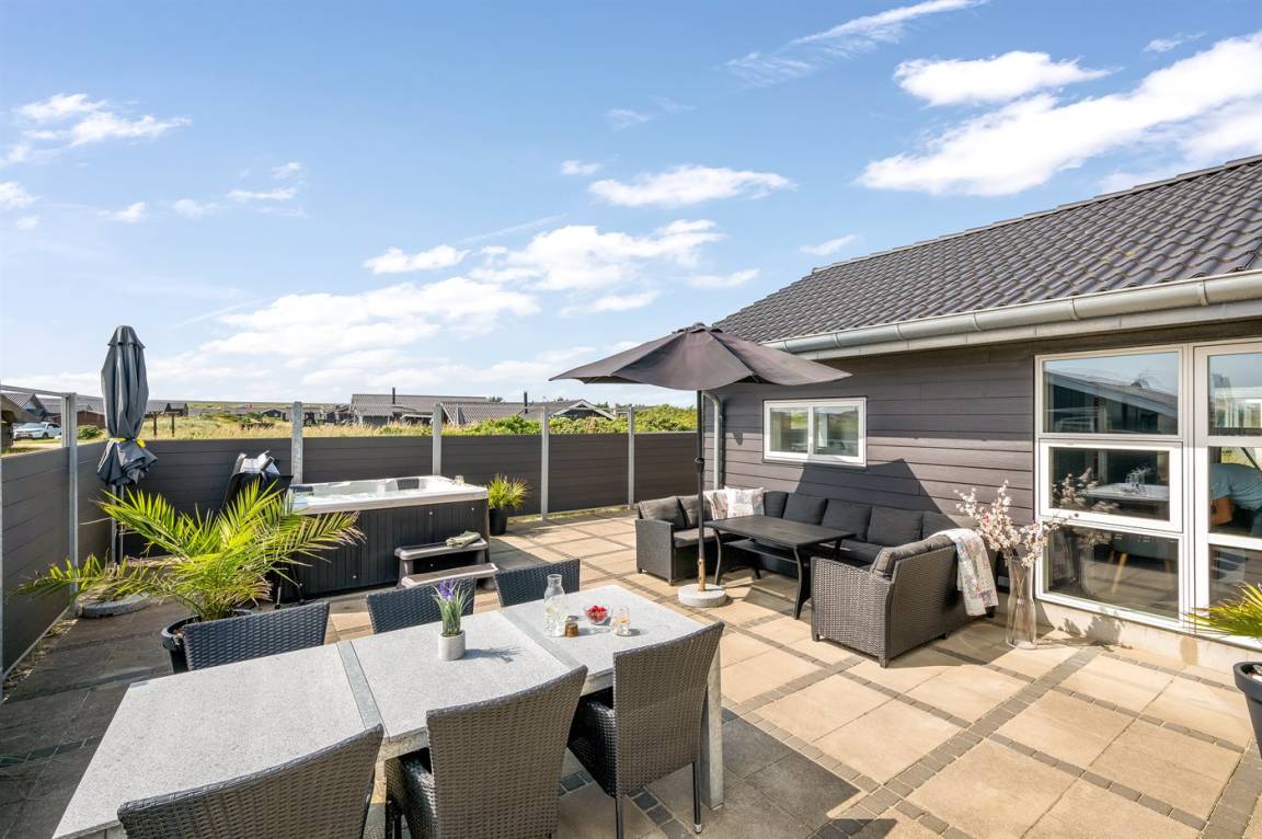 Ein herrliches, neu erbautes Ferienhaus mit einer zentralen Lage in Bjerregaard. Hier können Sie es sich gemütlich machen und gleichzeitig den Luxus genießen, den nur ein neu erbautes Ferienhaus anzubieten hat. Im Hobbyraum können sich die Kinder hinter geschlossenen Türen mit einem Spiel Tischfußball Vergnügen, während es sich die Erwachsenen im schönen Wohnzimmer mit einem Glas Wein gemütlich machen. Das Haus liegt nicht weit von der Nordsee entfernt – und hat diese ganze besondere Atmosphäre – die man nur in einem Ferienhaus, das dicht an der Küste liegt spürt. Für diejenigen, die den aktiven Urlaub bevorzugen gibt es gute Rad- und Wanderwege z. B. kann man von Bjerregard aus entweder zu Fuß oder mit dem Rad entlang der Landzunge Holmsland Klit, auf sich durch Dünen und Ferienhausgebiete schlängelnde Wege, bis nach Söndervig gelangen.