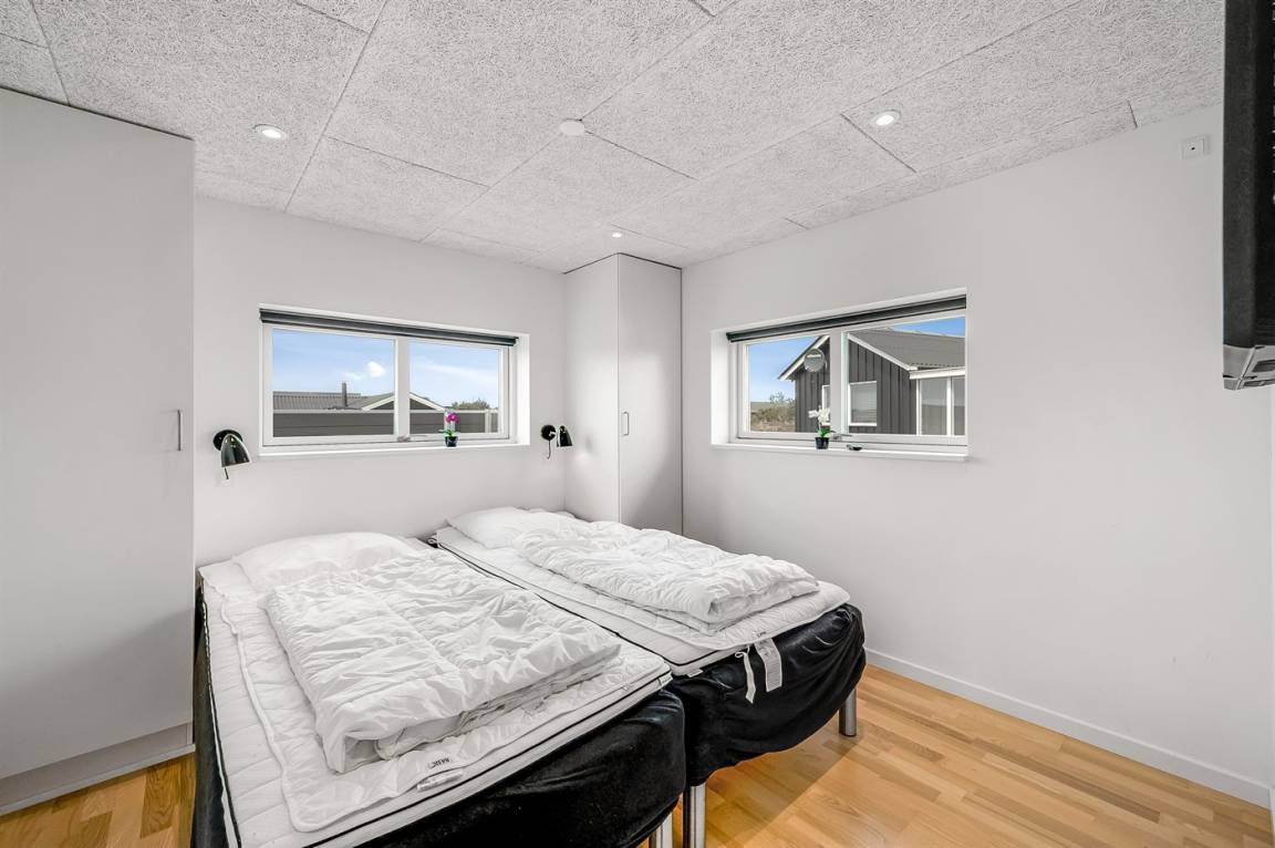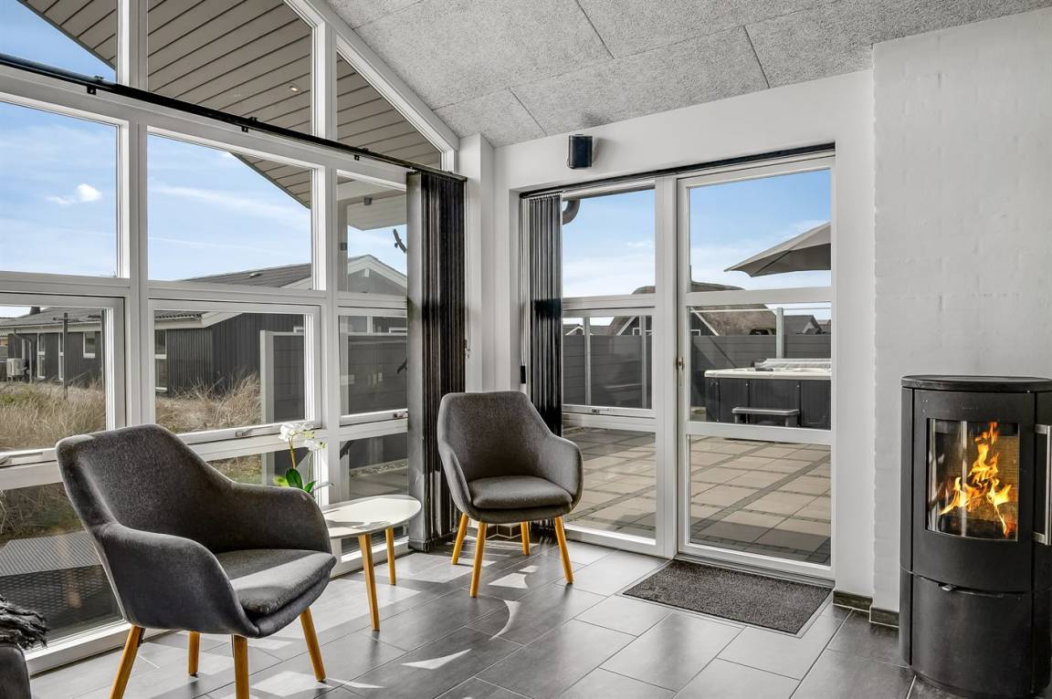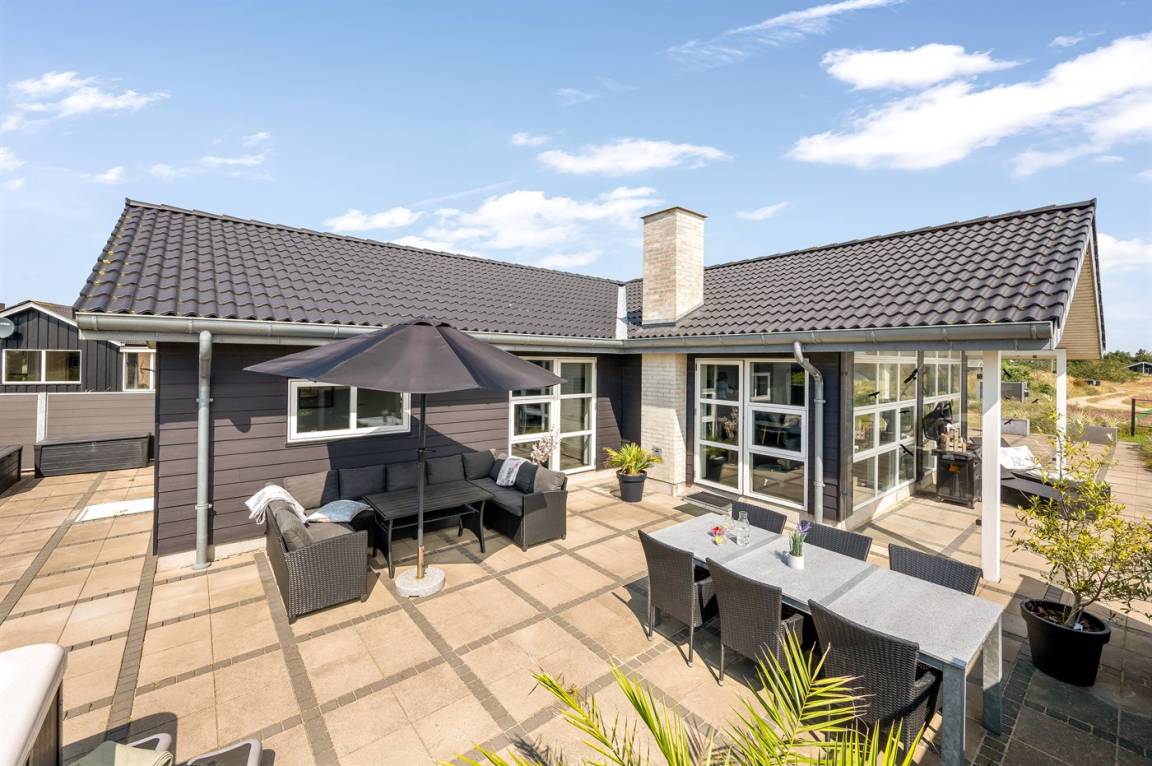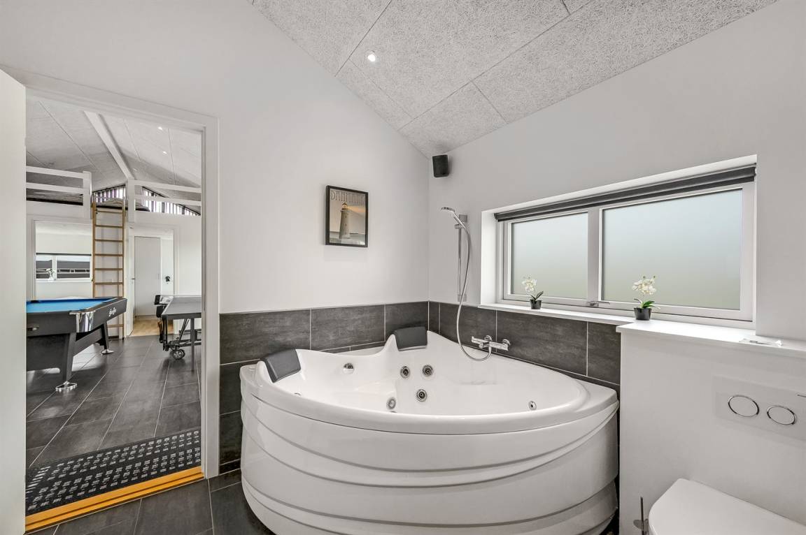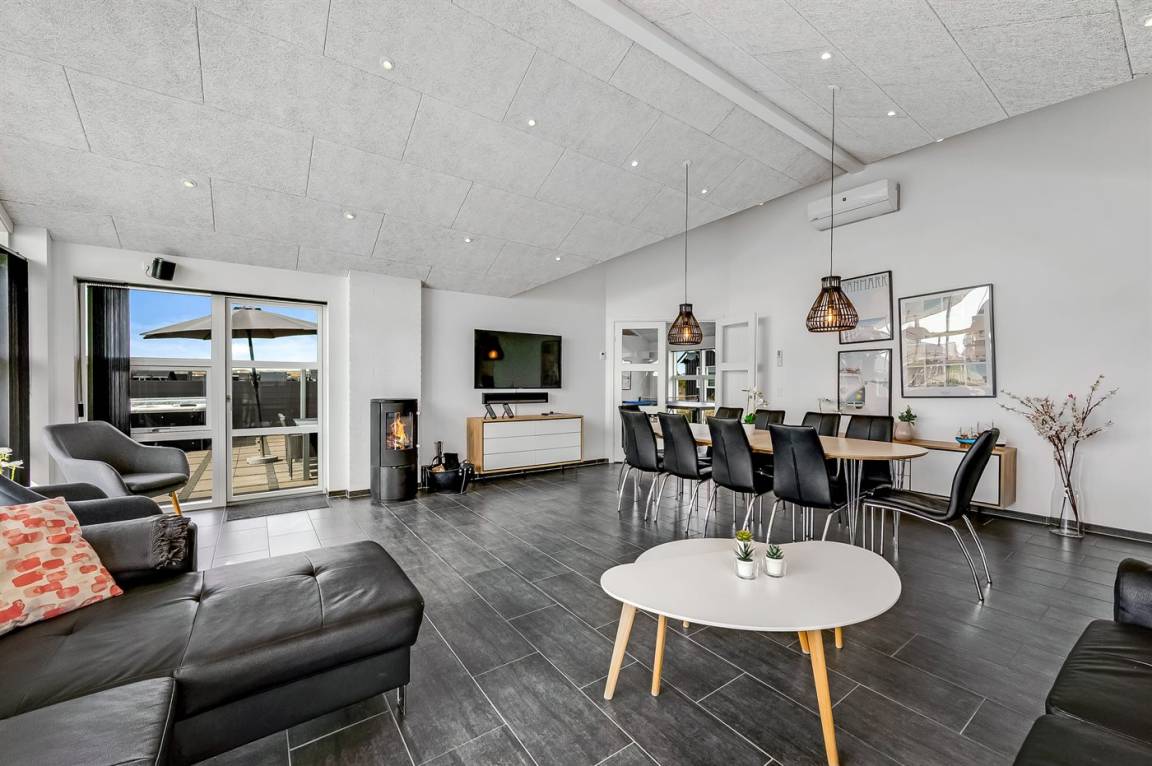 Ein herrliches, neu erbautes Ferienhaus mit einer zentralen Lage in Bjerregaard. Hier können Sie es sich gemütlich machen und gleichzeitig den Luxus genießen, den nur ein neu erbautes Ferienhaus anzubieten hat. Im Hobbyraum können sich die Kinder hinter geschlossenen Türen mit einem Spiel Tischfußball Vergnügen, während es sich die Erwachsenen im schönen Wohnzimmer mit einem Glas Wein gemütlich machen. Das Haus liegt nicht weit von der Nordsee entfernt – und hat diese ganze besondere Atmosphäre – die man nur in einem Ferienhaus, das dicht an der Küste liegt spürt. Für diejenigen, die den aktiven Urlaub bevorzugen gibt es gute Rad- und Wanderwege z. B. kann man von Bjerregard aus entweder zu Fuß oder mit dem Rad entlang der Landzunge Holmsland Klit, auf sich durch Dünen und Ferienhausgebiete schlängelnde Wege, bis nach Söndervig gelangen.