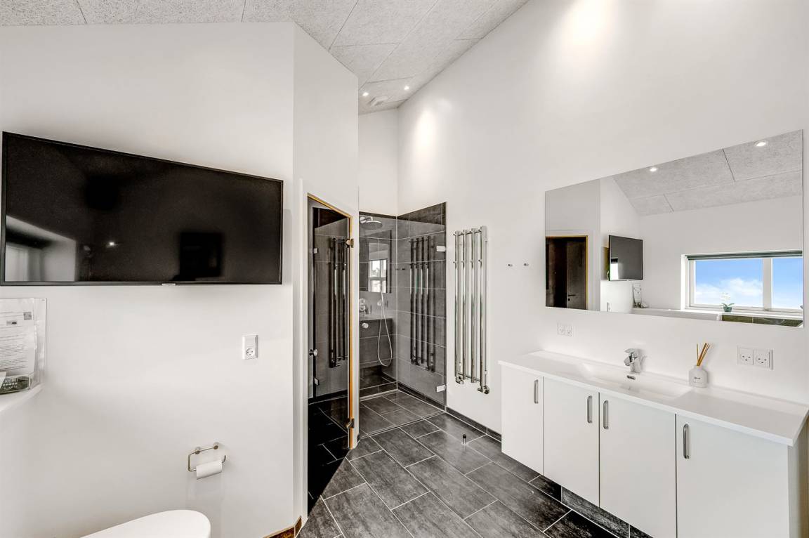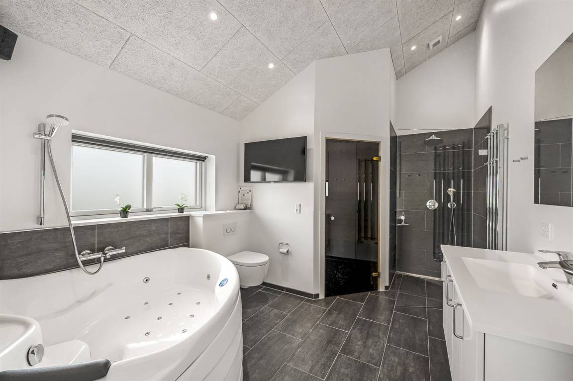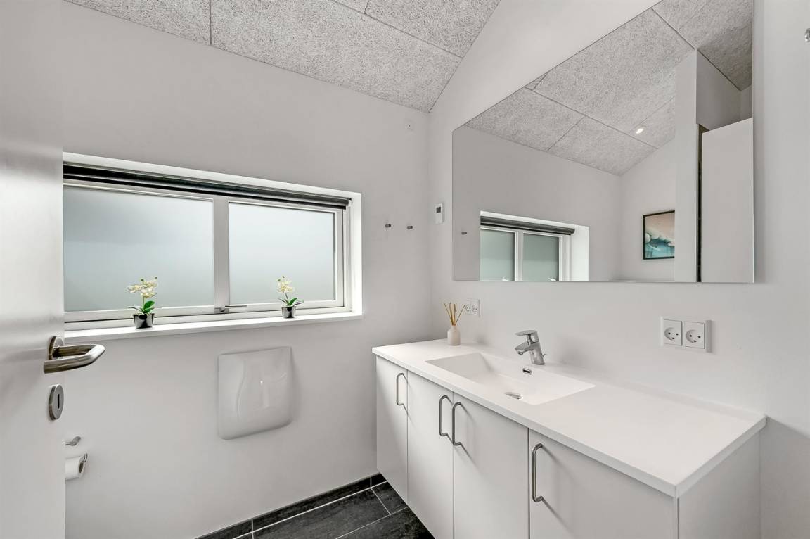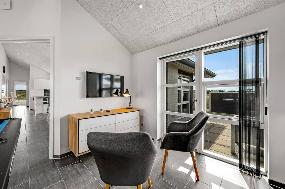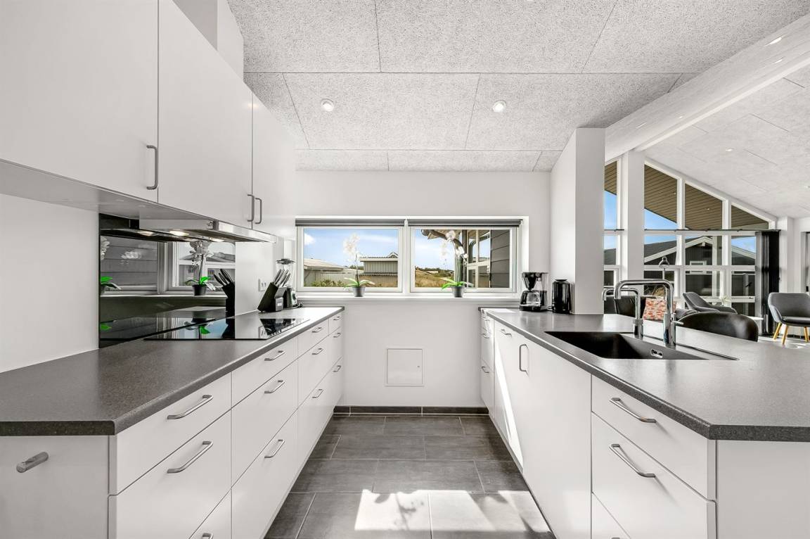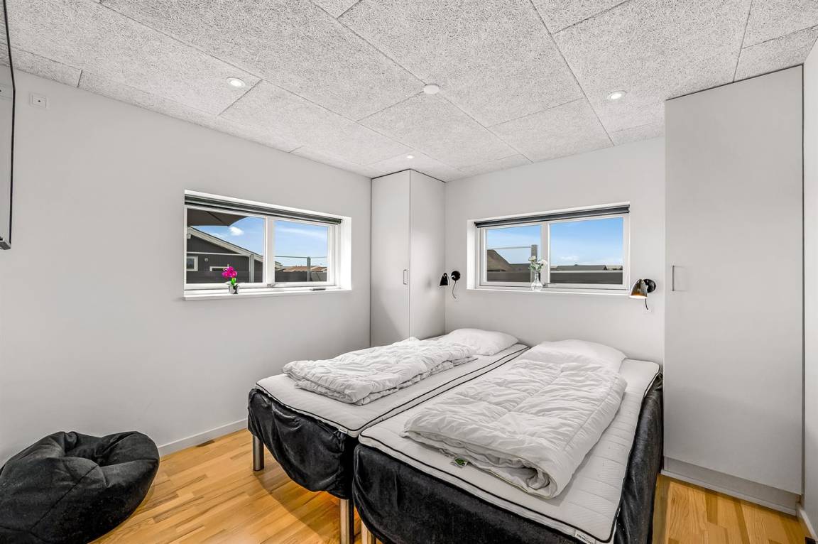 Ein herrliches, neu erbautes Ferienhaus mit einer zentralen Lage in Bjerregaard. Hier können Sie es sich gemütlich machen und gleichzeitig den Luxus genießen, den nur ein neu erbautes Ferienhaus anzubieten hat. Im Hobbyraum können sich die Kinder hinter geschlossenen Türen mit einem Spiel Tischfußball Vergnügen, während es sich die Erwachsenen im schönen Wohnzimmer mit einem Glas Wein gemütlich machen. Das Haus liegt nicht weit von der Nordsee entfernt – und hat diese ganze besondere Atmosphäre – die man nur in einem Ferienhaus, das dicht an der Küste liegt spürt. Für diejenigen, die den aktiven Urlaub bevorzugen gibt es gute Rad- und Wanderwege z. B. kann man von Bjerregard aus entweder zu Fuß oder mit dem Rad entlang der Landzunge Holmsland Klit, auf sich durch Dünen und Ferienhausgebiete schlängelnde Wege, bis nach Söndervig gelangen.